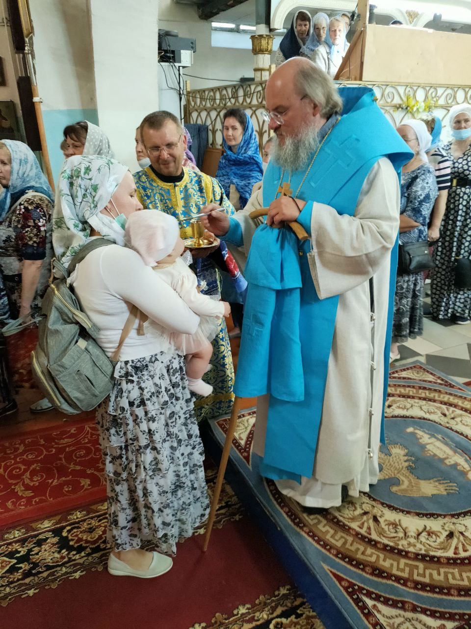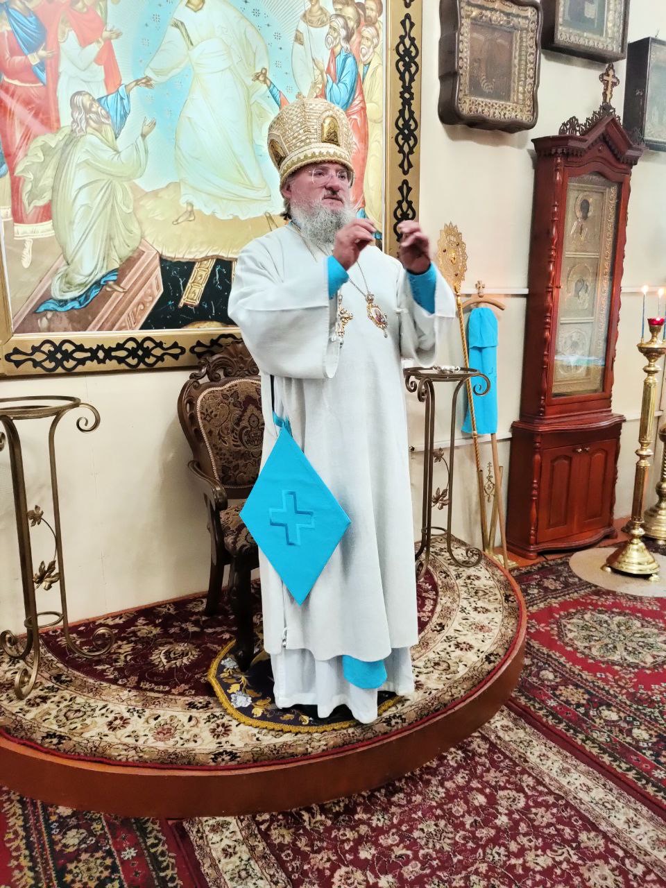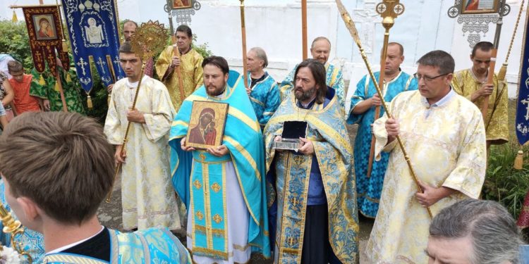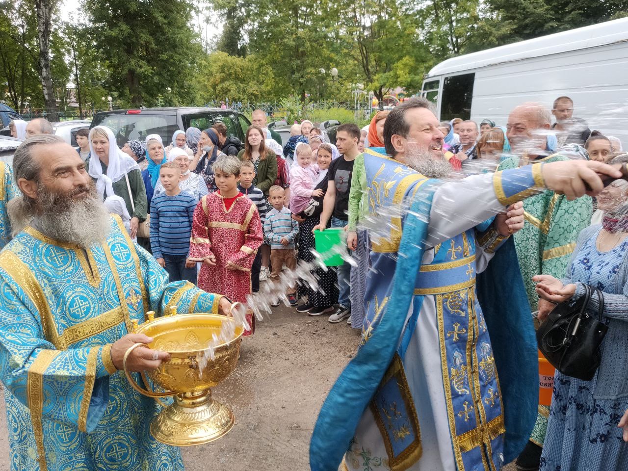 По окончании литургии состоялся праздничный крестный ход, в завершении которого, вознеся молитву Пресвятой Богородице, владыка обратился к богомольцам с проповедью.