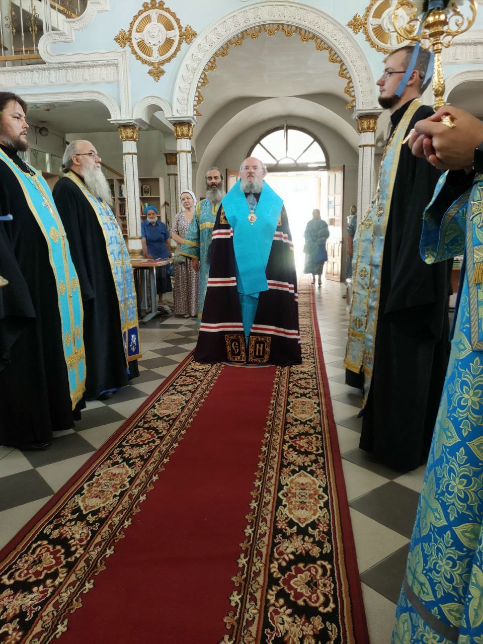 Преосвященному владыке сослужили: настоятель собора, духовник епархии митрофорный протоиерей Алексий Жиганов, протоиерей Василий Биляк – благочинный округа, протоиерей Дмитрий Губаль, протоиерей Михаил Карпенко, протоиерей Антоний Хатунцев, иерей Иоанн Майоров, иерей Алексий Сначев, диакон Евгений Васильев, диакон Андрей Соколов и иеродиакон Лука (Старостин).