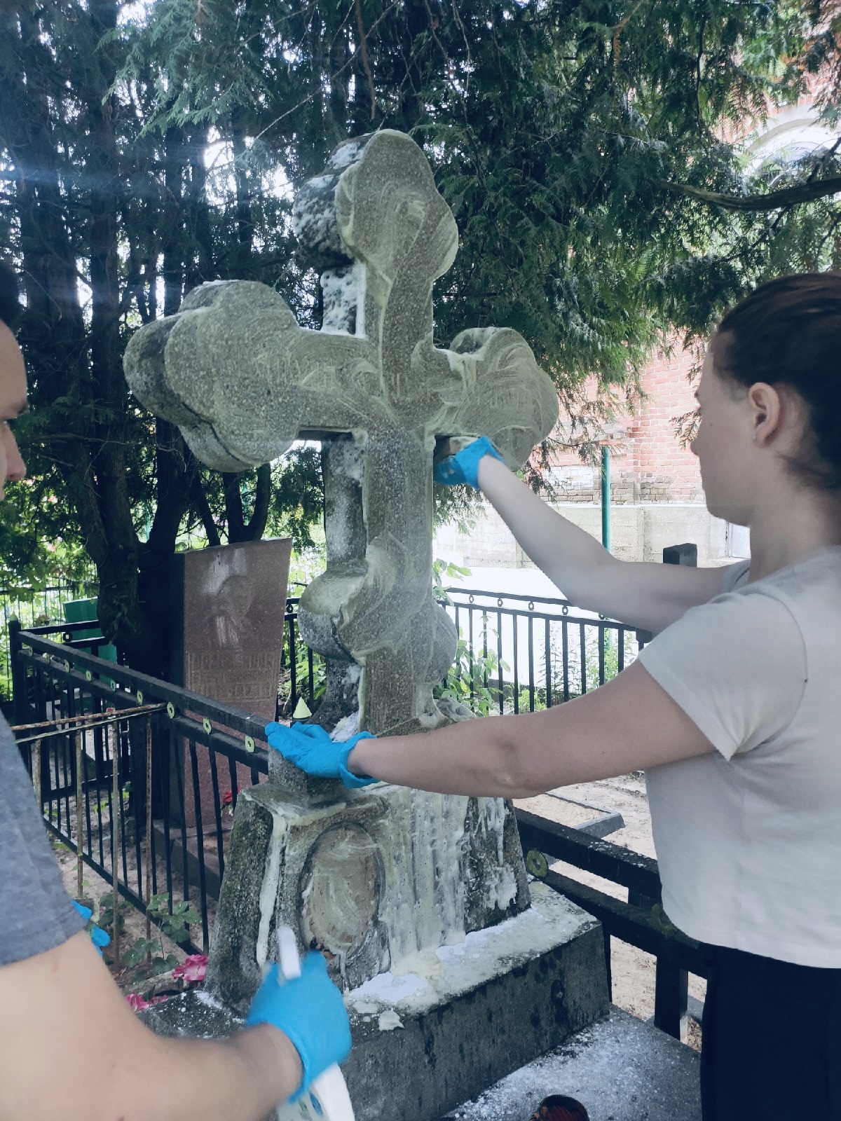 Волонтеры убрали и вымыли памятник, почистили от наростов мха, собрали мусор, убрали старые цветы, выполнили и другие посильные работы.