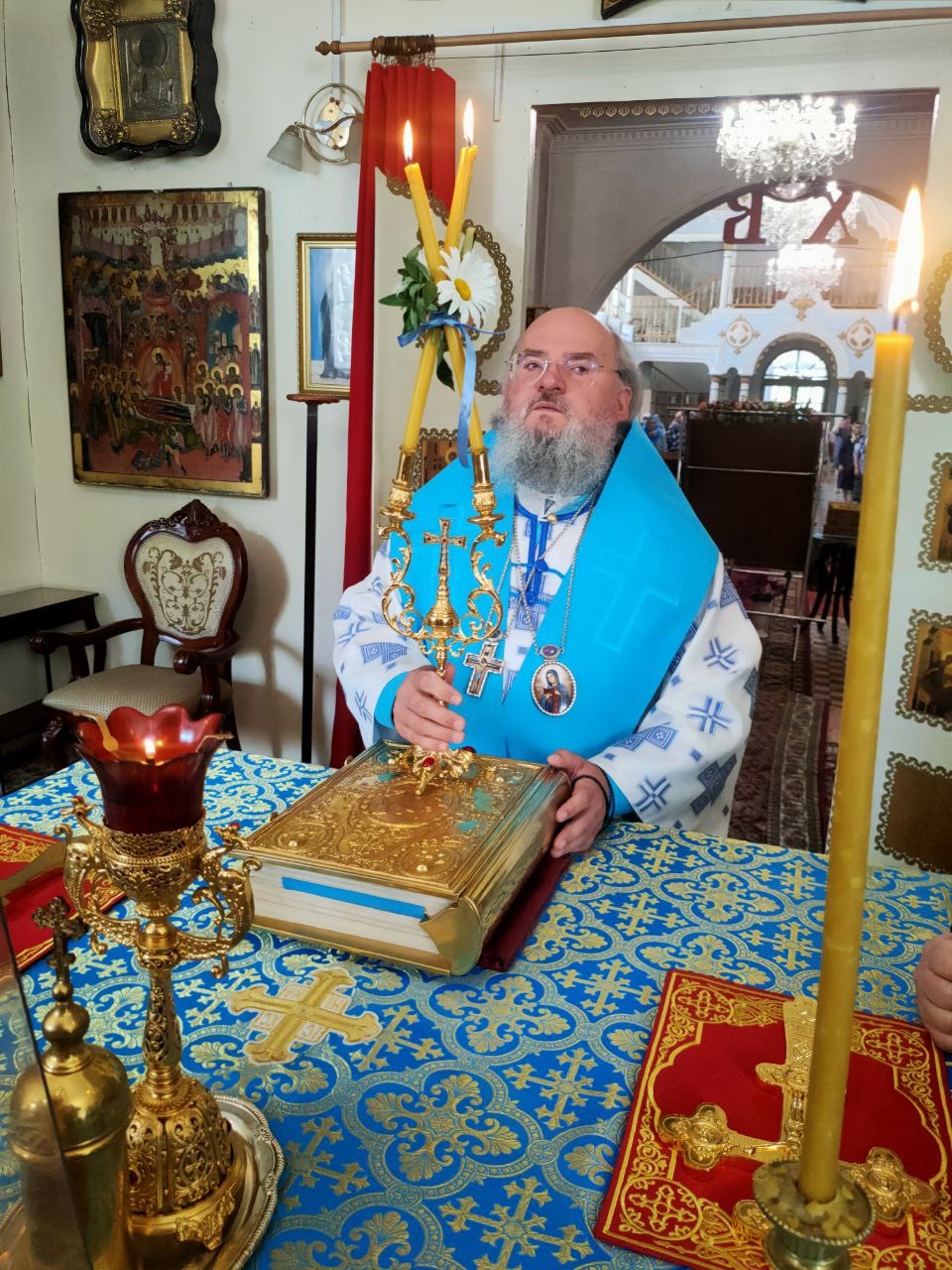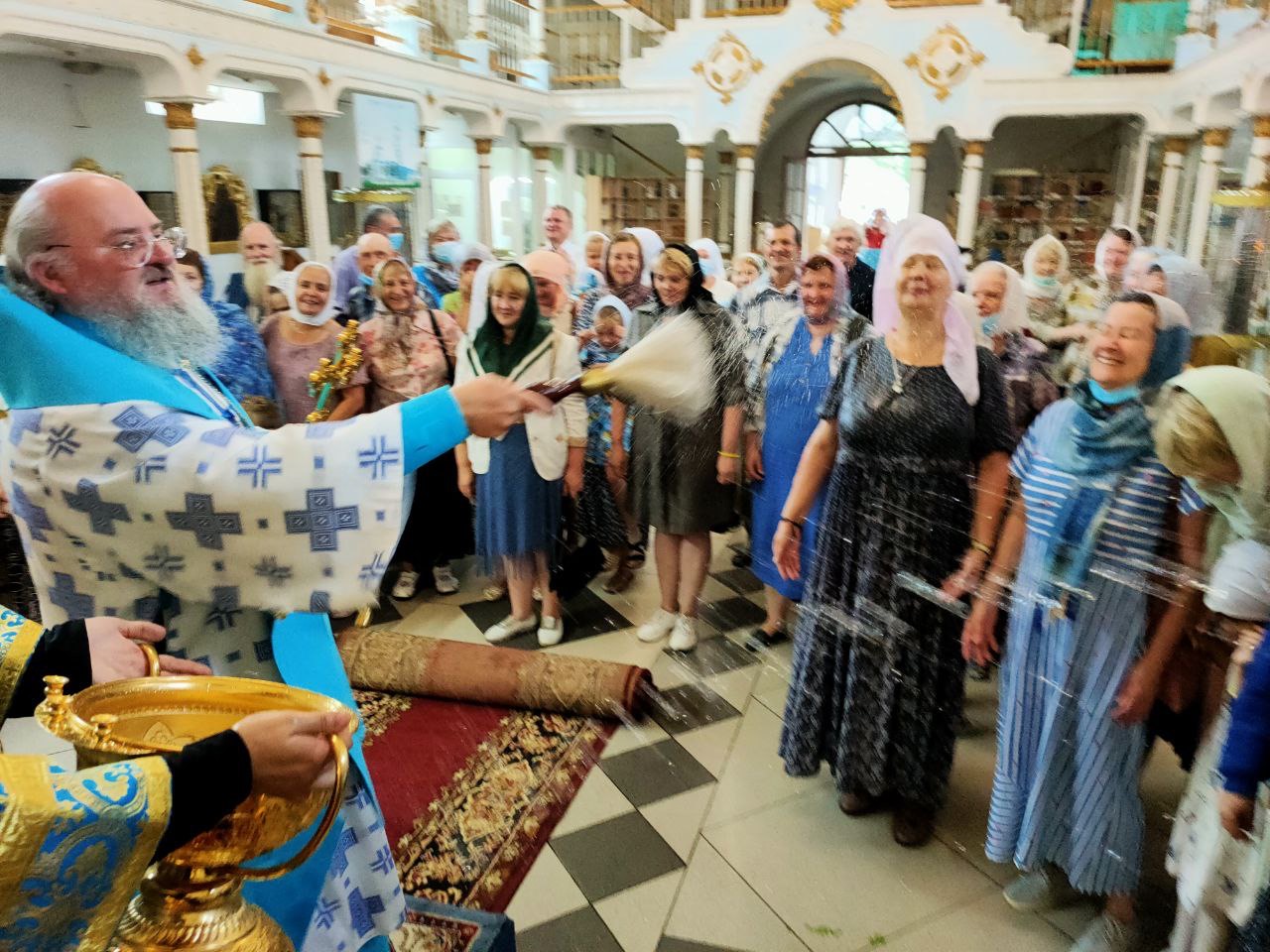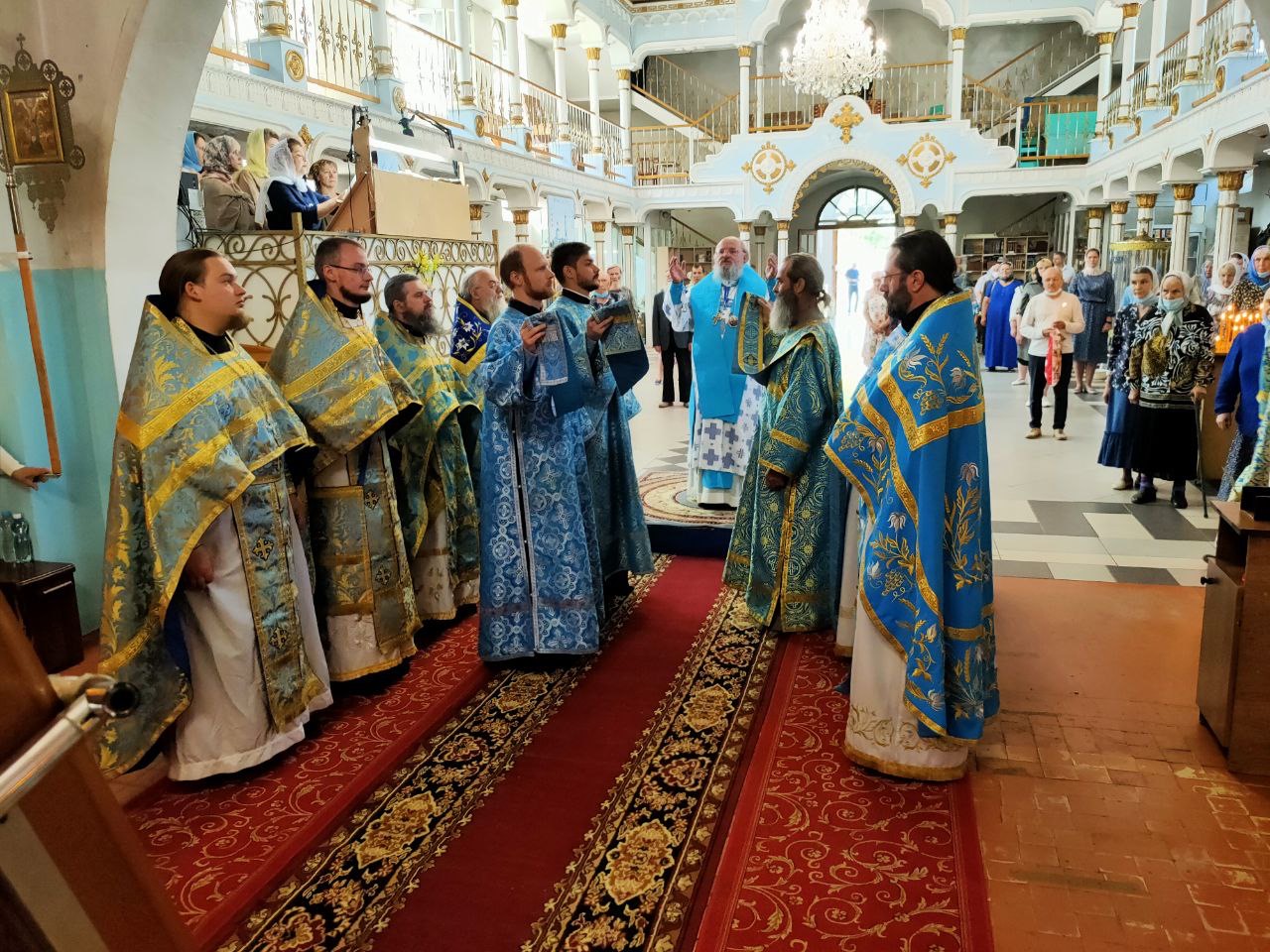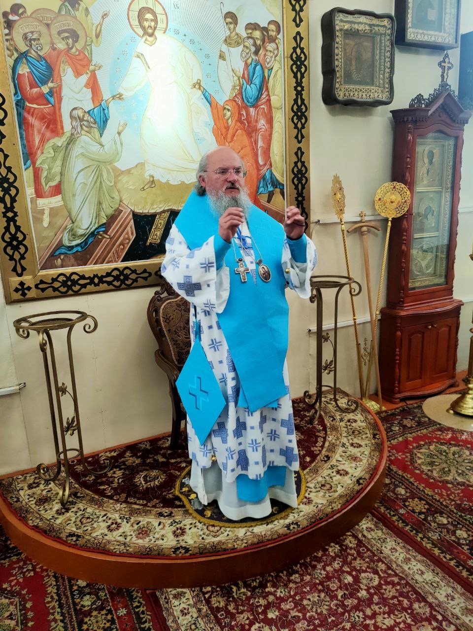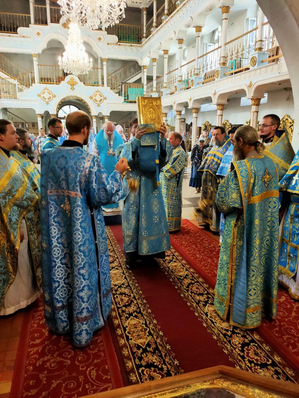 По отпусте литургии священнослужители совершили праздничный молебен пред чудотворным образом, в завершении которого, вознеся молитву Пресвятой Богородице и святому благоверному князю Александру Невскому и окропив богомольцев святой водой, владыка обратился к присутствующим с архипастырским словом.