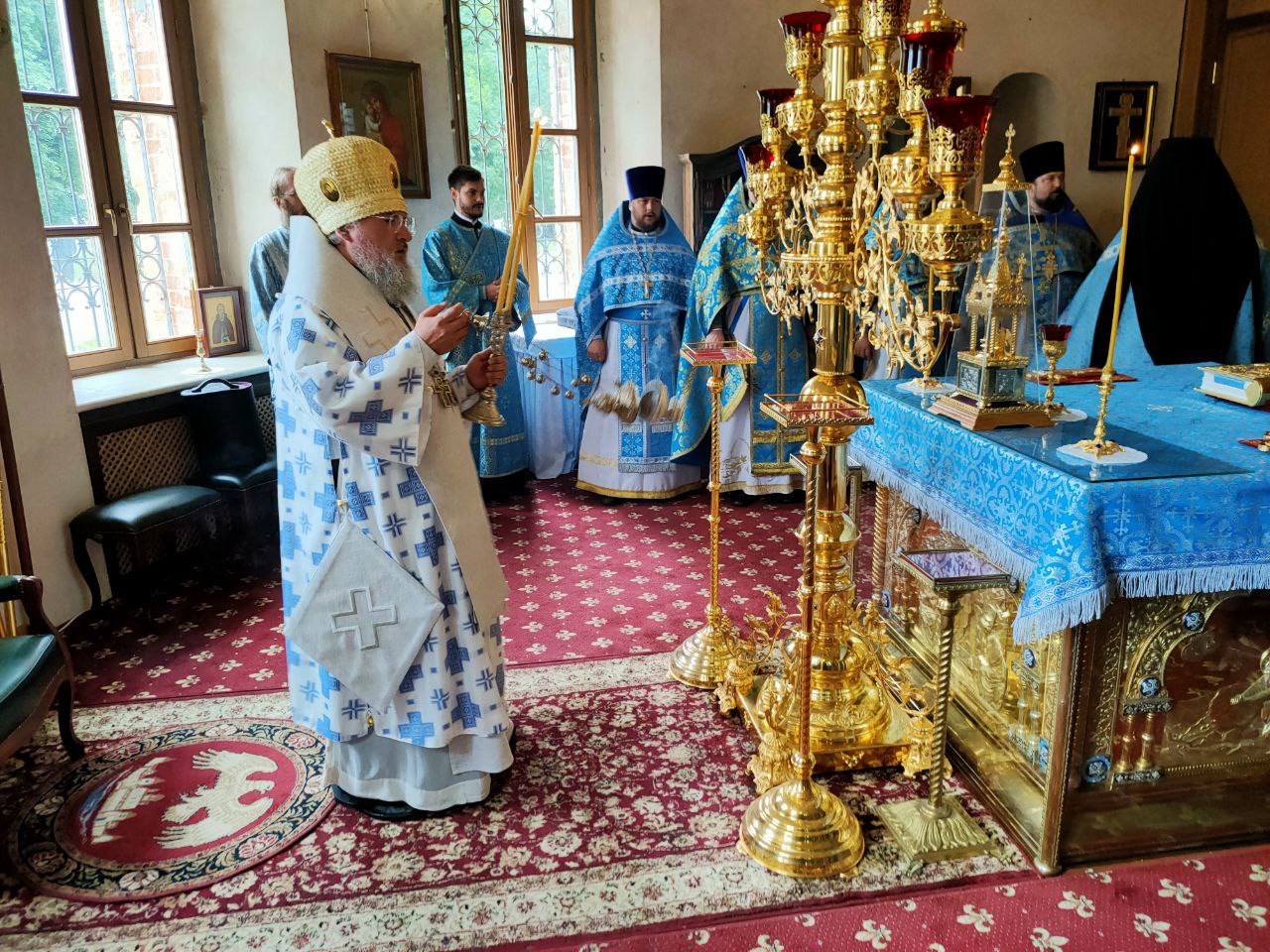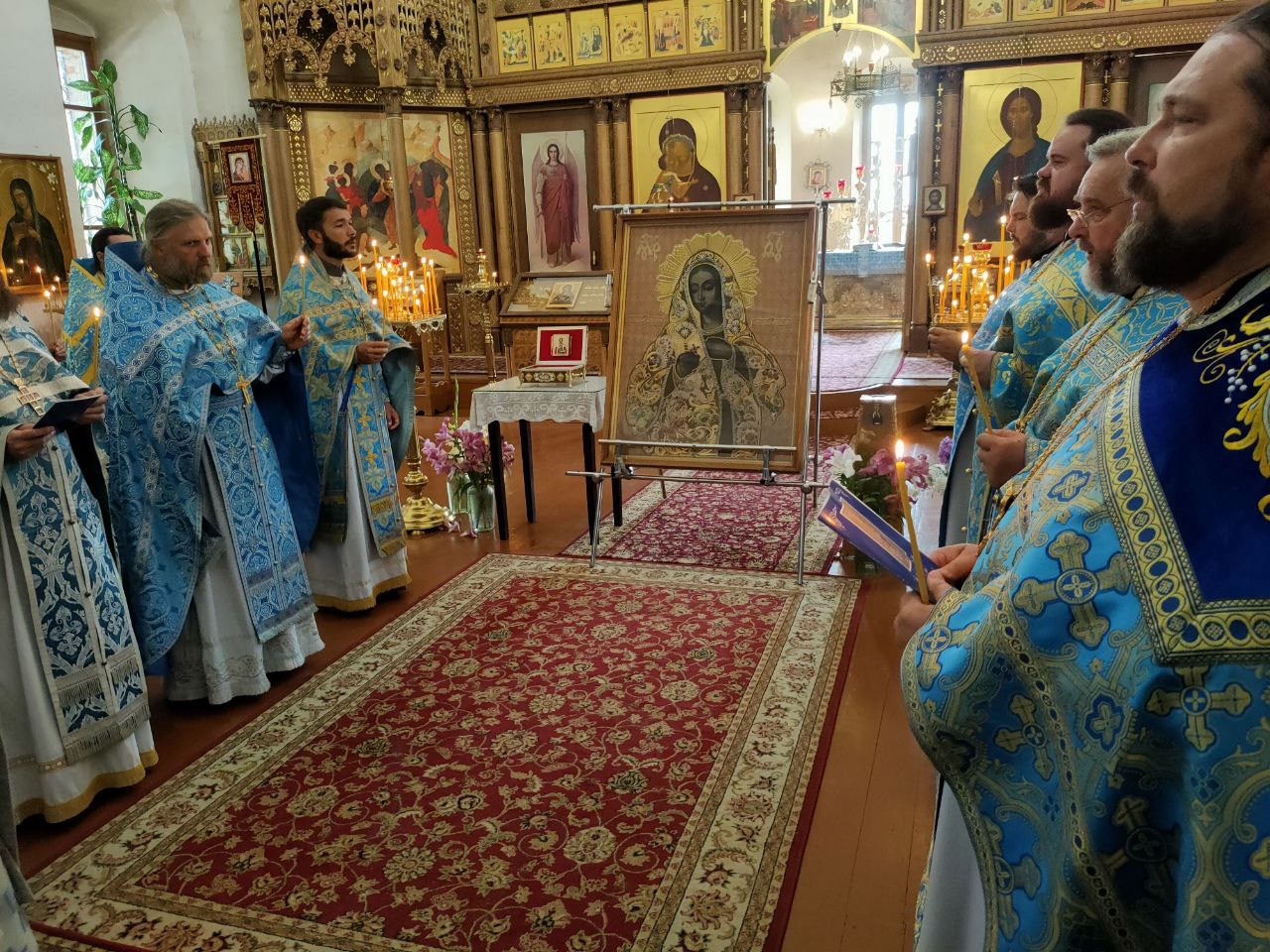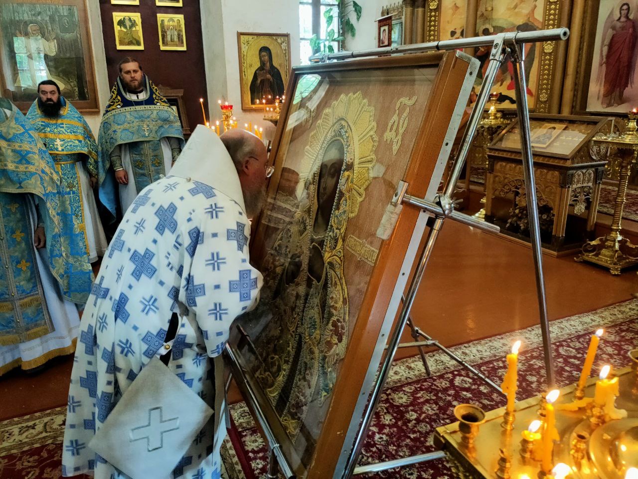По отпусте литургии священнослужители совершили молебное пение с акафистом Пресвятой Богородице, а затем чудотворный образ отбыл в Калугу.
