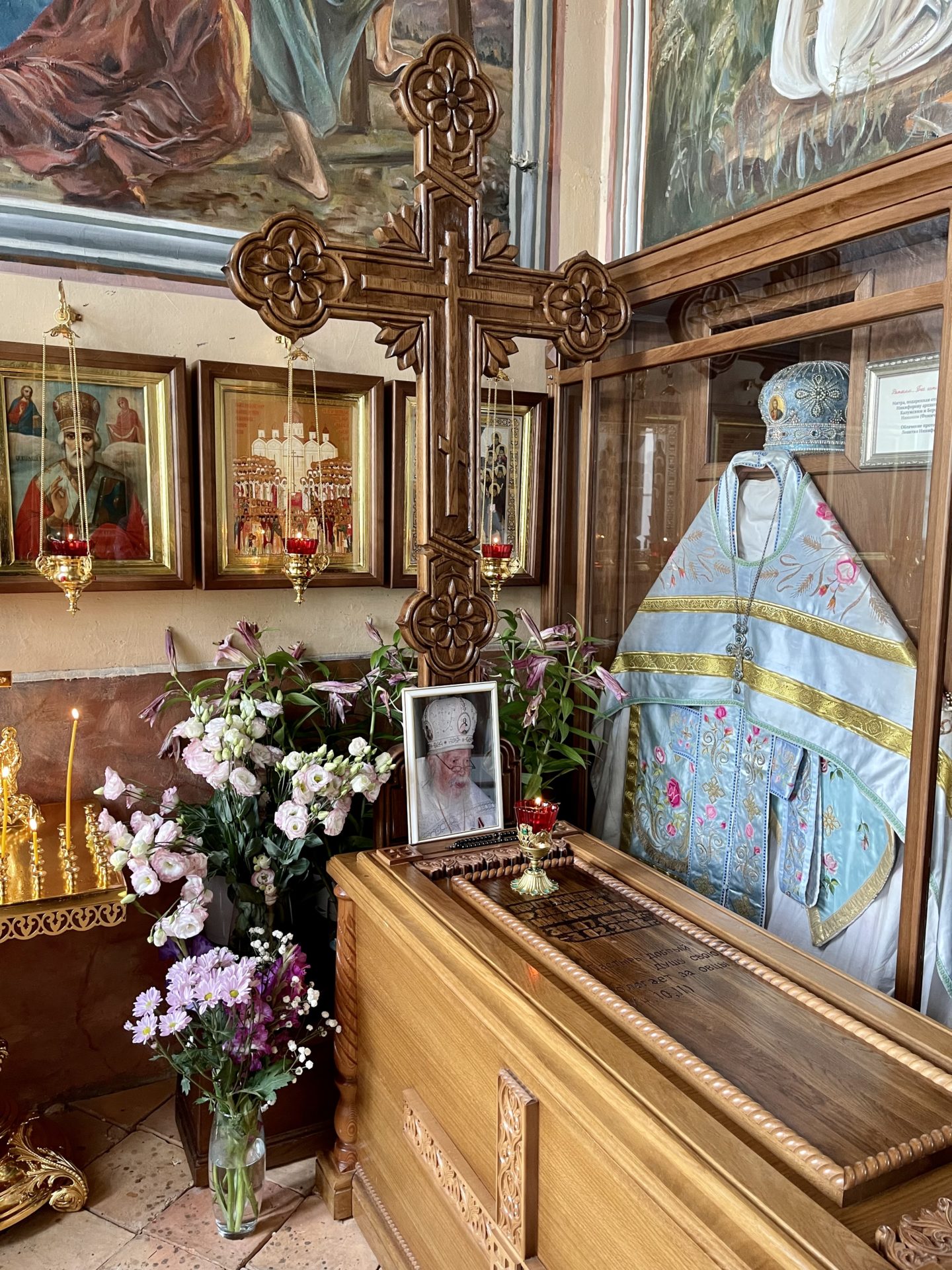 В храме Преображения Господня архипастырь совершил панихиду у могилы бывшего настоятеля протоиерея Леонтия Никифорова в день его рождения и накануне дня его тезоименитства.