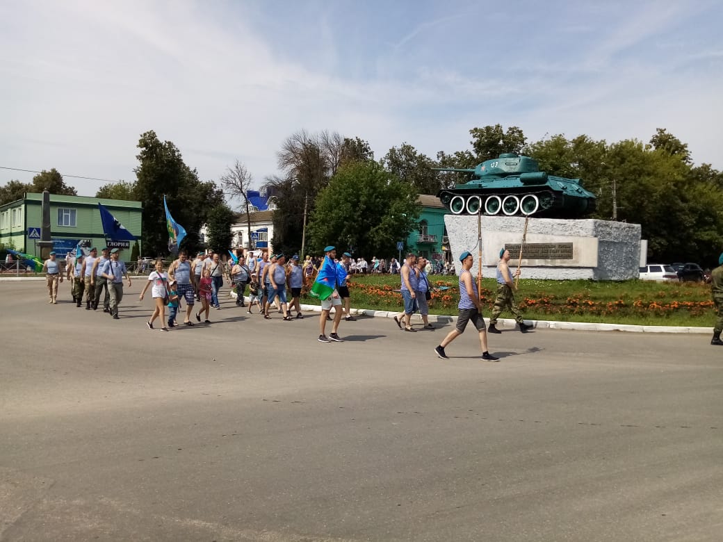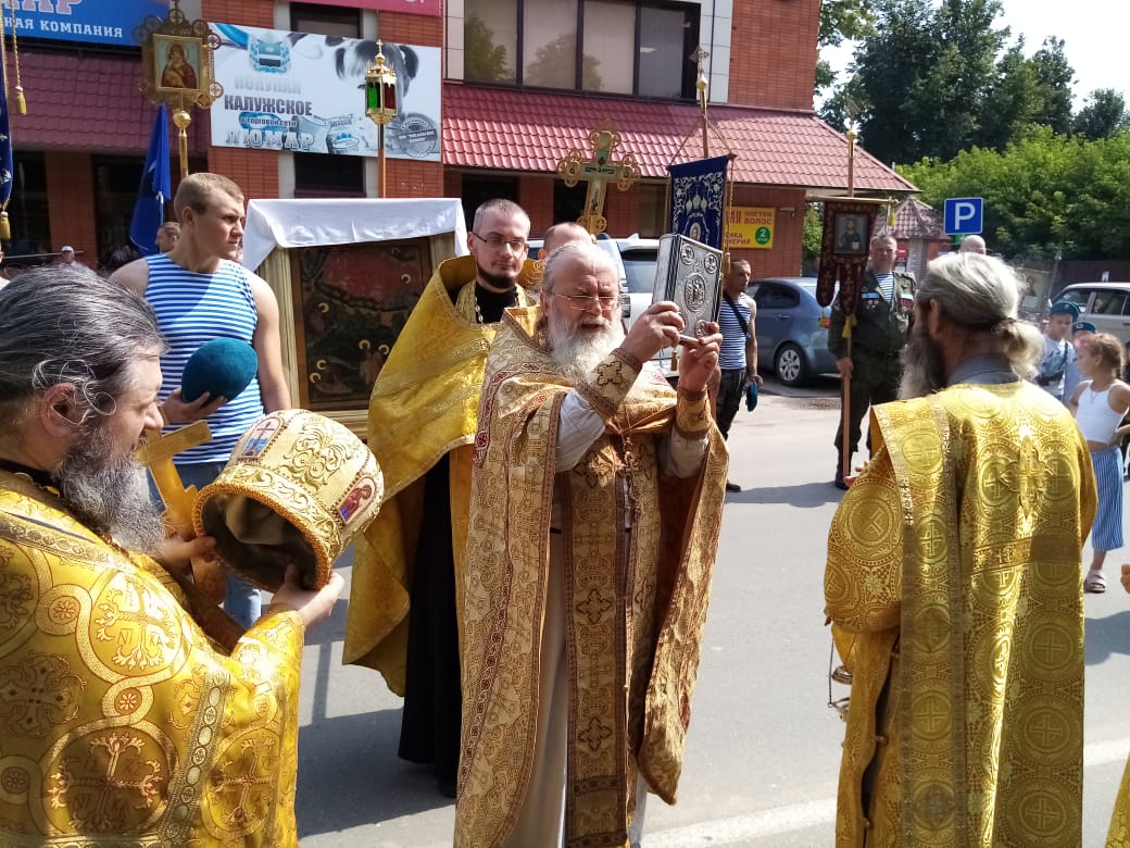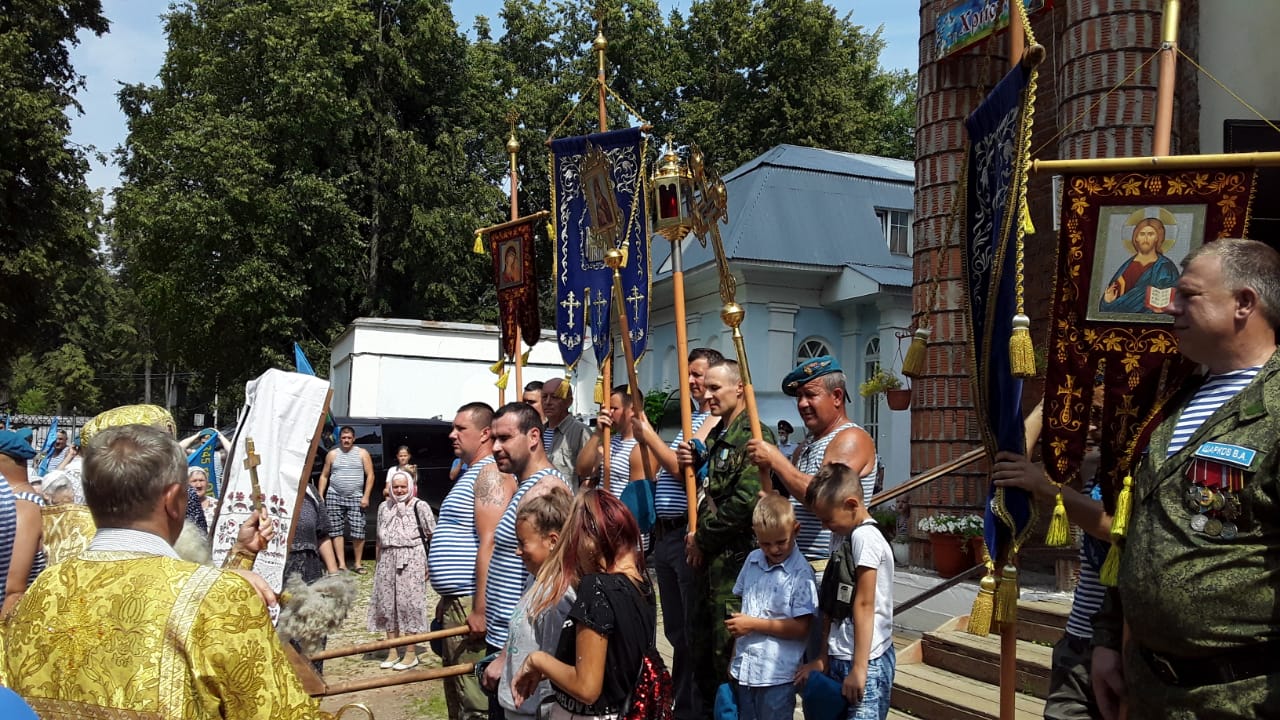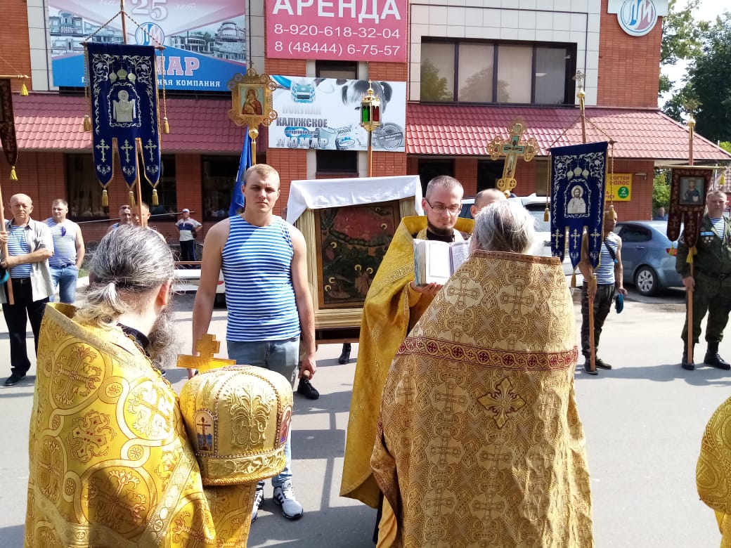 По установившейся доброй традиции, от Казанского собора был совершен Крестный ход и молебное пение по улицам города Людиново с участием десантников, в завершении которого настоятелем Казанского собора отцом Алексием была прочитана коленопреклоненная молитва о Российском воинстве.