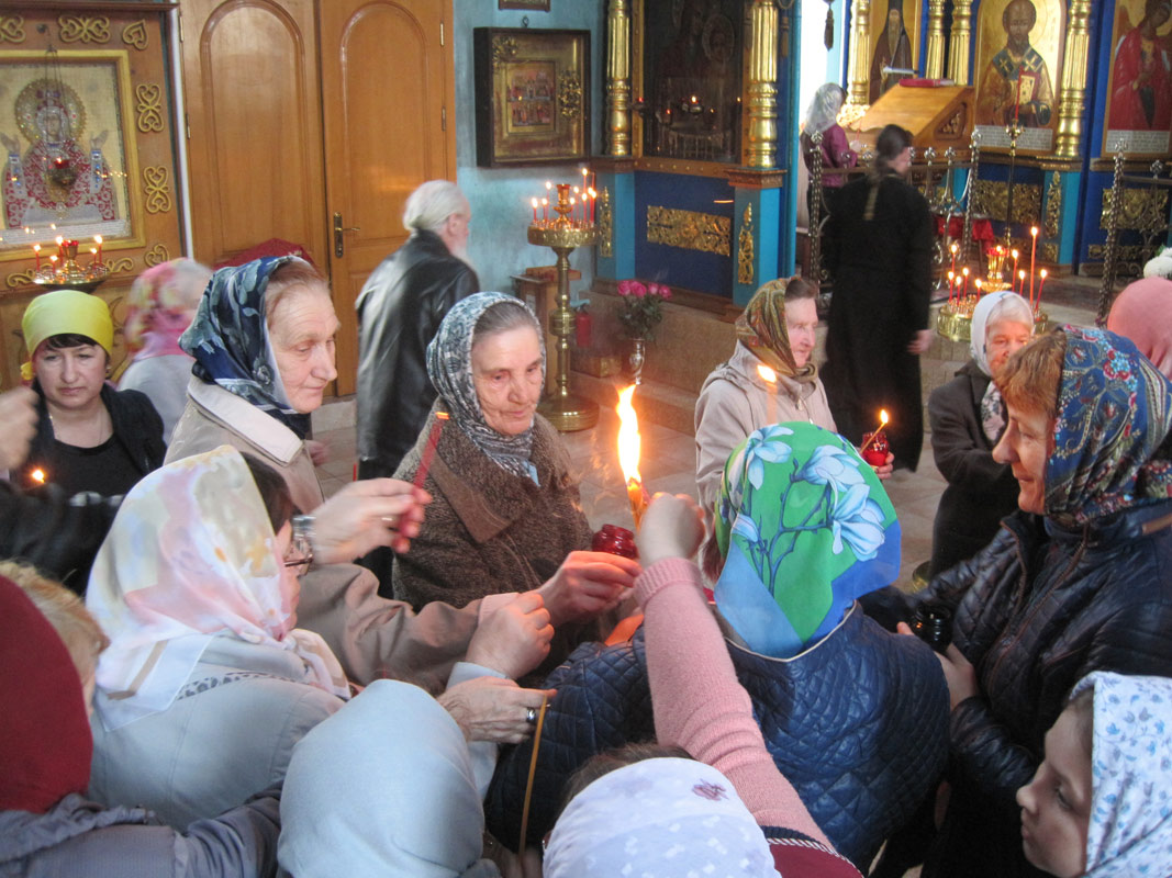 Освящение куличей, Крестный ход в полночь, первое «Христос Воскресе!» и «Воистину Воскресе!», ночное Пасхальное богослужение, Пасхальные поздравления иерархов, христосование прихожан — все это Пасхальное ликование можно было видеть и слышать и храме в честь Смоленской иконы Божией Матери г. Сухиничи.