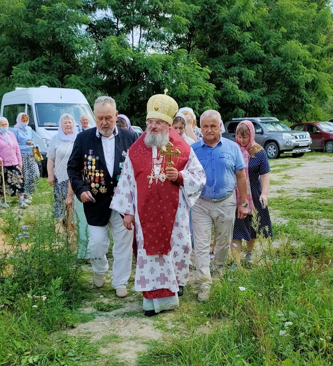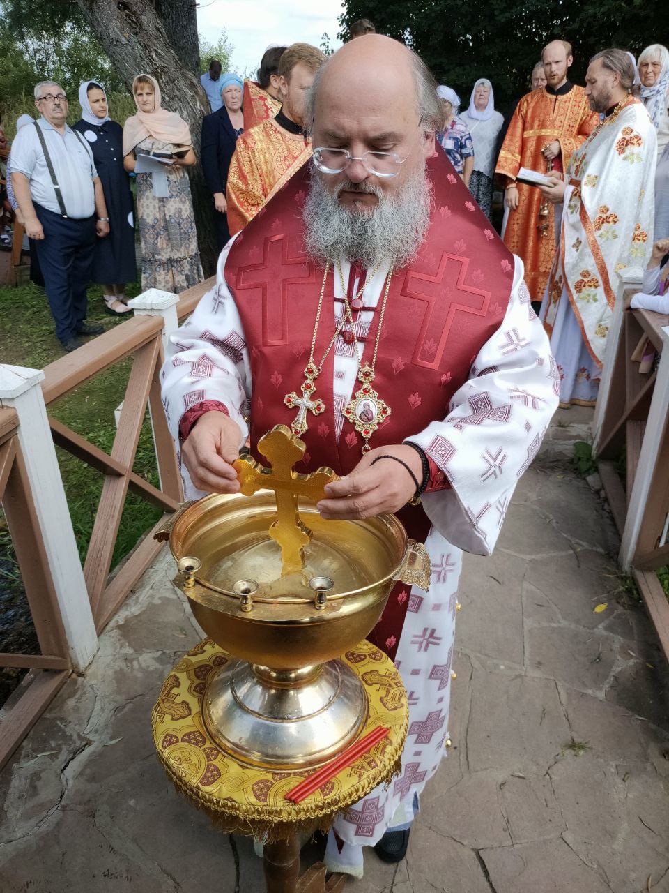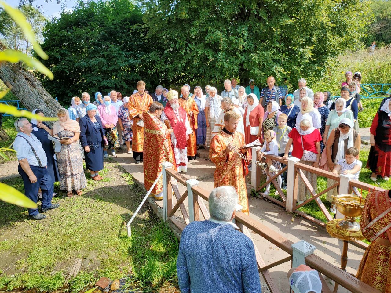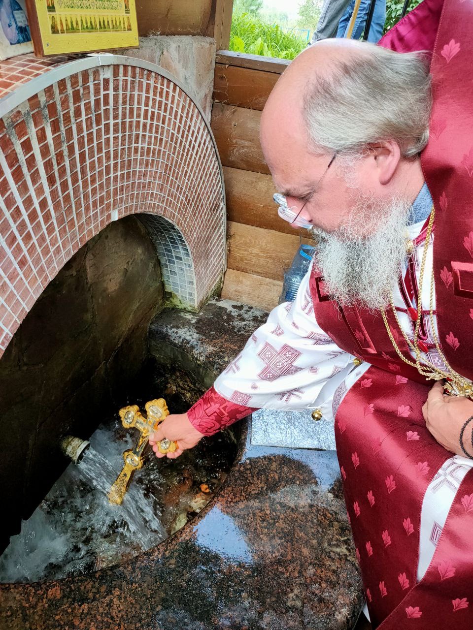 По отпусте литургии состоялся крестный ход на источник святого великомученика Пантелеимона, где владыка совершил чин малого освящения воды и вознес молитву святому целителю.