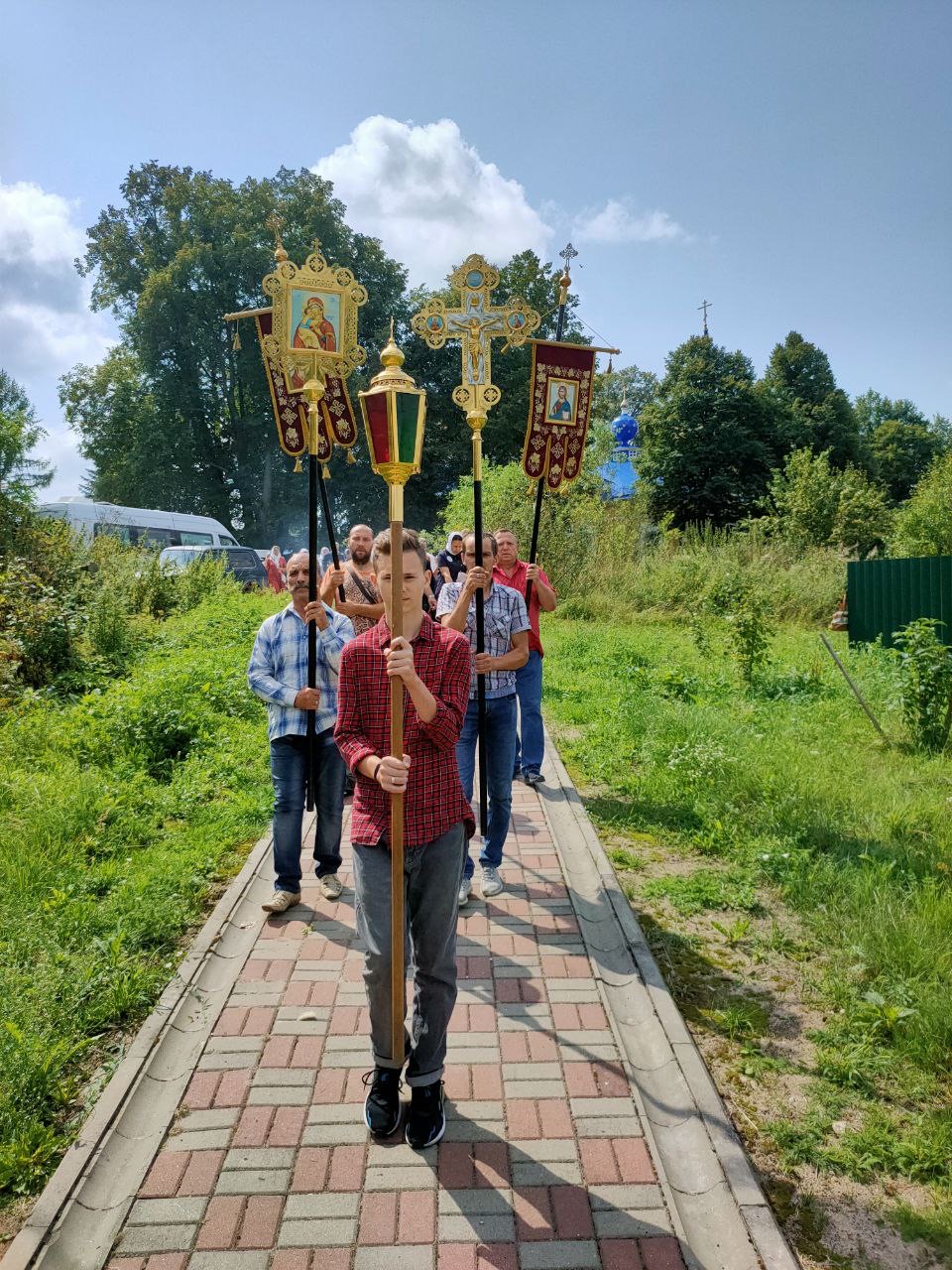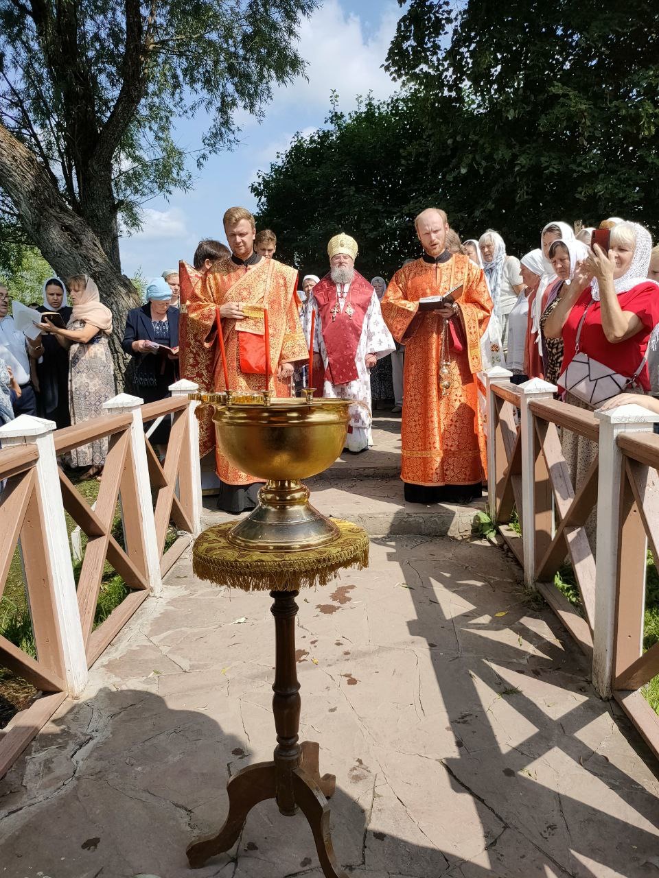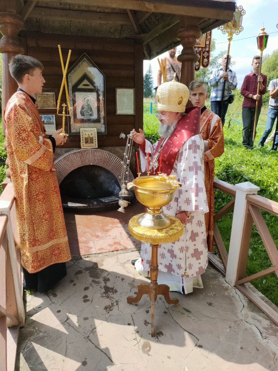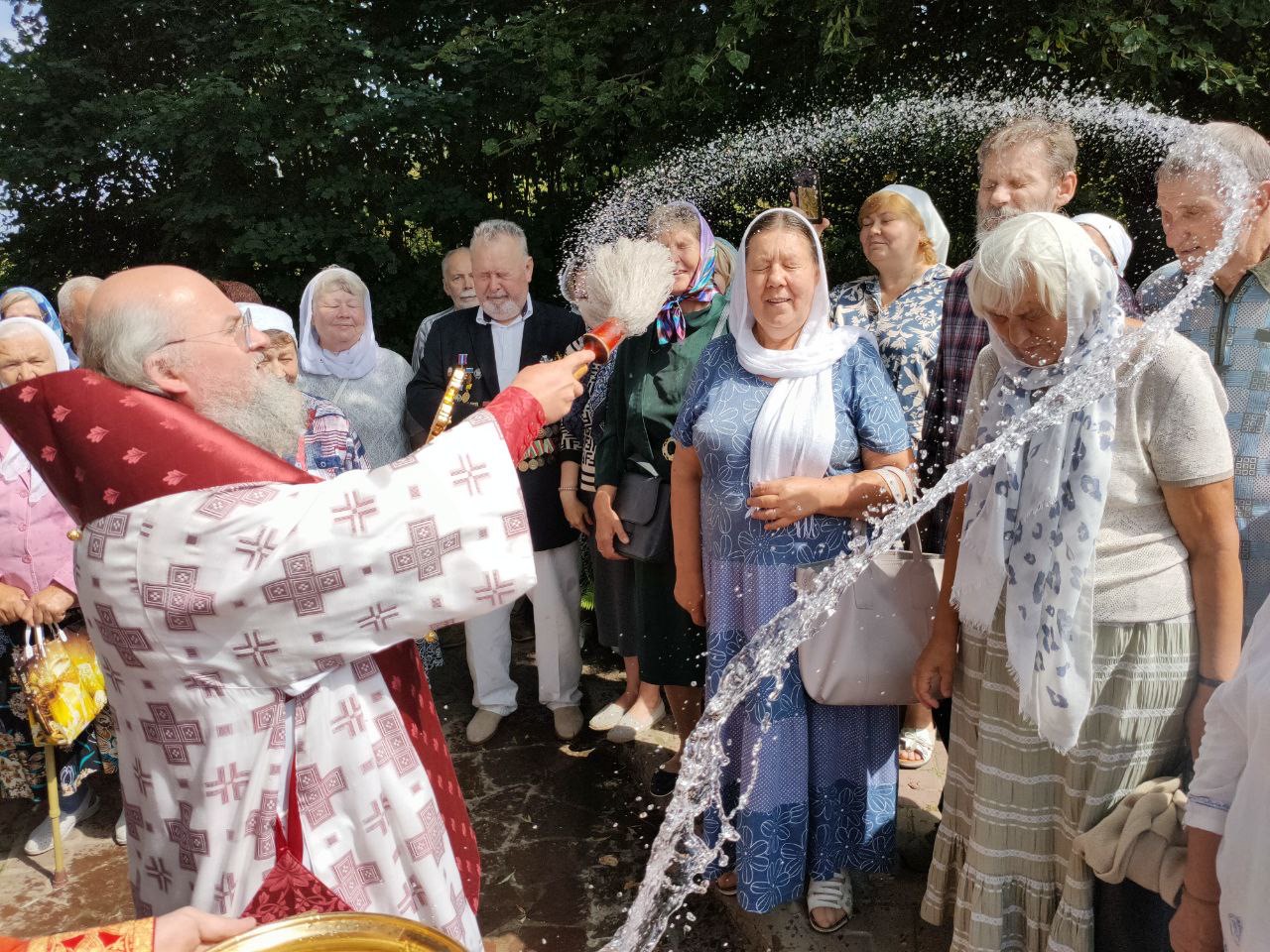 По отпусте литургии состоялся крестный ход на источник святого великомученика Пантелеимона, где владыка совершил чин малого освящения воды и вознес молитву святому целителю.