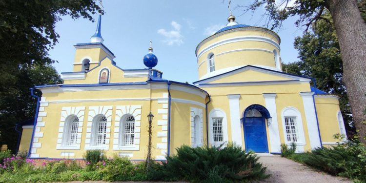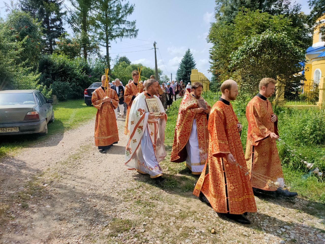 Епископ Козельский и Людиновский Никита совершил Божественную литургию в храме Воскресения Христова в селе Усты Думиничского района, северный придел которого освящён в честь святого страстотерпца.