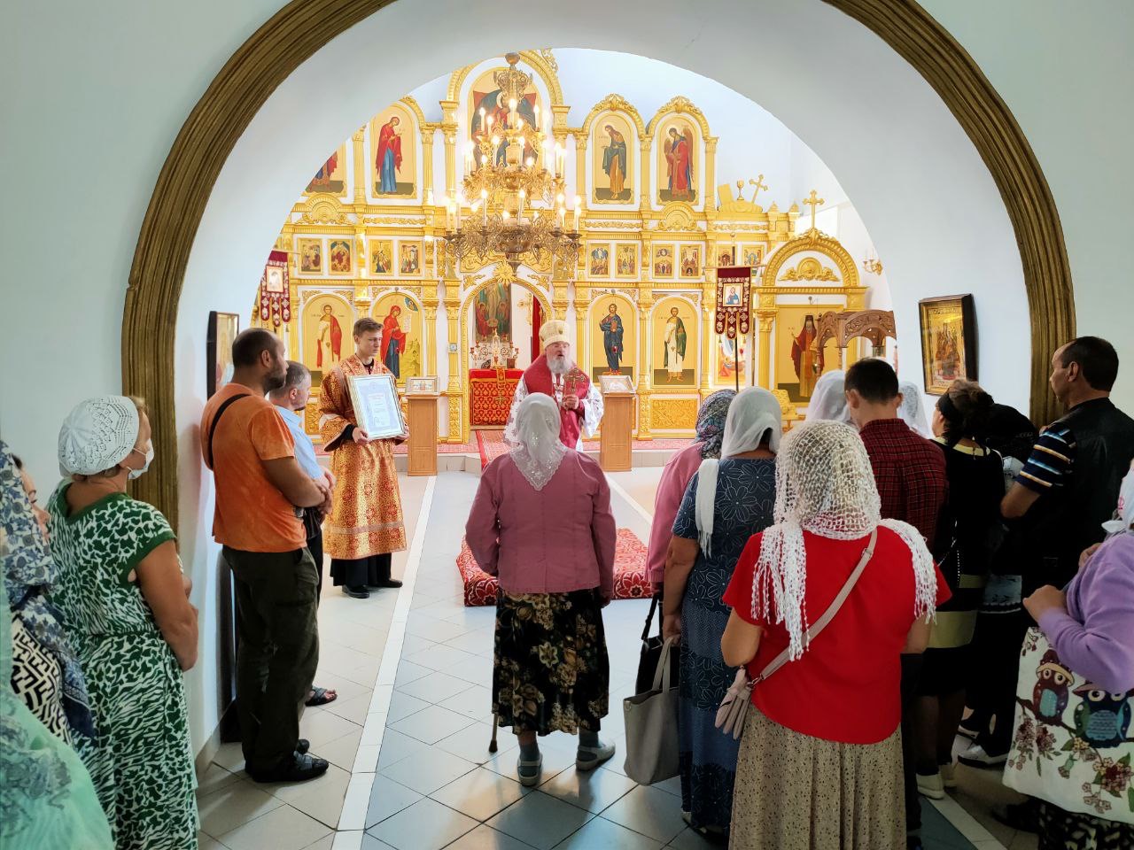 В текущем году в храме был совершен внешний ремонт: замена куполов на колокольне и на самом храме, покраска кровли и стен храма, ремонт покраска забора и церковного дома, приведена в порядок территория. Все работы проходили при финансовой поддержке ктитора храма Петракова Анатолия Ивановича. Владыка поблагодарил Анатолия Ивановича за заботу о Доме Божием и преподнес ему благодарственную Архиерейскую грамоту и икону Покрова Пресвятой Богородицы.