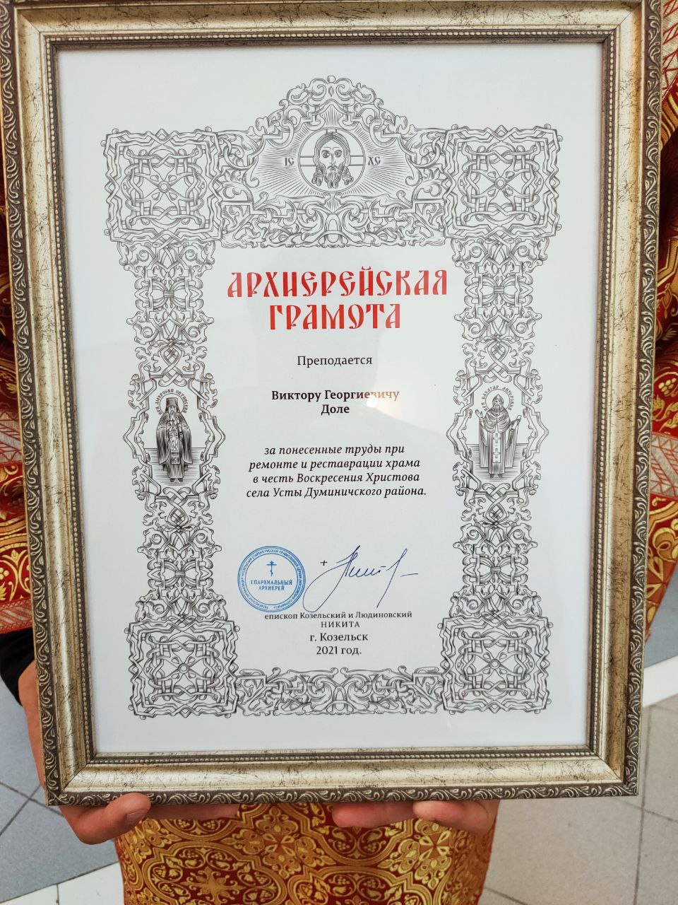 Благодарственных Архиерейских грамот также были удостоены ряд прихожан, участвующих в ремонтных работах.