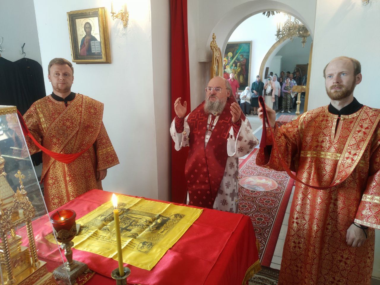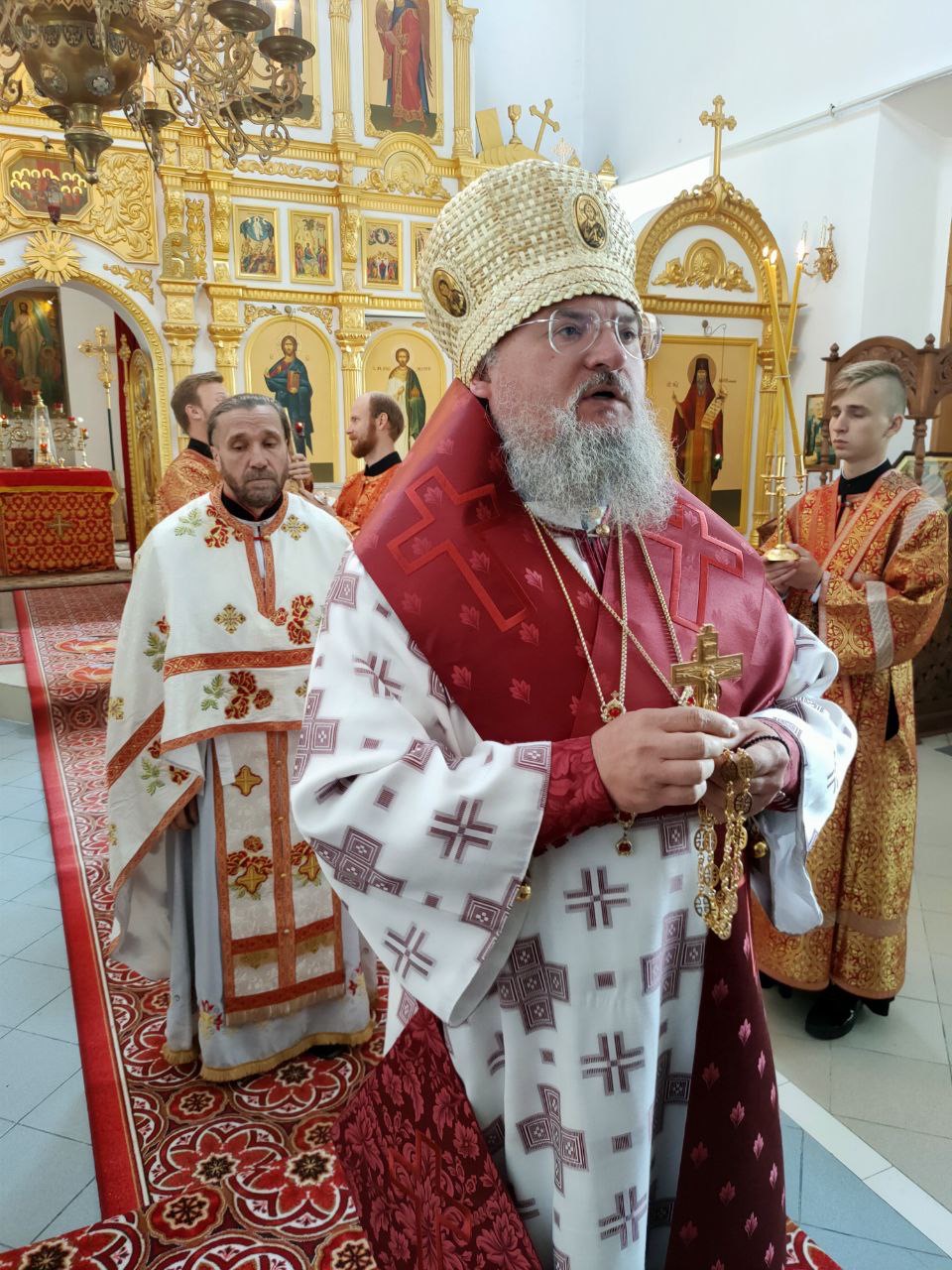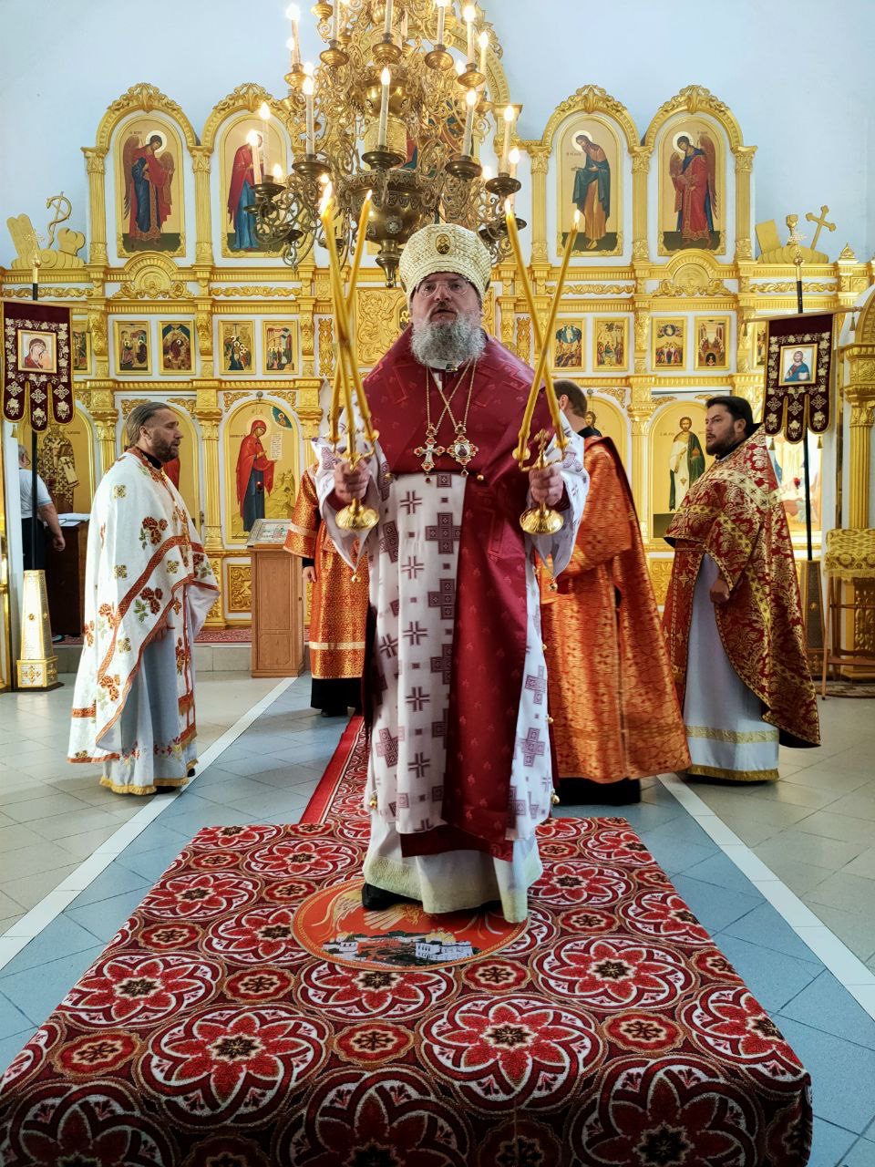 Архипастырю сослужили: протоиерей Антоний Хатунцев, иеромонах Иеремия (Ильченко) – настоятель храма, диакон Евгений Ковригин и иеродиакон Лука (Старостин).