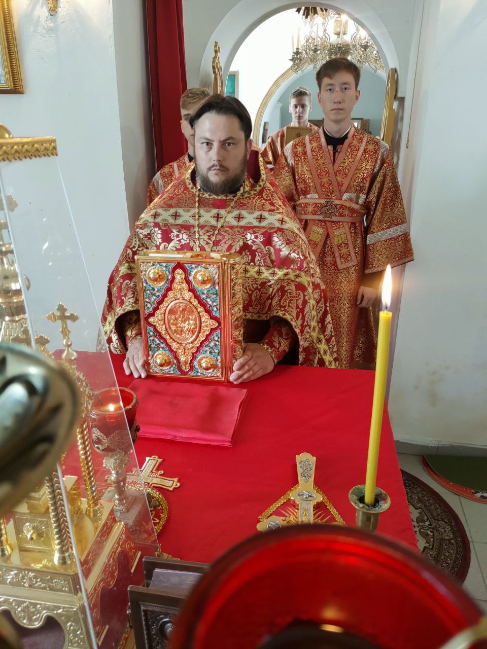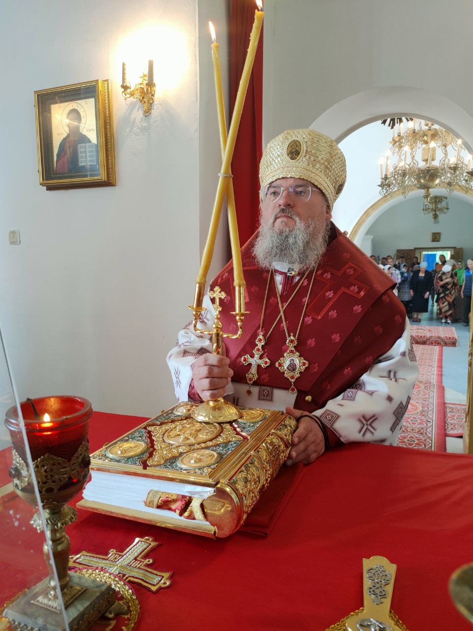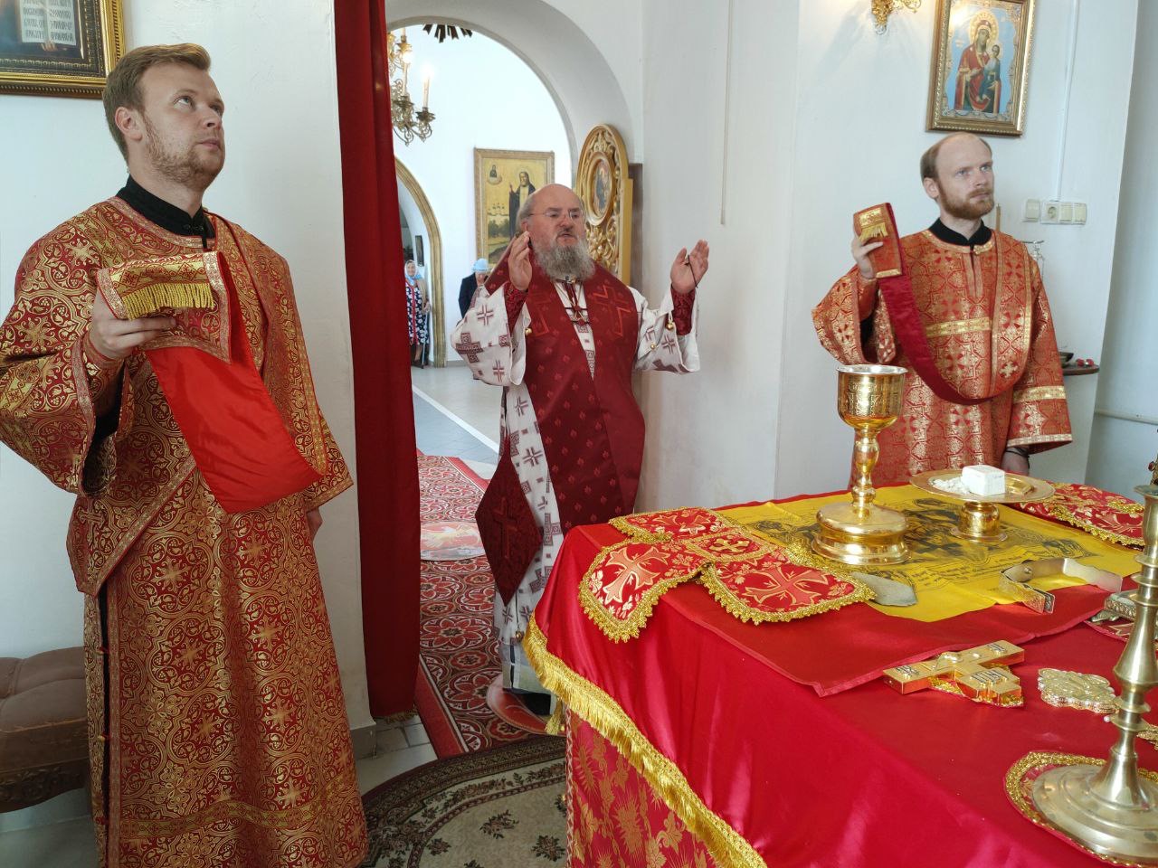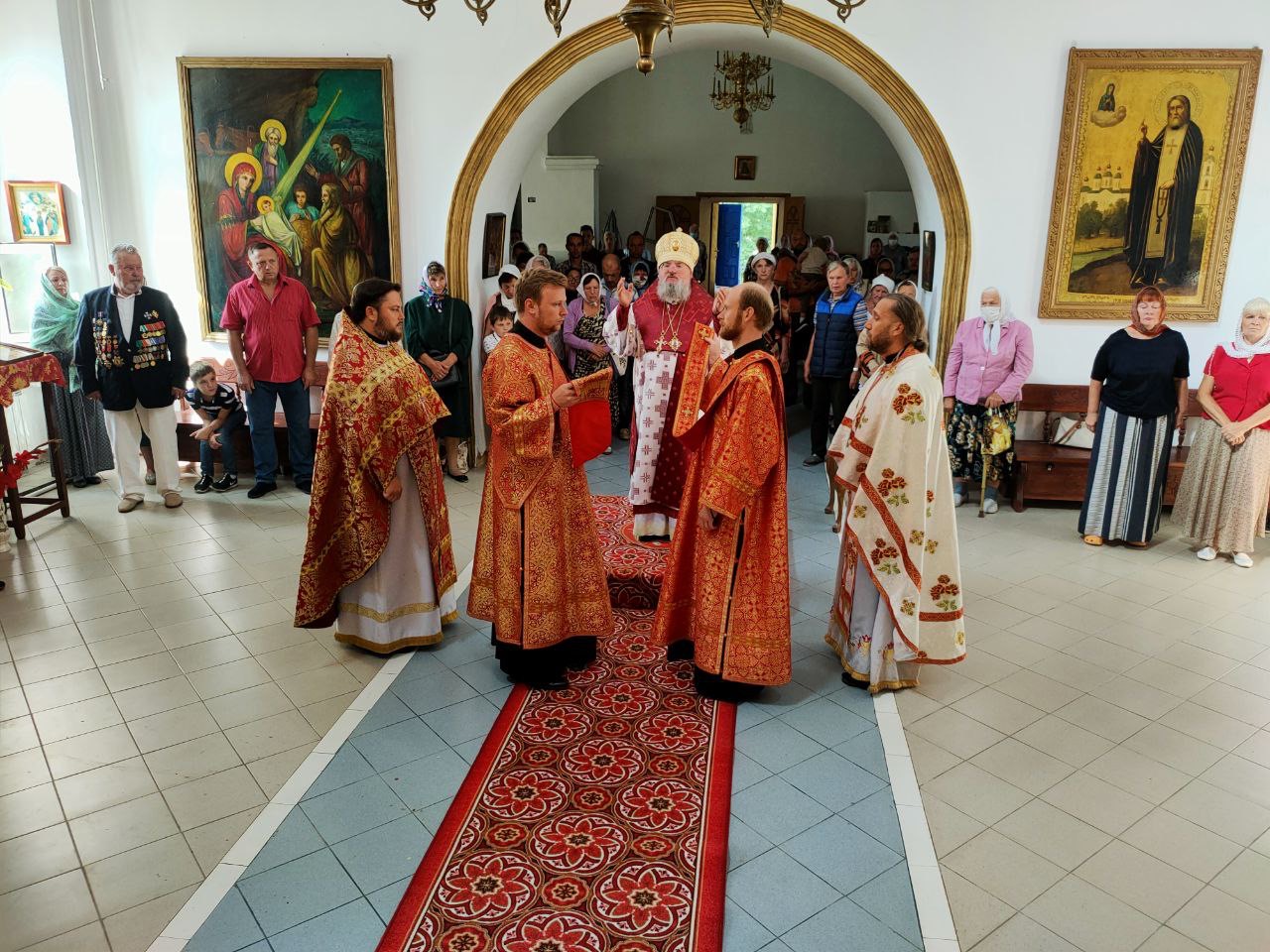 Архипастырю сослужили: протоиерей Антоний Хатунцев, иеромонах Иеремия (Ильченко) – настоятель храма, диакон Евгений Ковригин и иеродиакон Лука (Старостин).