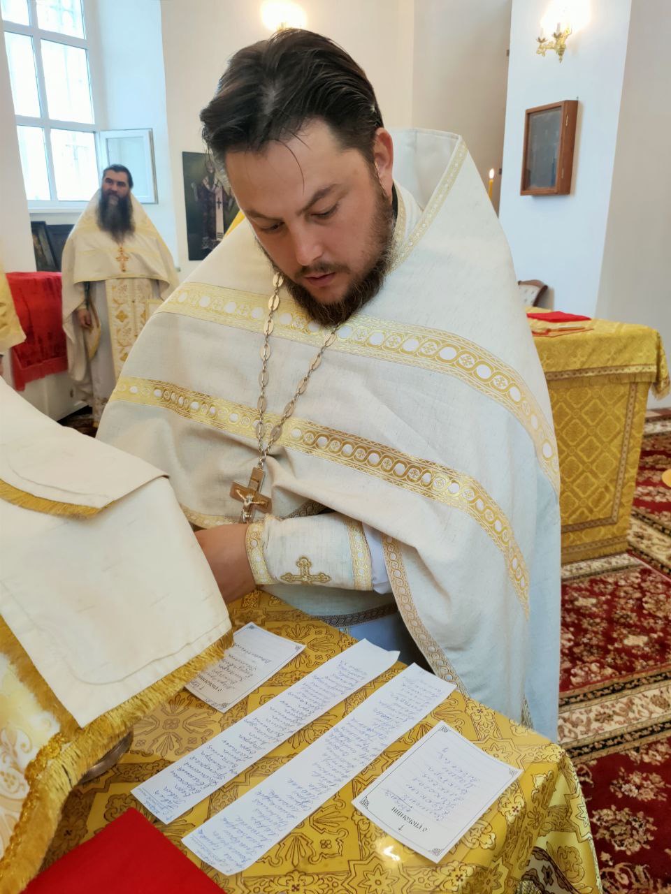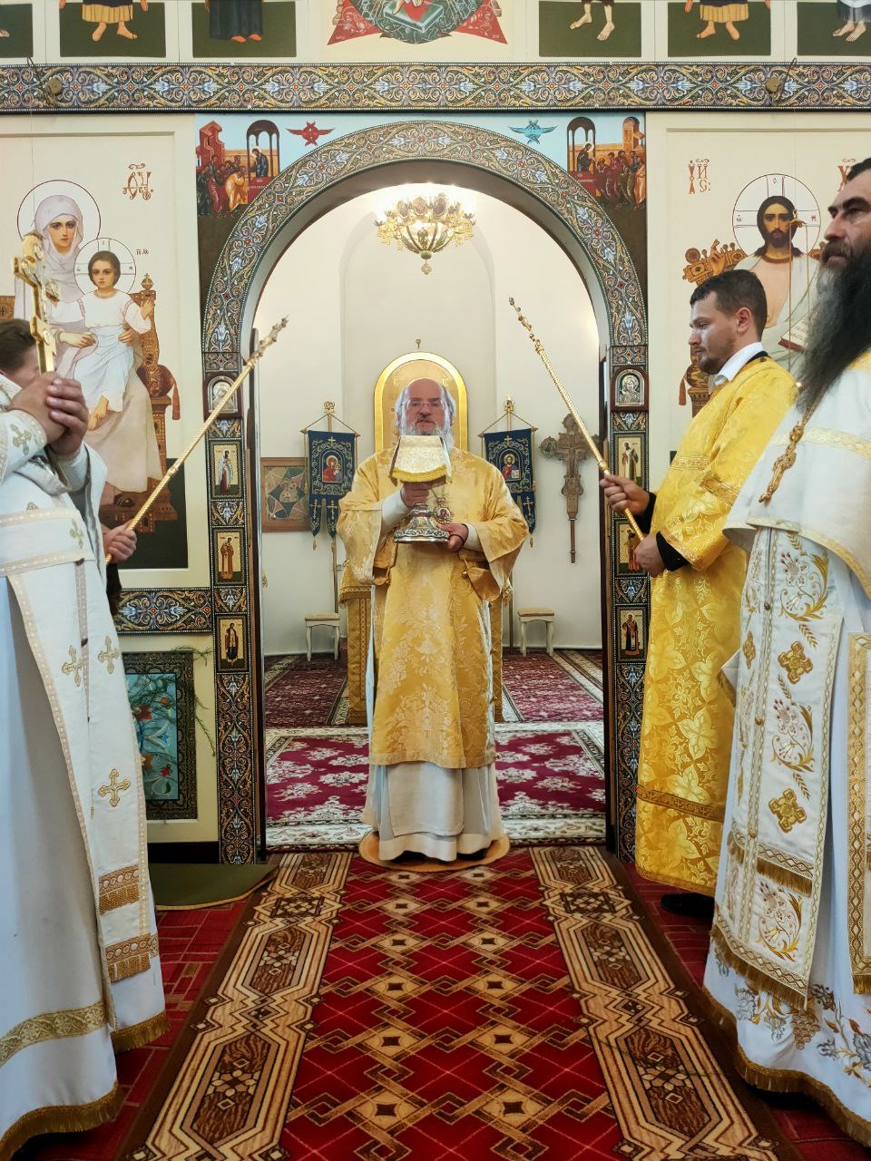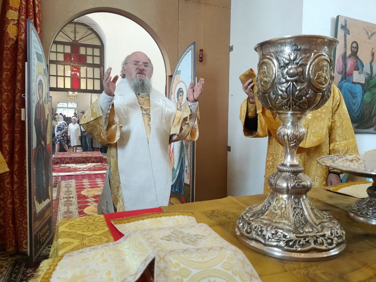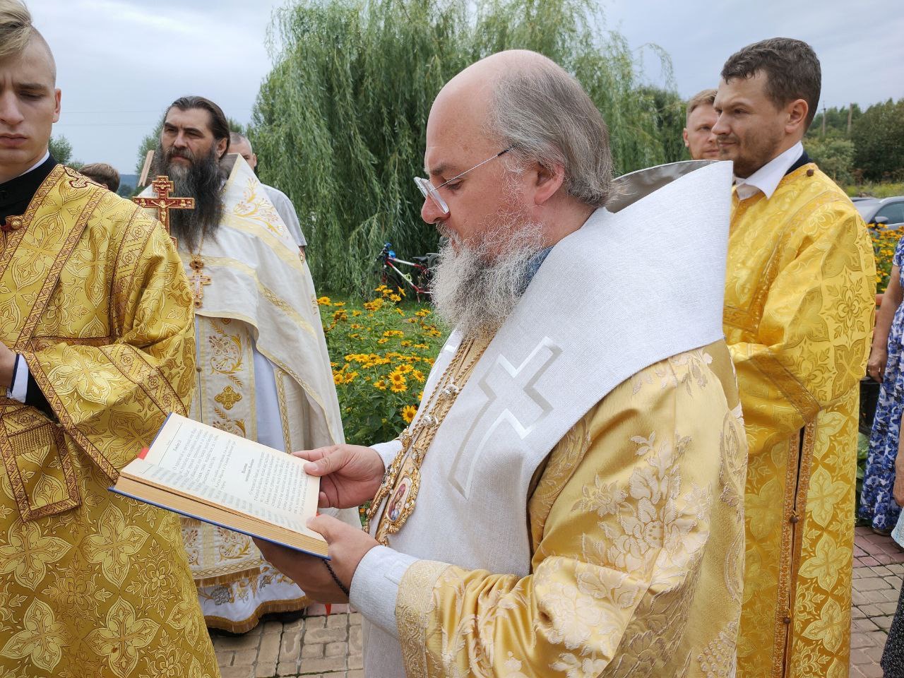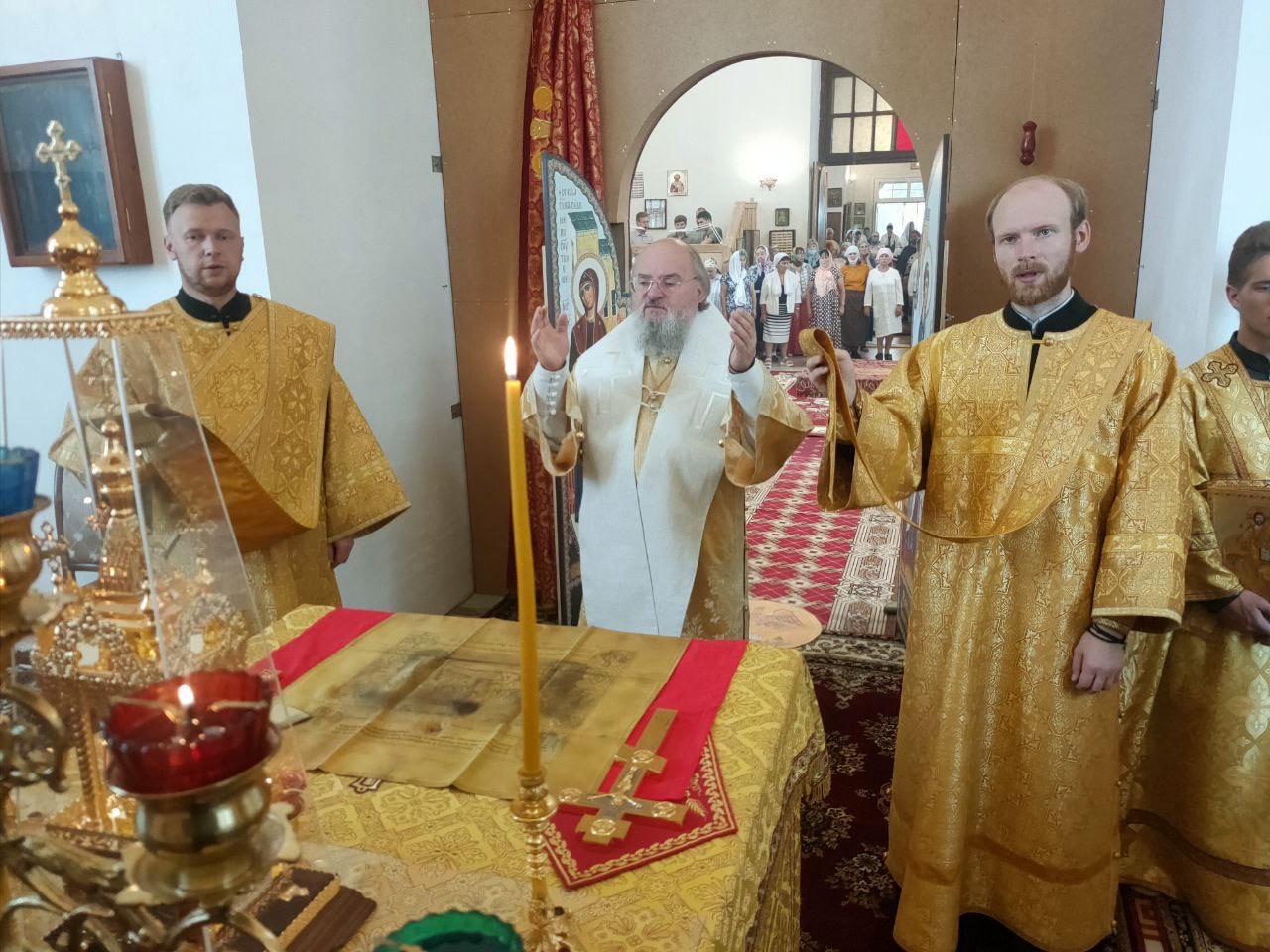 Преосвященному владыке сослужили: игумен Михаил (Семенов), протоиерей Антоний Хатунцев, иерей Евгений Мягков – настоятель храма, иерей Елисей Тимофеев, иерей Евгений Чуркин, диакон Евгений Ковригин и иеродиакон Лука (Старостин).
