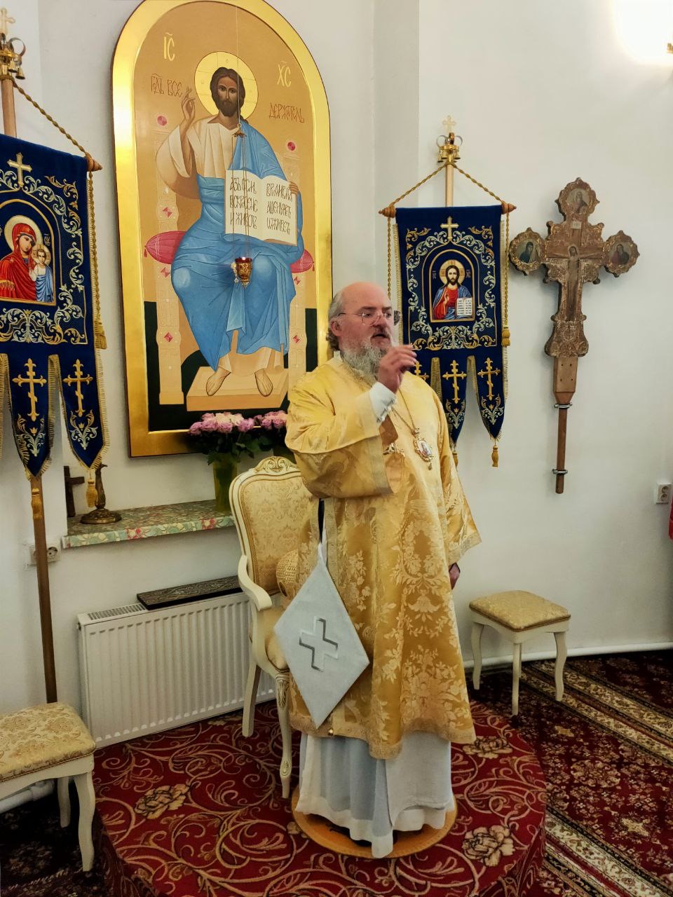 По отпусте литургии состоялся праздничный молебен и крестный ход вокруг храма, в завершении которого, вознеся молитву святителю Николаю, владыка обратился к богомольцам с архипастырским словом.