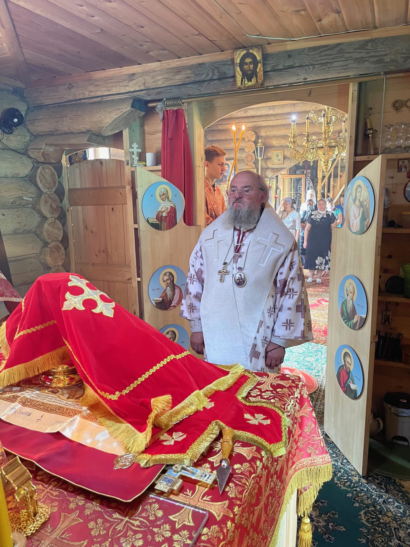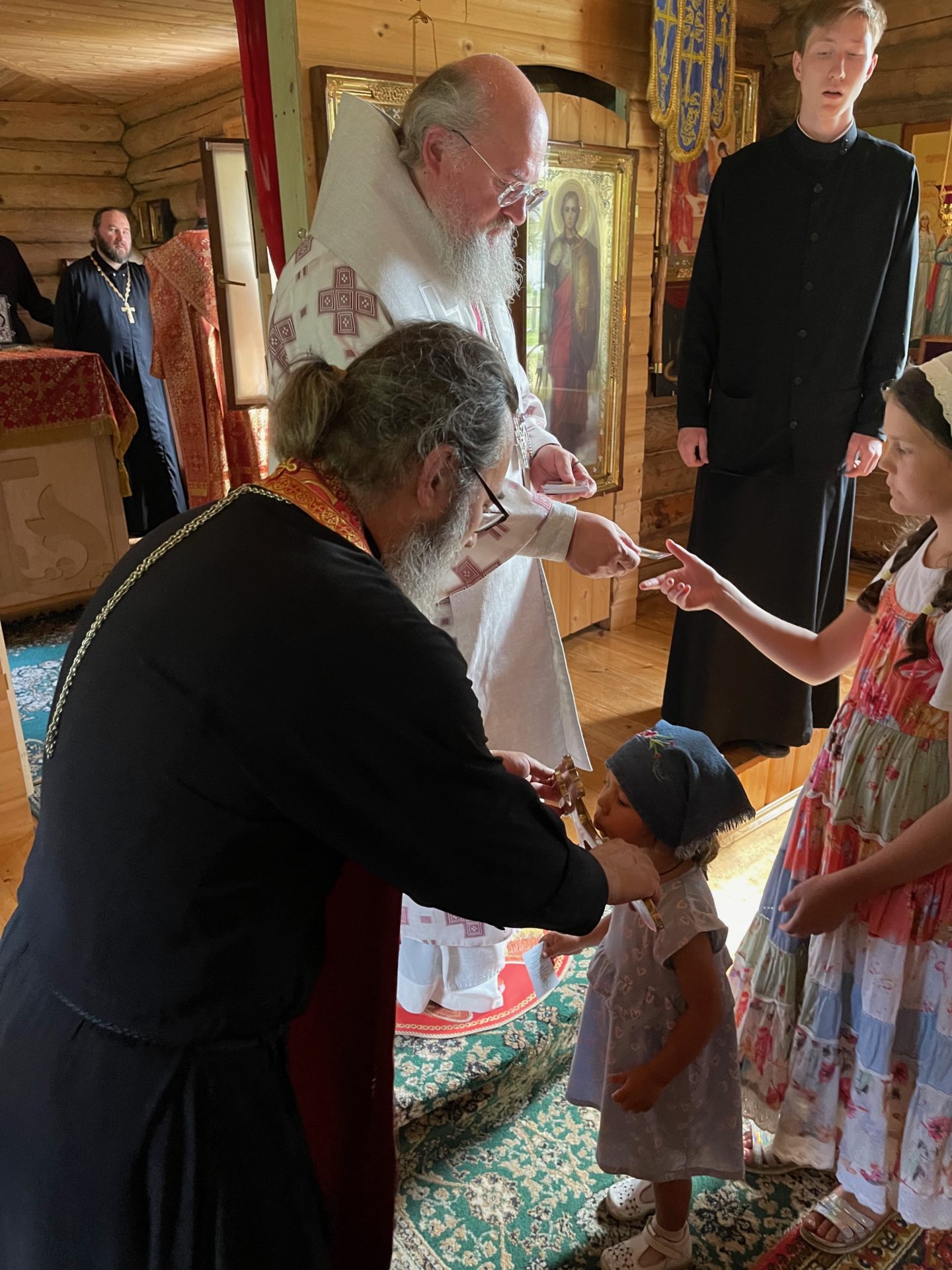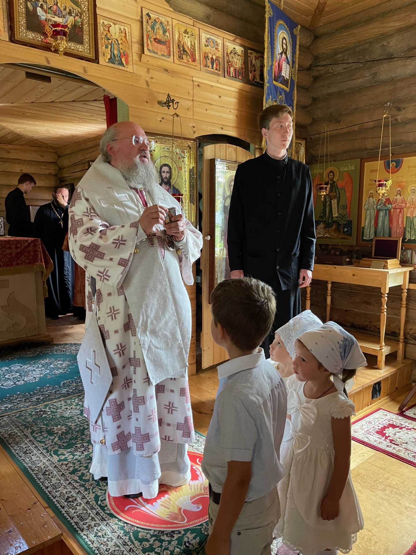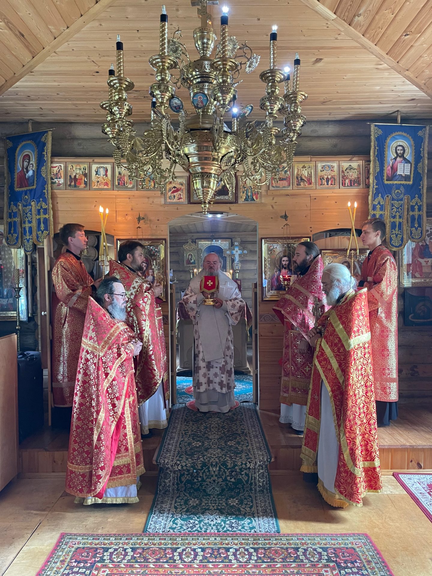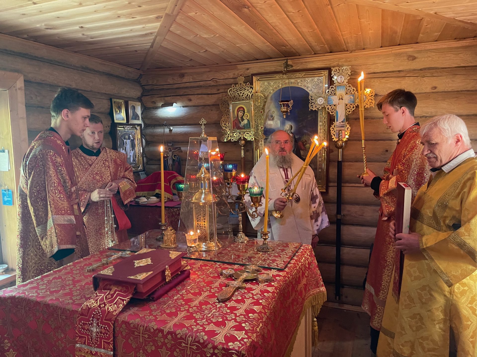 Архипастырю сослужили: протоиерей Максим Садовников – благочинный округа, протоиерей Антоний Хатунцев, иерей Алексий Сорокин, иерей Стахий Гайсин – настоятель прихода и диакон Евгений Ковригин.