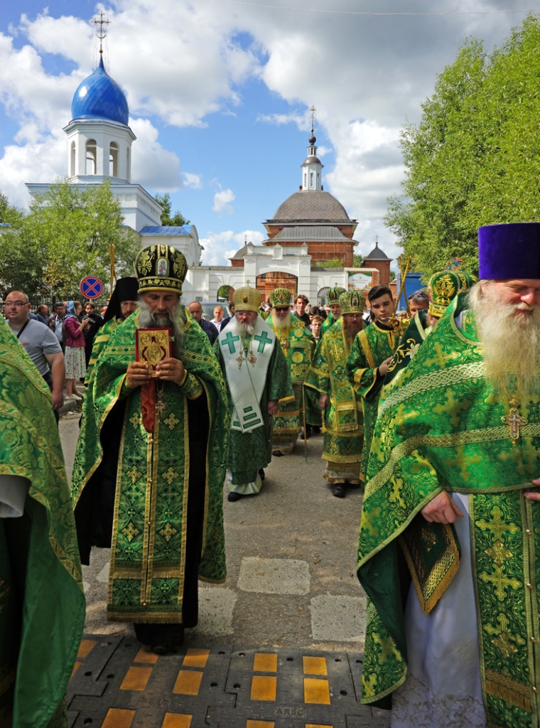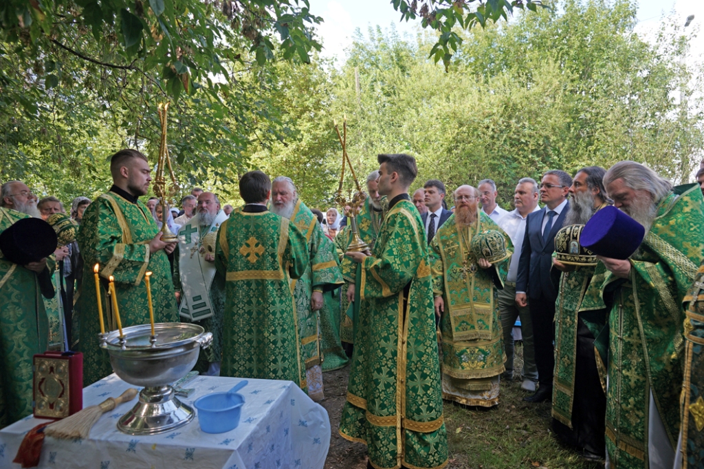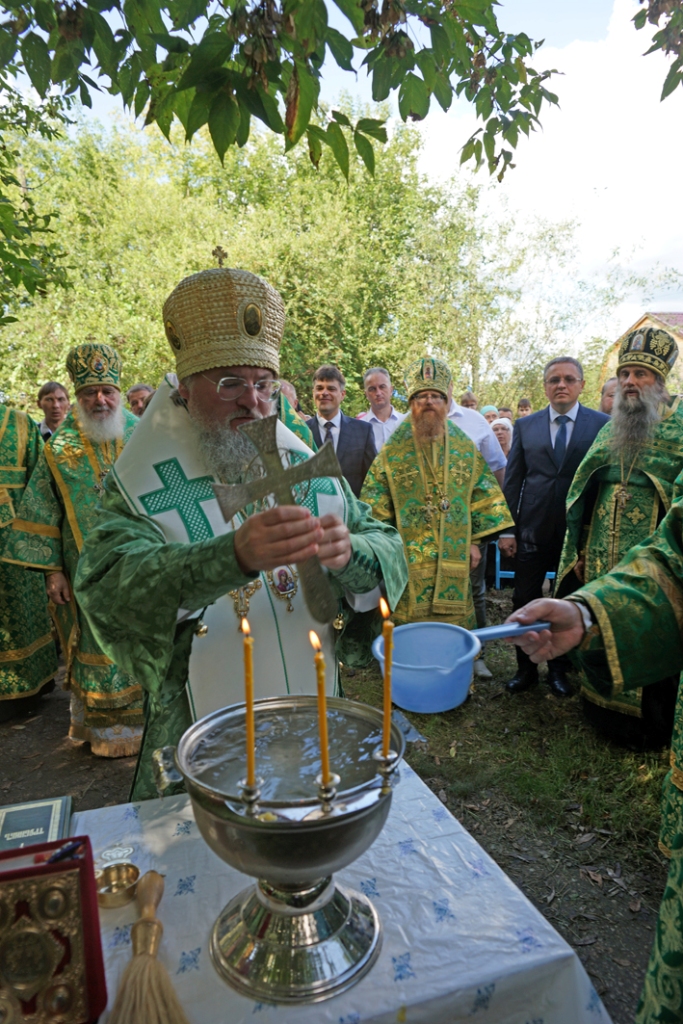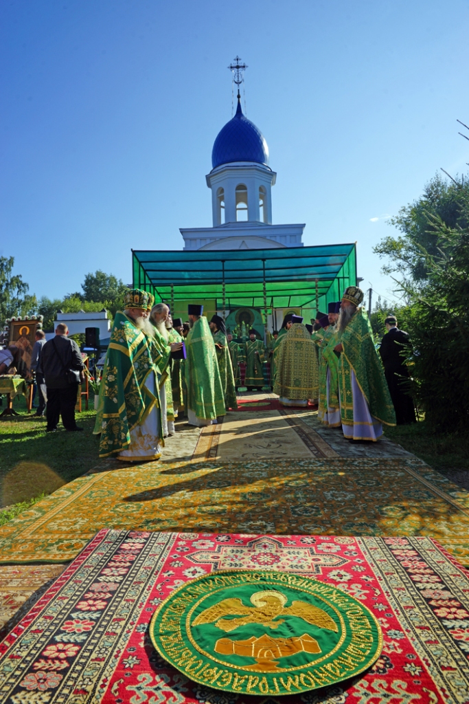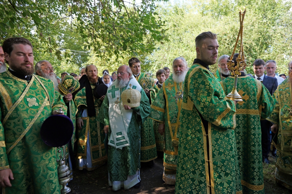 Затем духовенство и миряне совершили крестный ход на святой источник, где было совершено малое освящение воды. После вознесения молитвы святому праведному Лаврентию митрополит Климент и сослужащие ему архипастыри окропили богомольцев святой водой.