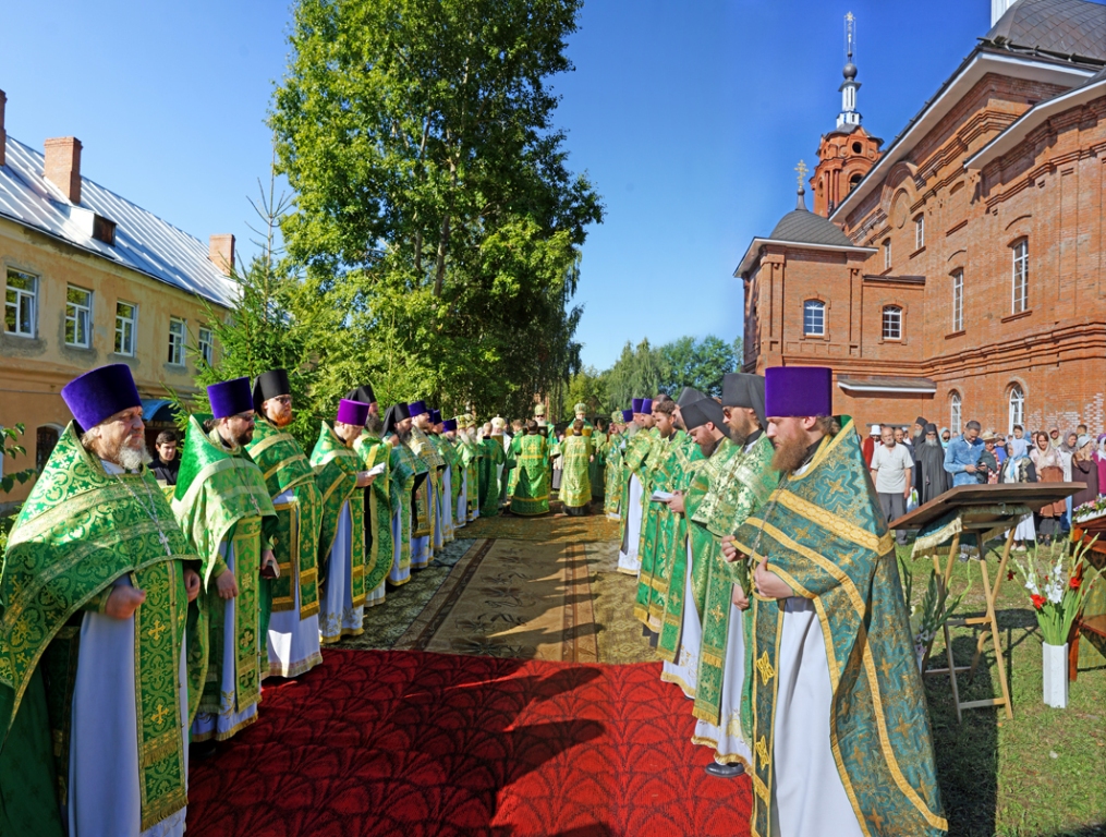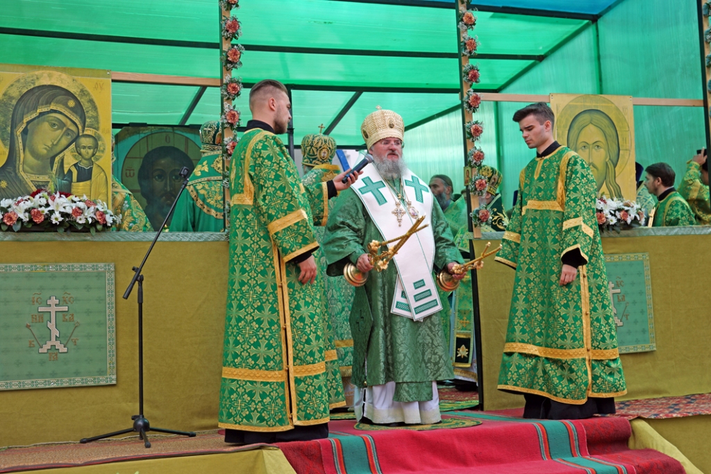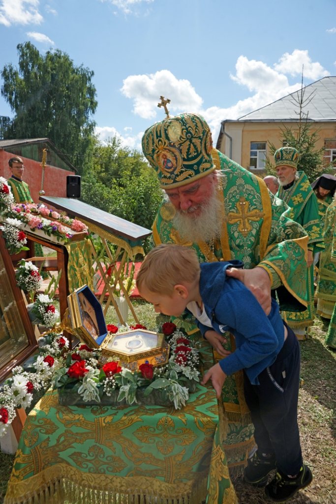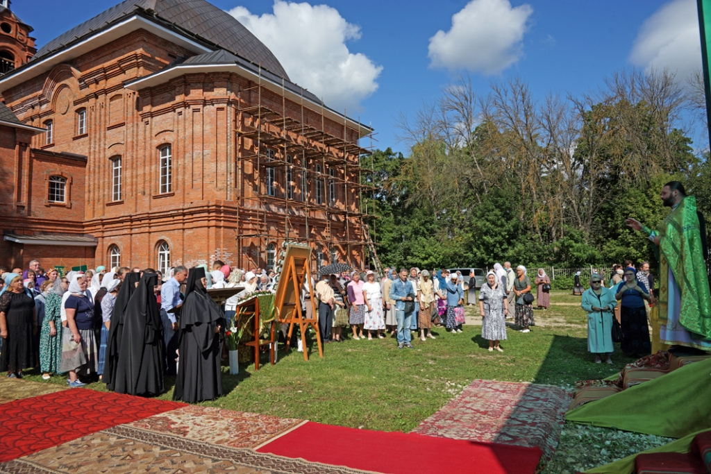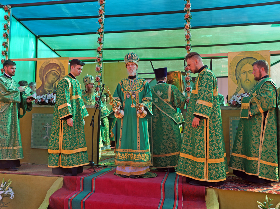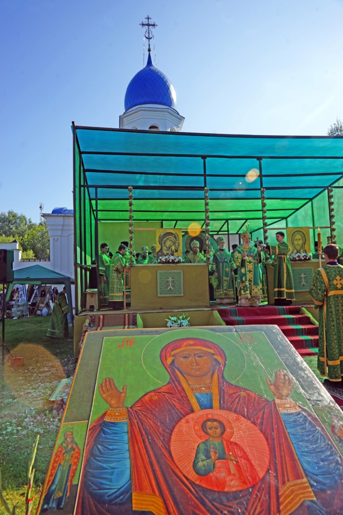 Богослужение совершалось перед Успенским предвратным храмом под открытым небом. На богослужение собрались многочисленные жители города и паломники из соседних городов и областей.