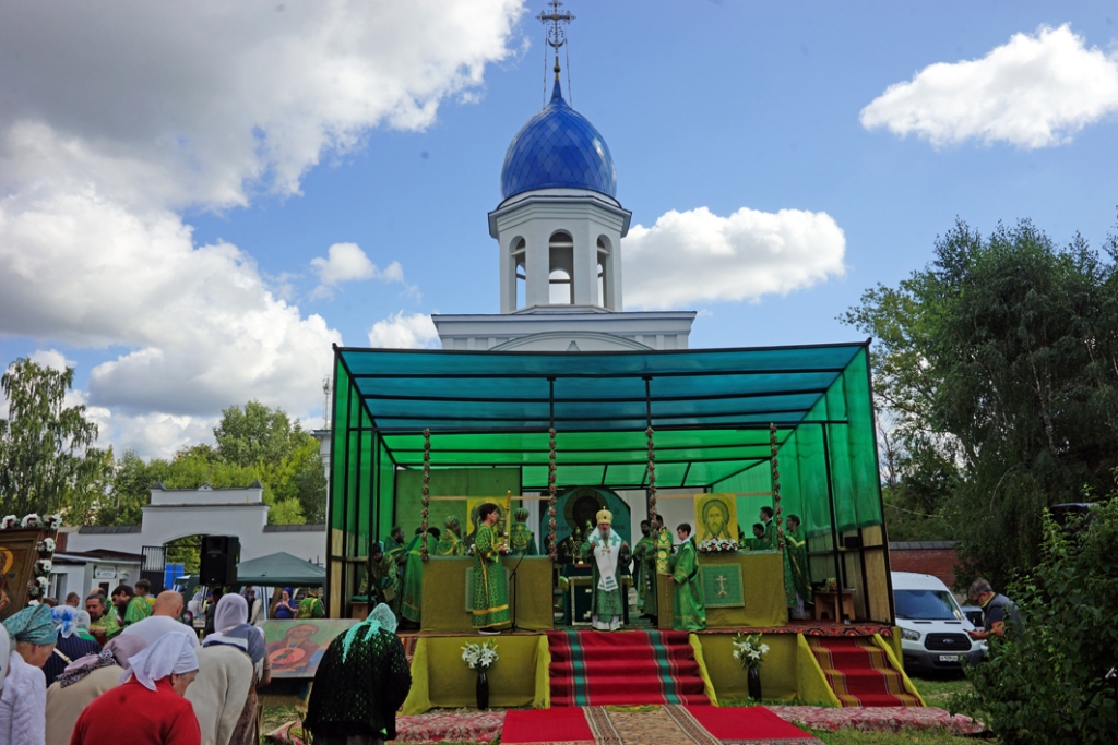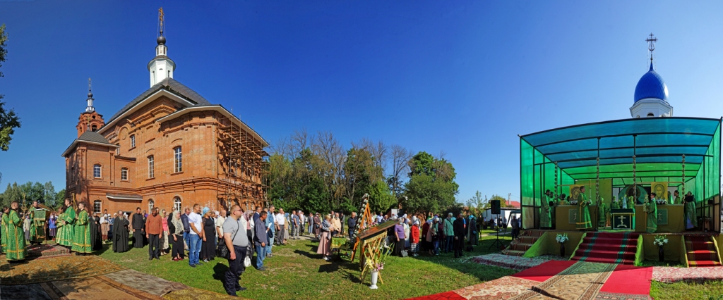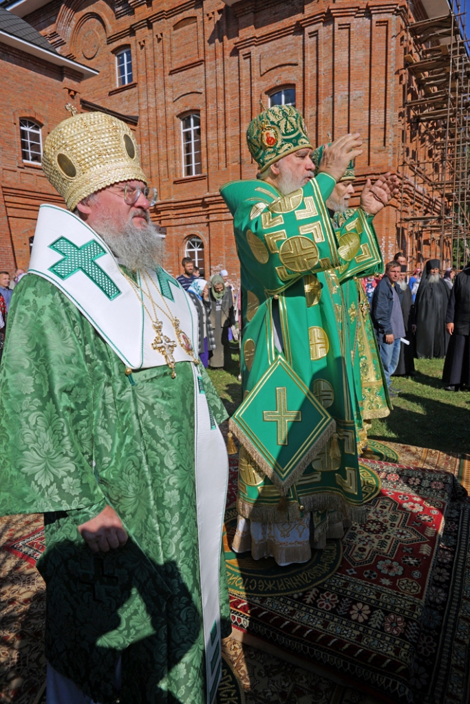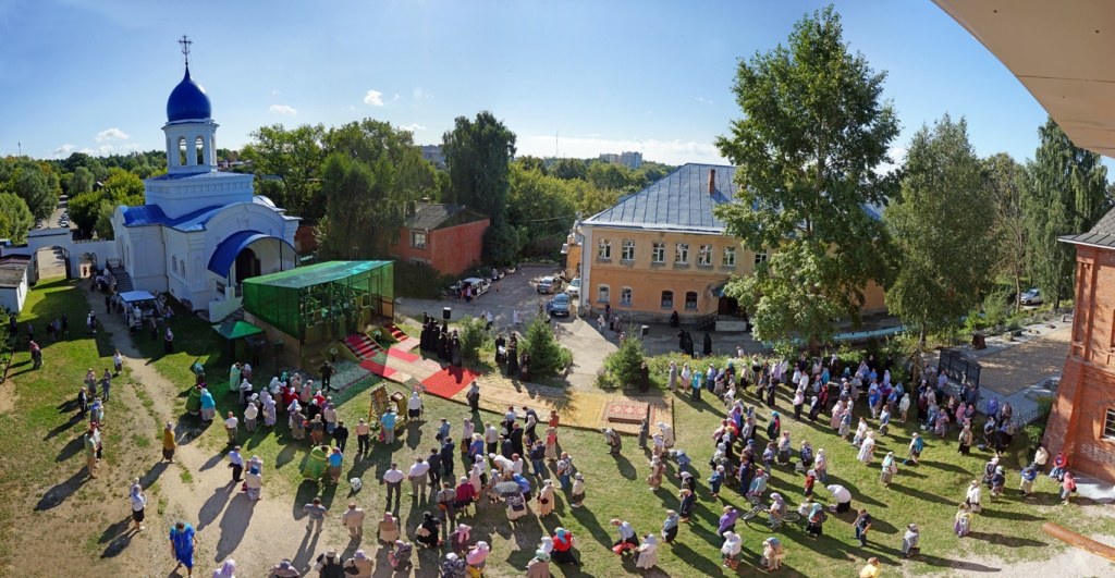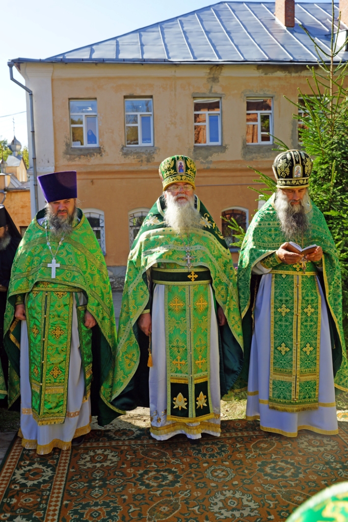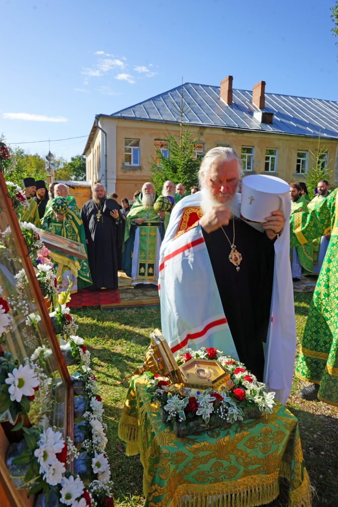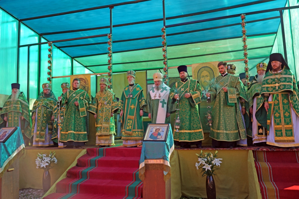 Богослужение совершалось перед Успенским предвратным храмом под открытым небом. На богослужение собрались многочисленные жители города и паломники из соседних городов и областей.