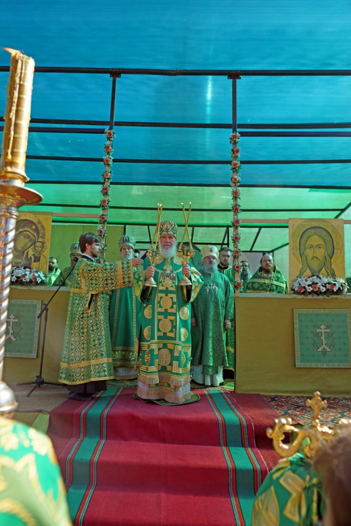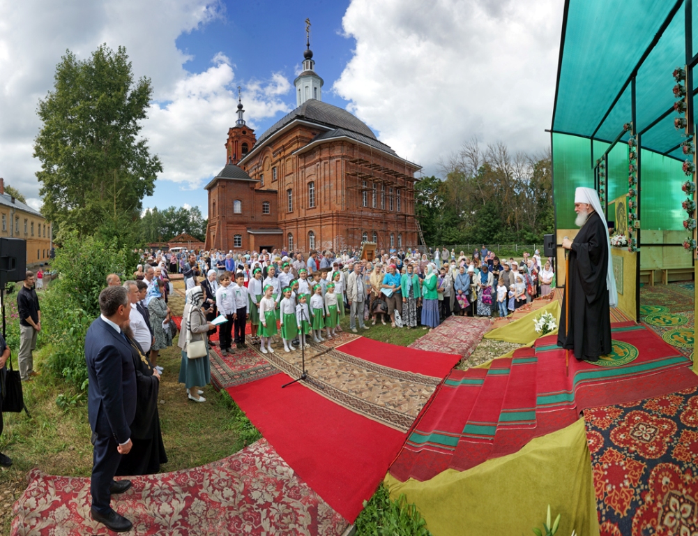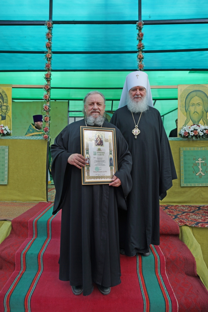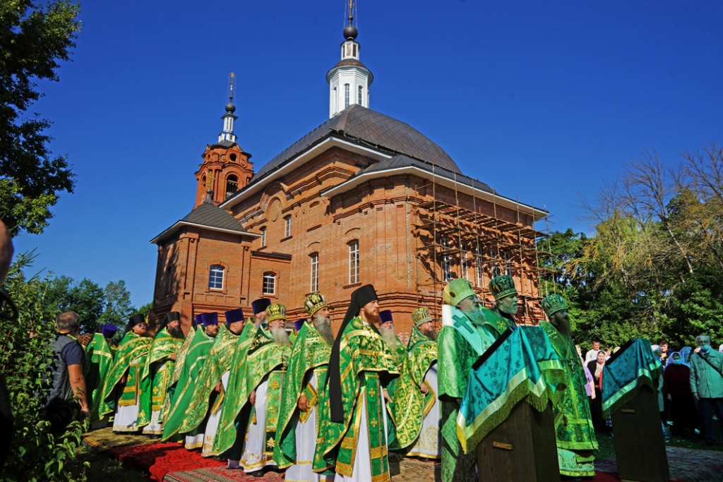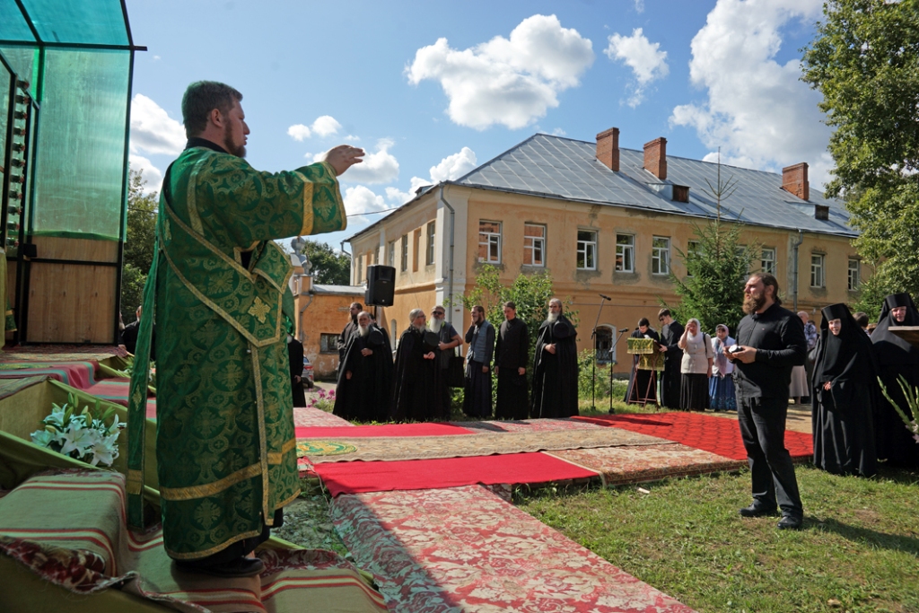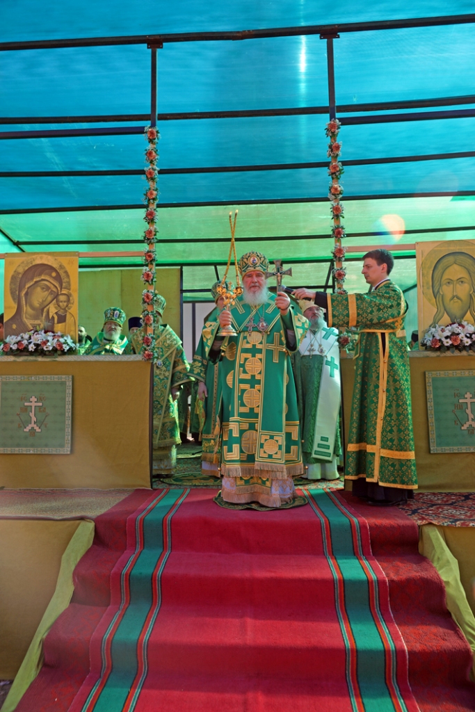 Богослужение совершалось перед Успенским предвратным храмом под открытым небом. На богослужение собрались многочисленные жители города и паломники из соседних городов и областей.