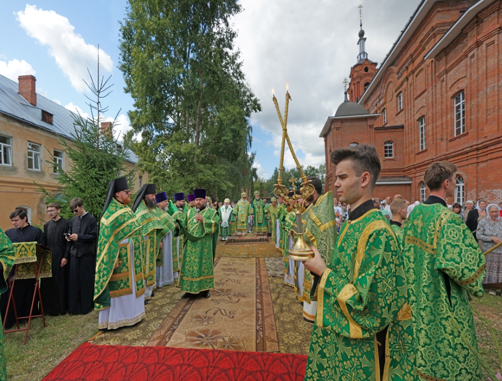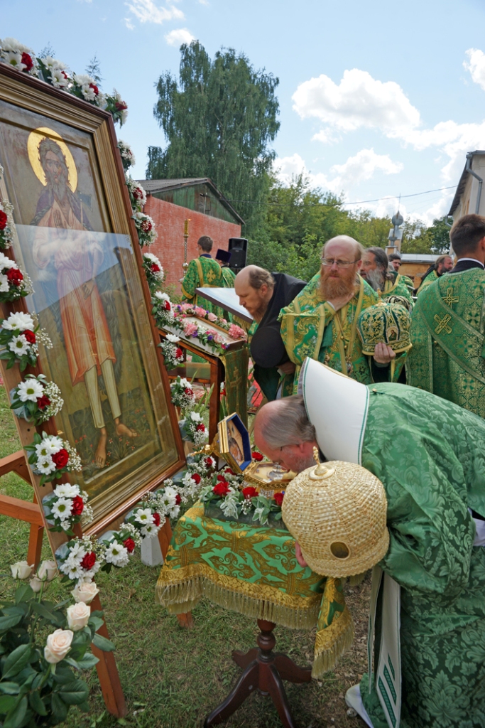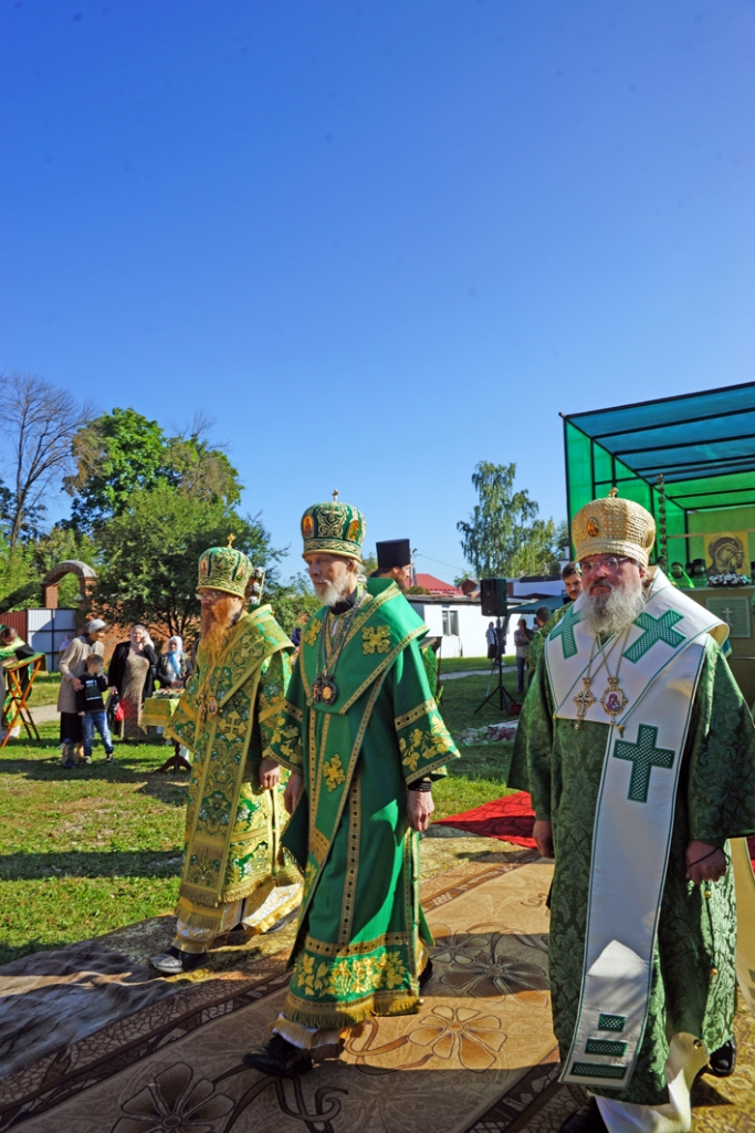 Богослужение возглавил Глава Калужской митрополии митрополит Калужский и Боровский Климент, в сослужении архиепископа Песоченского и Юхновского Максимилиана, епископа Козельского и Людиновского Никиты и епископа Тарусского Иосифа. Преосвященным архипастырям сослужили иеромонах Пафнутий (Габидулин) настоятель монастыря, архимандрит Тихон (Завьялов) — наместник мужского монастыря Успения Пресвятой Богородицы Калужской Свято-Тихоновой пустыни, архимандрит Георгий (Евдачев) — настоятель Свято-Георгиевского Мещовского мужского монастыря, протоиерей Андрей Богомолов – благочинный Южного округа г. Калуги, иерей Константин Комаров – благочинный Северного округа г. Калуги, протоиерей Антоний Хатунцев, протоиерей Александр Рябов, представители духовенства Калужской, Козельской и Песоченской епархий.
