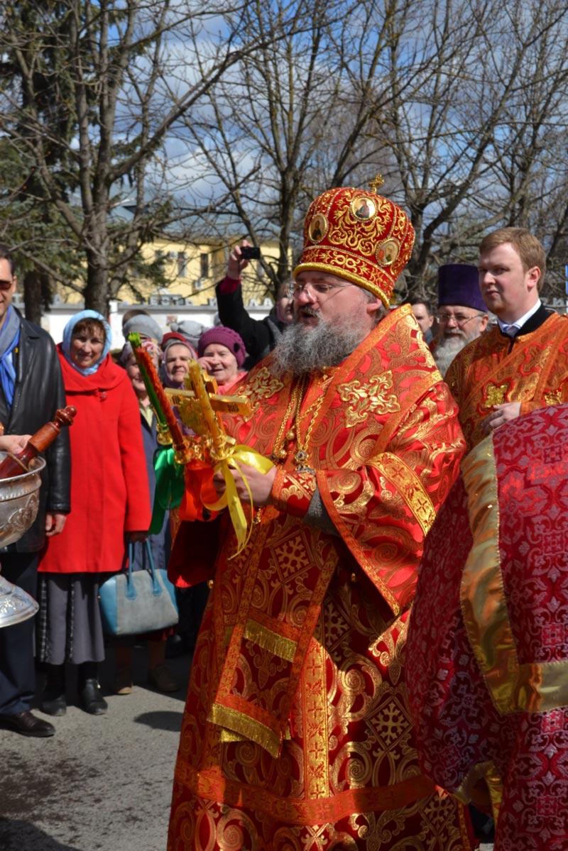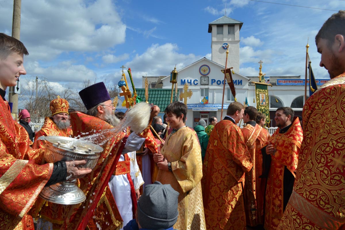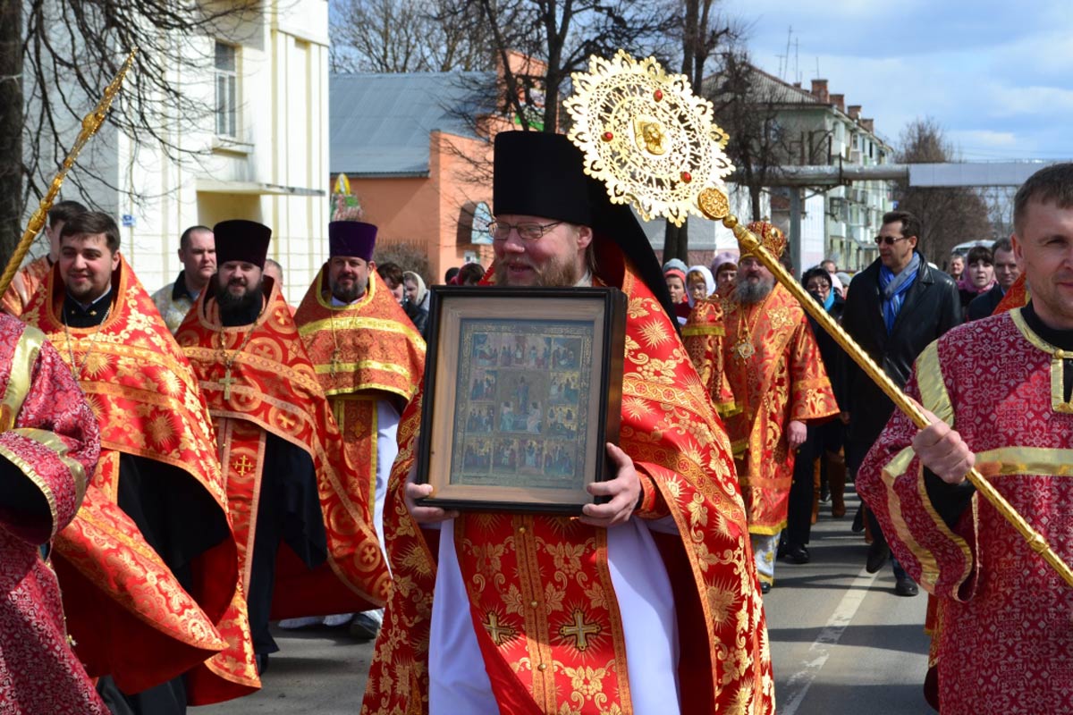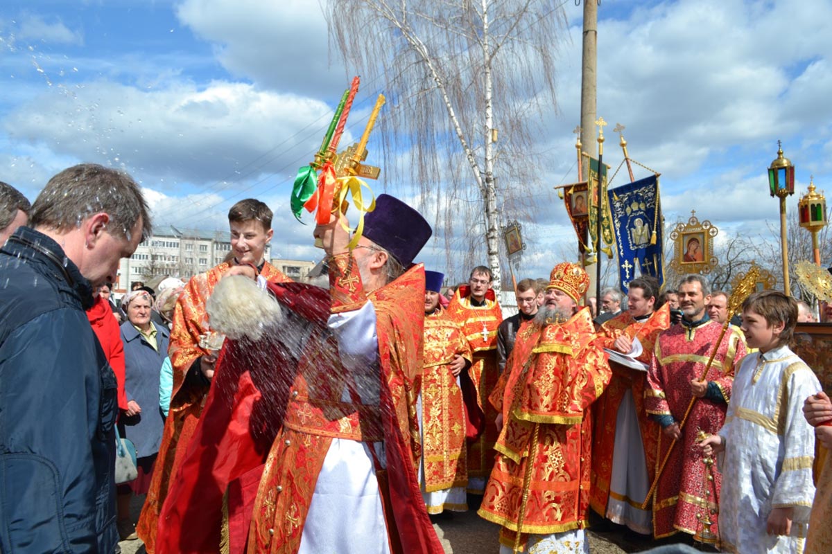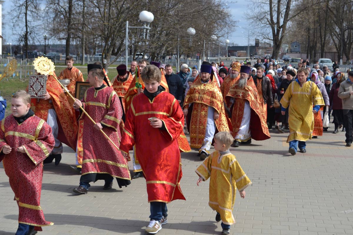 В торжественном шествии участвовали: духовенство Козельской епархии, глава администрации муниципального района «Город Людиново и Людиновский район» -Д.М. Аганичев, и.о. мэра города Людиново –Е.А. Васильев и большое количество верующих, которые во время пути с пением пасхального тропаря и канона Пасхи молились и призывали помощь Божию и благословение на всех жителей города и района.
