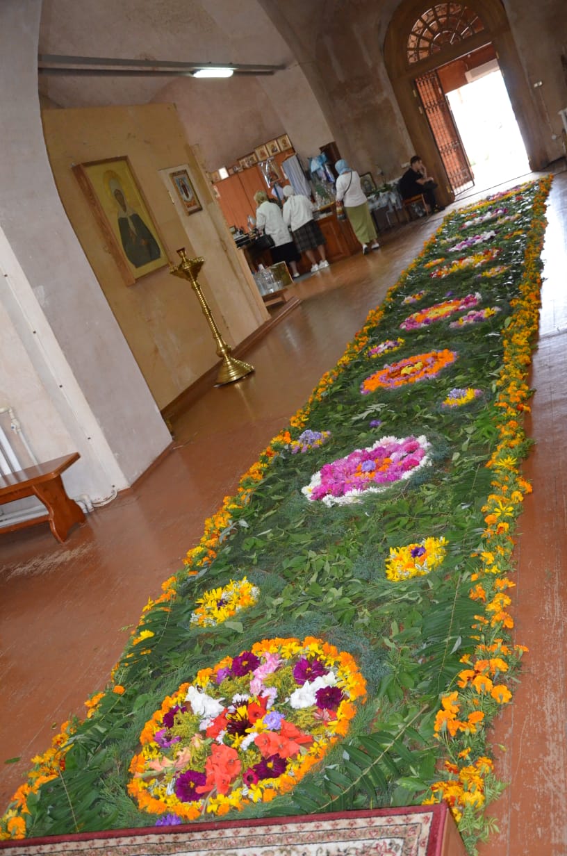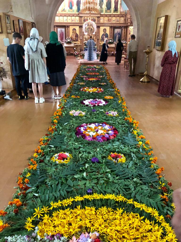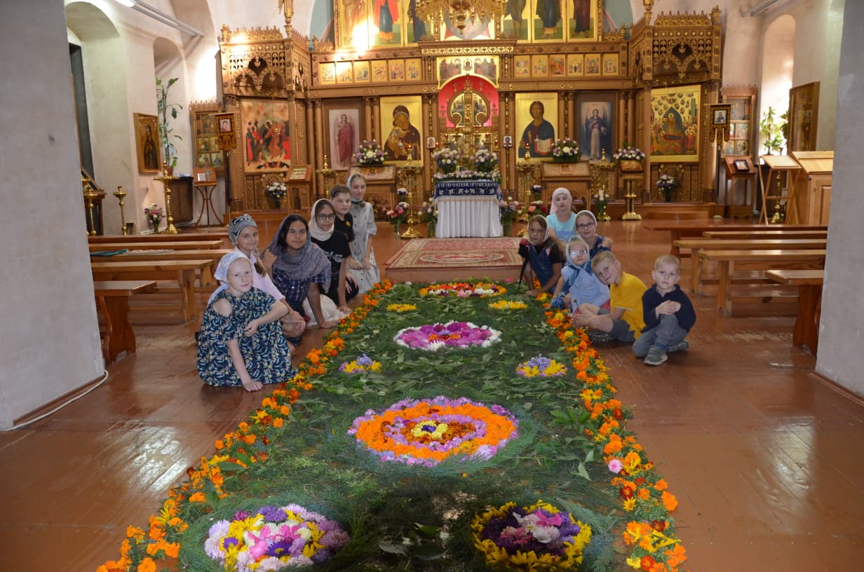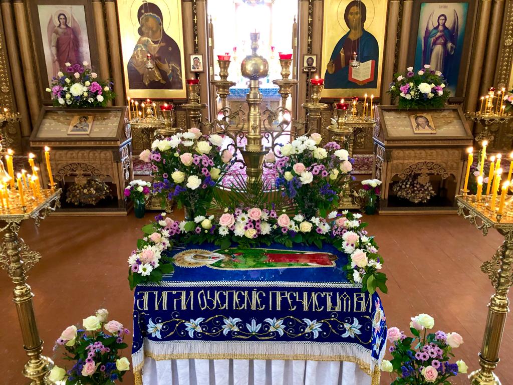На кануне третьего дня празднования Успения Пресвятой Богородицы в Успенском соборе отслужили вечернее богослужение с чином Погребения Пресвятой Богородицы. По сложившейся традиции, каждый год, перед началом богослужения в храм приносят множество живых цветов, которыми выстилают дорожку, по которой проходит крестных ход с плащаницей Пресвятой Богородицы. В этот день многие прихожане и воспитанники Воскресной школы принимают активное участие в жизни храма.