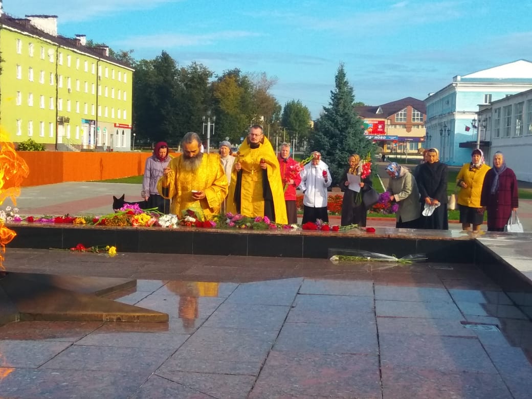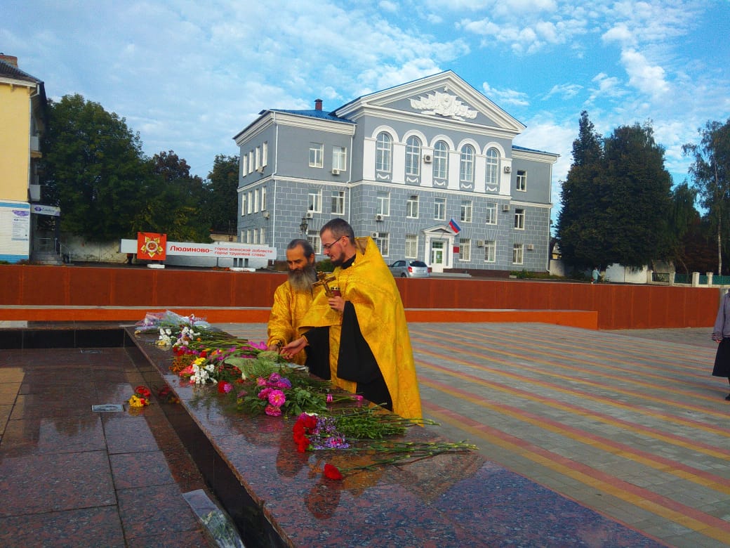 9 сентября 2021 года, в День освобождения города Людиново от немецко-фашистских захватчиков, прихожане Казанского собора Крестным ходом прошли от собора до Поклонного Креста на площадь Победы, где клириком храма иереем Алексием Сначевым в сослужении диакона Андрея Соколова была совершена заупокойная лития обо всех погибших при освобождении города Людиново и Людиновского района, а также погибших в годы Великой Отечественной войны.К подножию Поклонного Креста, к Вечному огню и памятной стеле «Людиново – город воинской доблести» были возложены цветы и венки в память о погибших защитниках родного города.В этот день прошли различные памятные мероприятия: поминовение погибших, возложение цветов к братским могилам и местам захоронения жертв фашизма.Ведь только сохраняя память о тех страшных событиях и отдавая дань уважения погибшим, можно надеяться на то, что подобное больше никогда не повторится в человеческой истории.