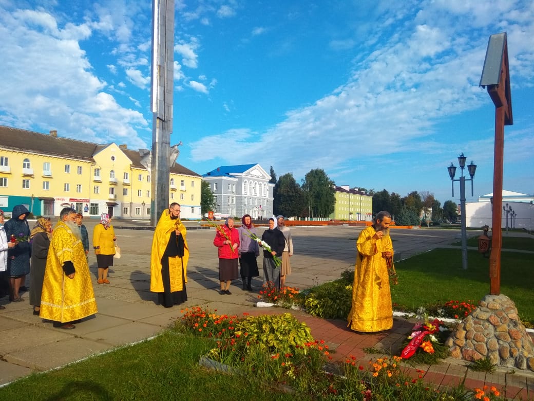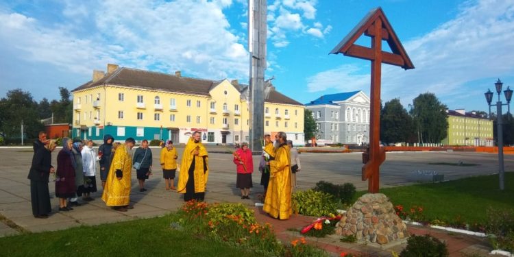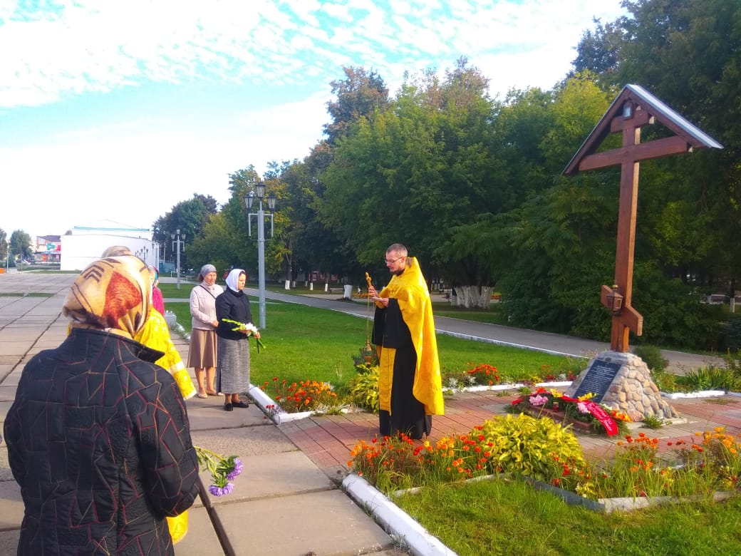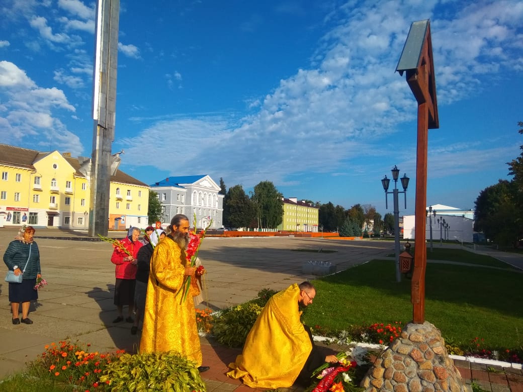 Заупокойная лития у Поклонного Креста в городе Людиново