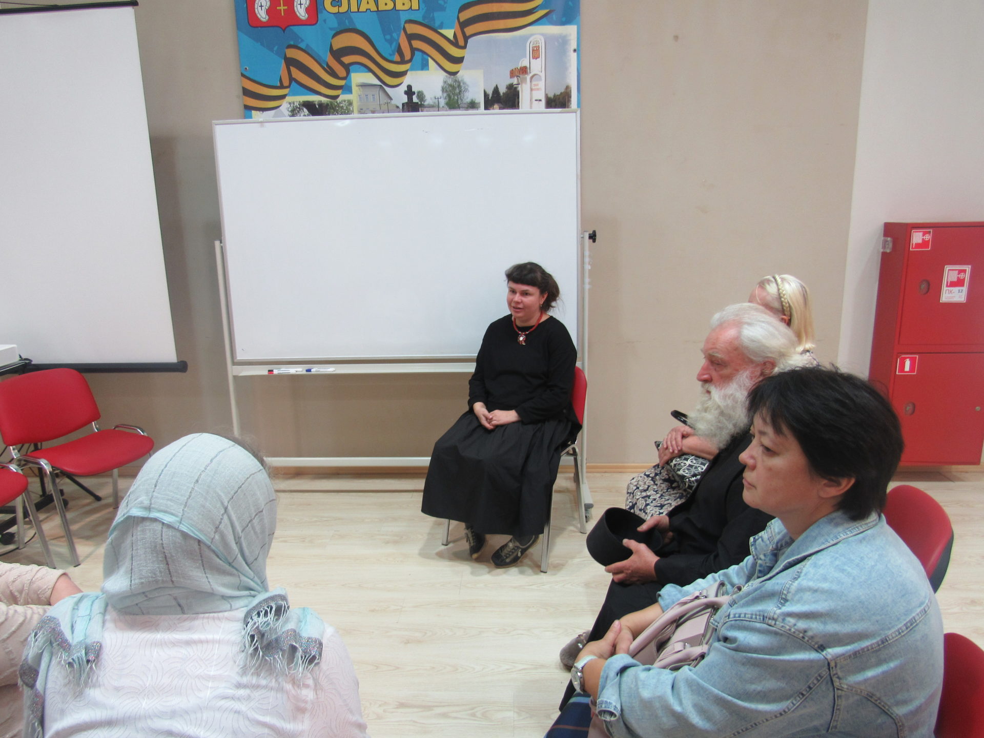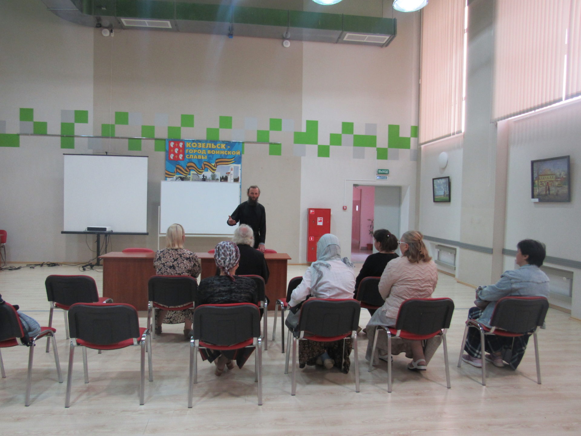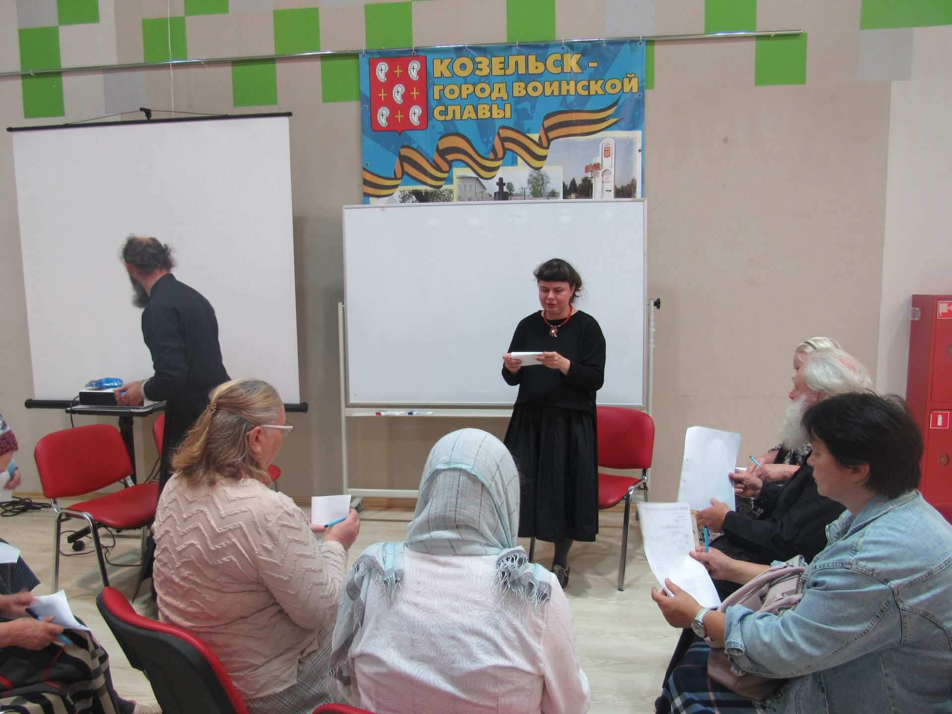 12 сентября в районном доме культуры состоялась встреча родителей и специалистов по работе с детьми с сотрудником синодального отдела по церковной благотворительности, психологом развития и сотрудником Марфо-Мариинской обители Анастасией Владиславовной Пелячик. Беседа на тему «Счастливая семья – залог преодоления любых зависимостей» продолжалась в течение двух часов, затем Анастасия Владиславовна дала интервью газете «Козельск»