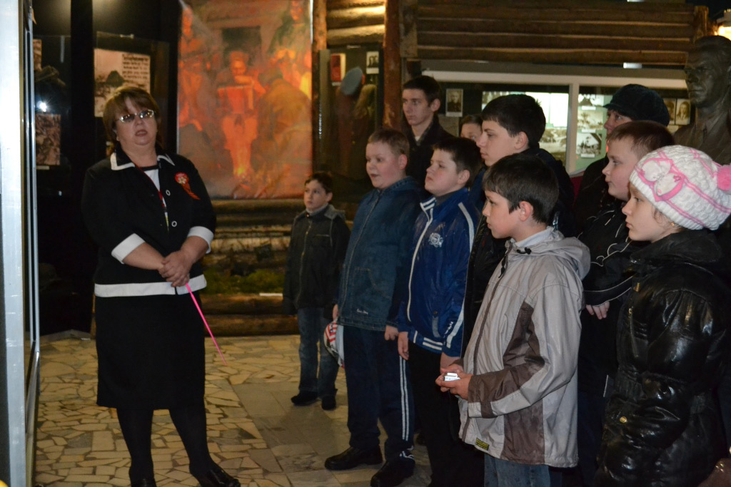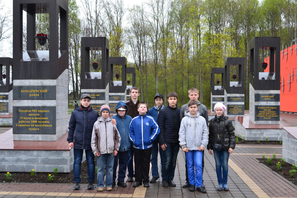 В ходе экскурсии, ребята посетили центральный монумент комплекса – Стену памяти, где на красном граните увековечены фамилии свыше 8 тысяч погибших партизан, символический партизанский костёр горит здесь день и ночь, и Музей истории партизанского движения на Брянщине с диорамой «Взрыв Голубого моста». На сегодняшний день это самый крупный в России музей партизанской славы. Большой интерес вызвала экспозиция боевой техники, расположенная под открытым небом.