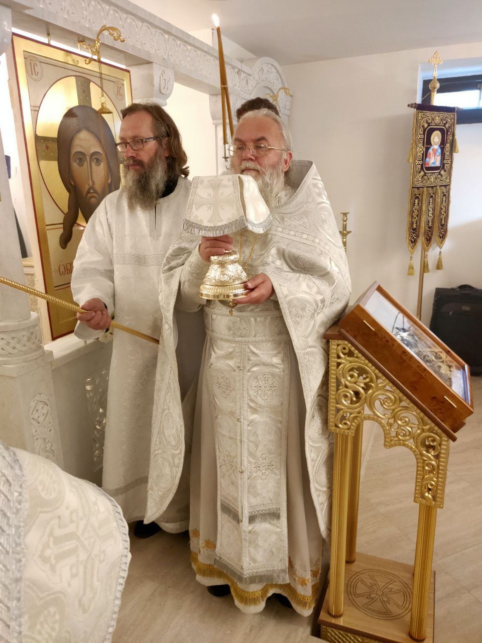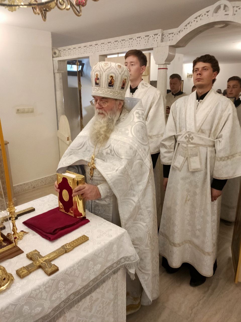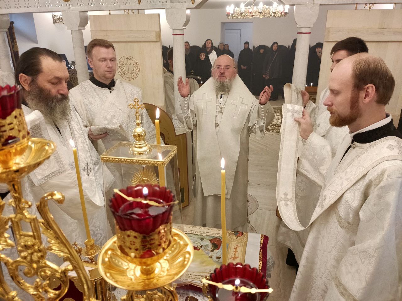 Архипастырю сослужили: протоиерей Алексий Жиганов, игумен Михаил (Семенов), протоиерей Антоний Хатунцев, иерей Виктор Носов, иерей Максим Изопов, диакон Евгений Ковригин, диакон Евгений Васильев, диакон Валерий Волков и иеродиакон Лука (Старостин).