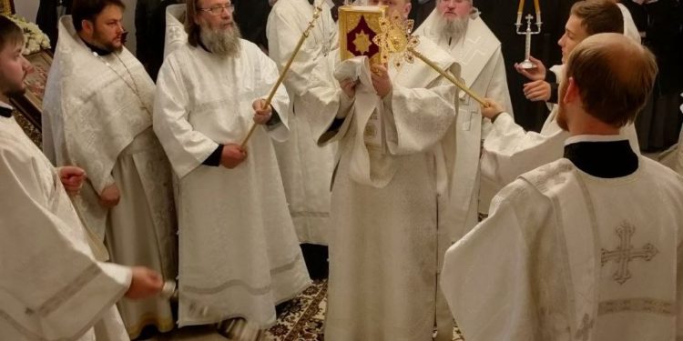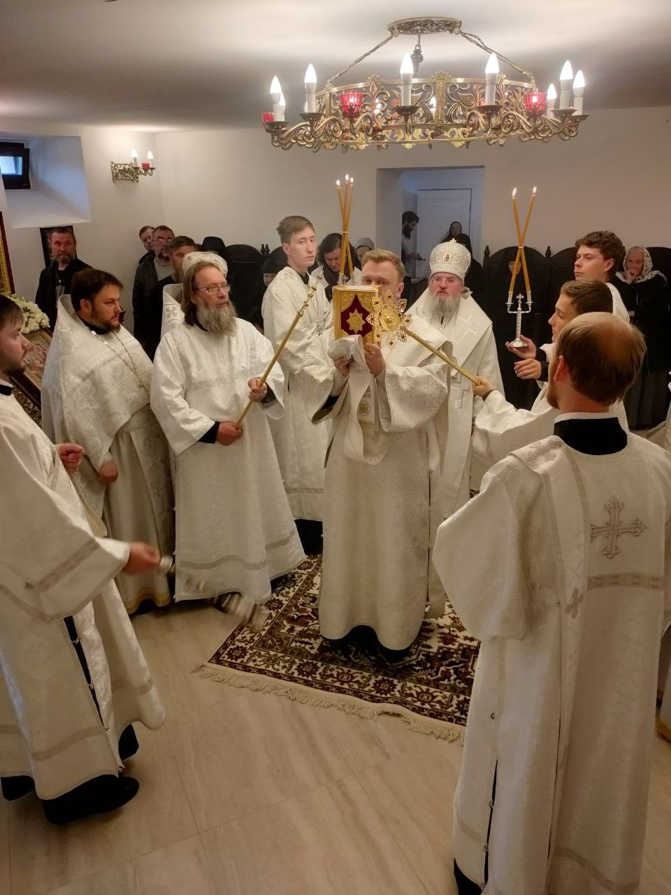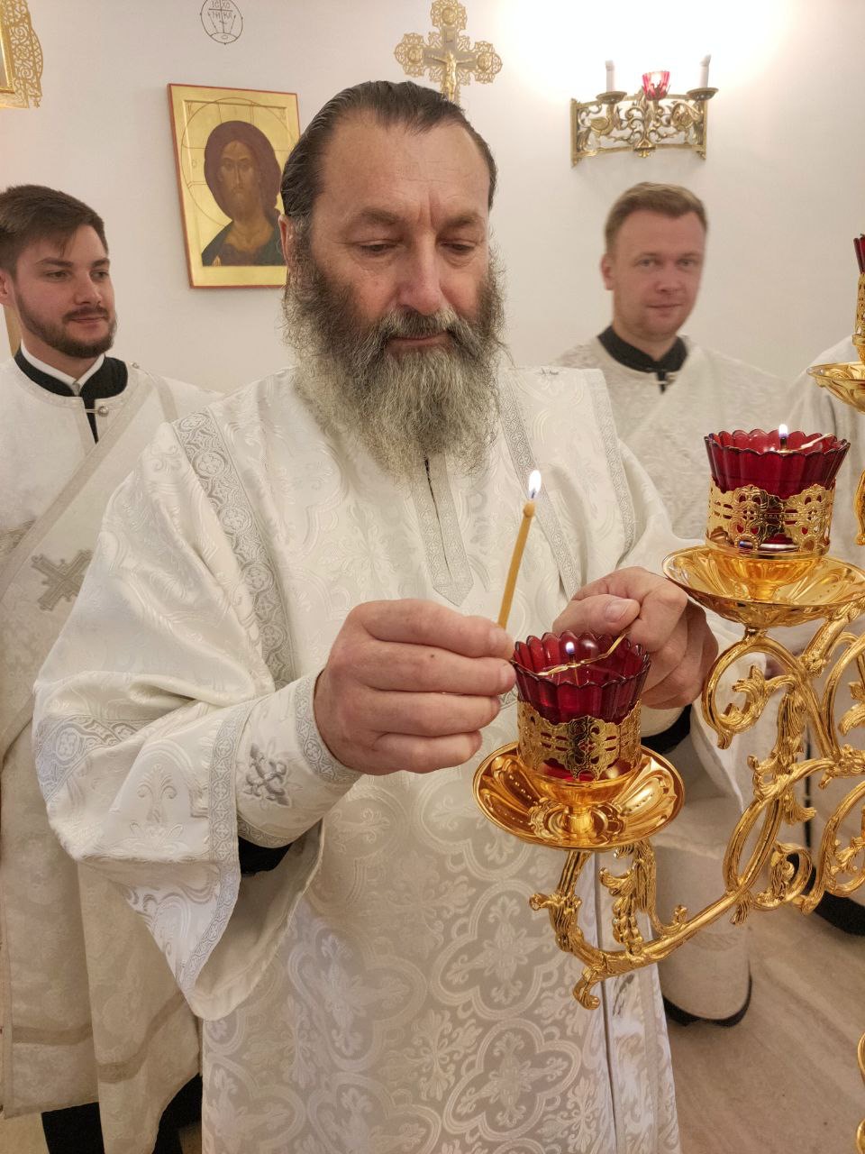 Архипастырю сослужили: протоиерей Алексий Жиганов, игумен Михаил (Семенов), протоиерей Антоний Хатунцев, иерей Виктор Носов, иерей Максим Изопов, диакон Евгений Ковригин, диакон Евгений Васильев, диакон Валерий Волков и иеродиакон Лука (Старостин).