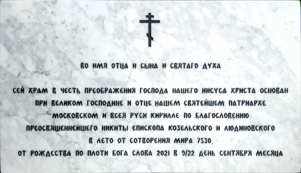 25 сентября епископ Козельский и Людиновский Никита совершил чинопоследование основания храма в урочище Меренищи Козельского района. Деревянный храм в честь Преображения Господня будет воздвигнут рядом с разрушенным храмом в честь иконы Божией Матери «Всех скорбящих Радость», который впоследствии также предполагается восстановить. Архипастырю сослужили: иеромонах Вадим (Басов), иерей Максим Изопов и диакон Евгений Ковригин.