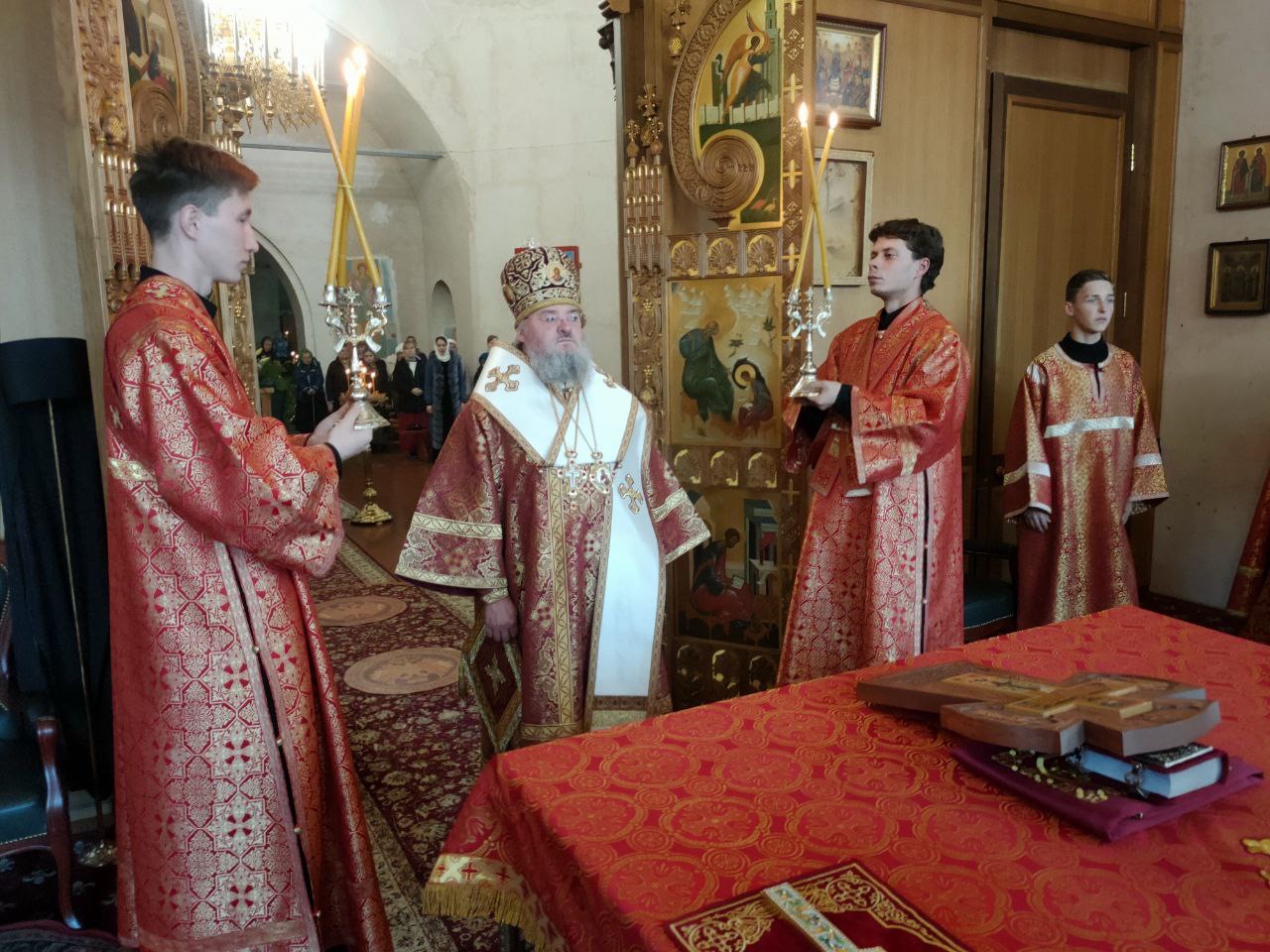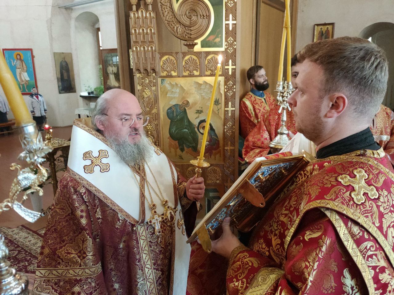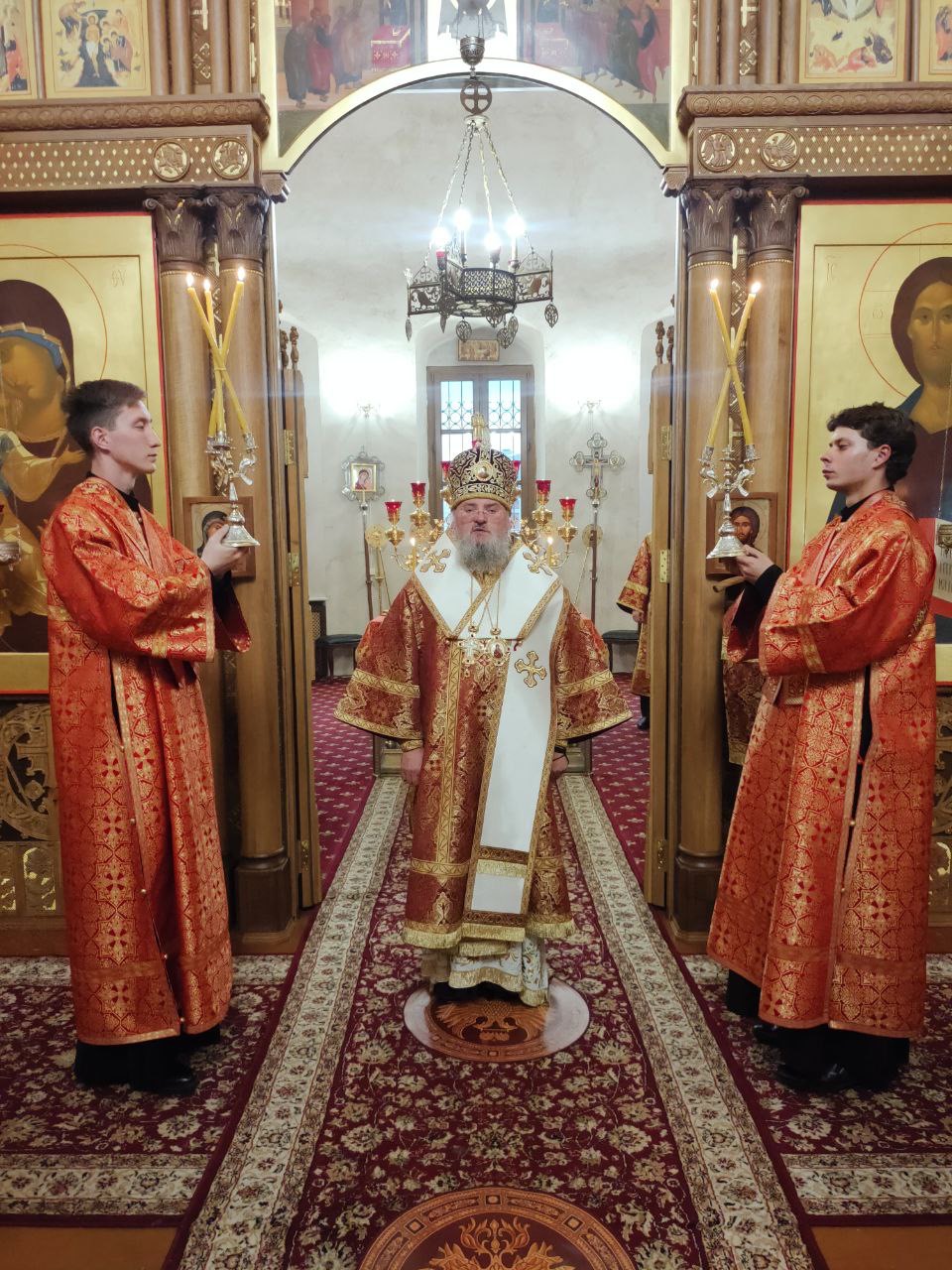 Архипастырю сослужили: протоиерей Антоний Хатунцев, иеромонах Паисий (Курмаз), иерей Елисей Тимофеев, иерей Евгений Чуркин, диакон Евгений Ковригин и иеродиакон Виталий (Павленко).