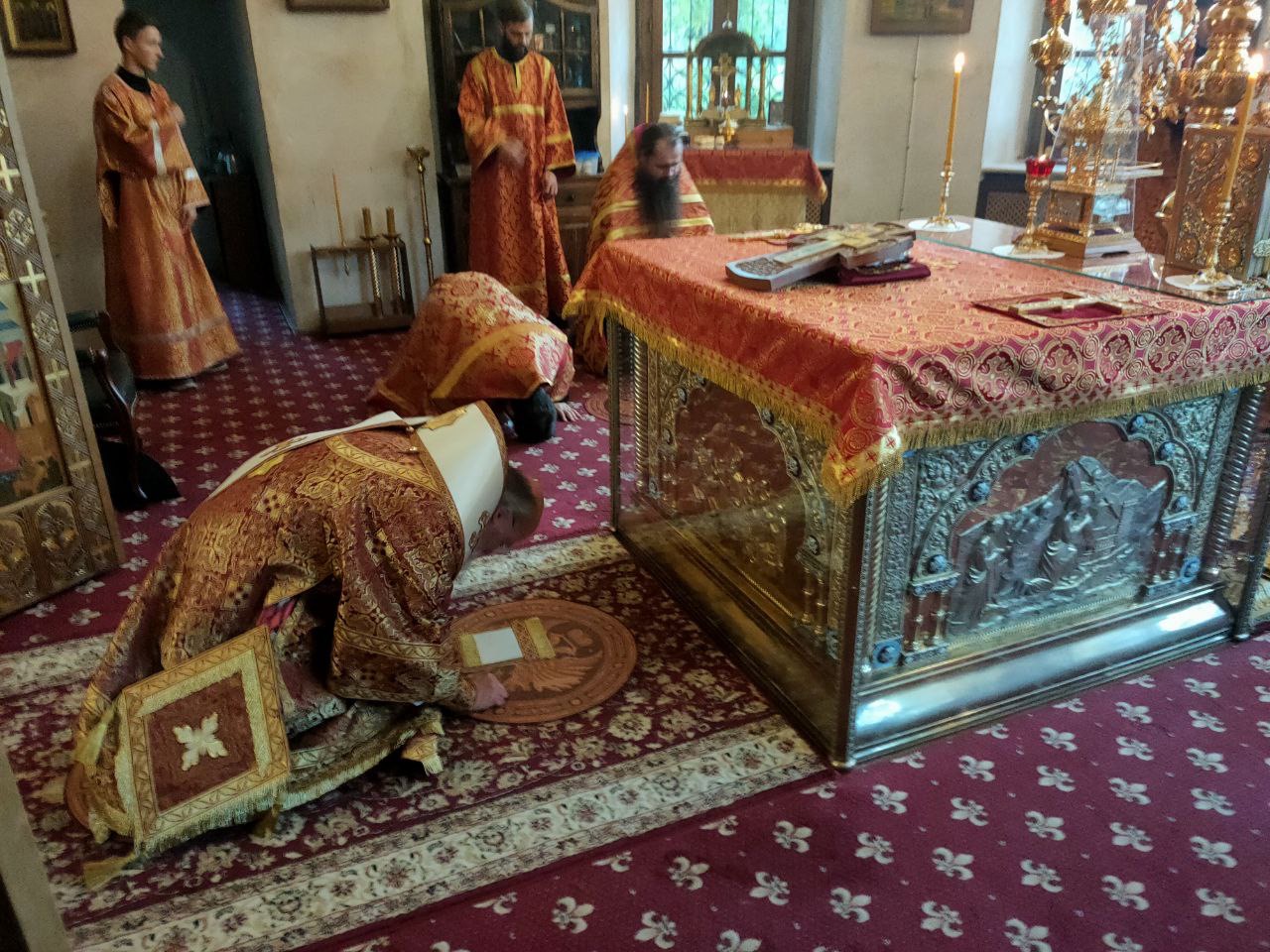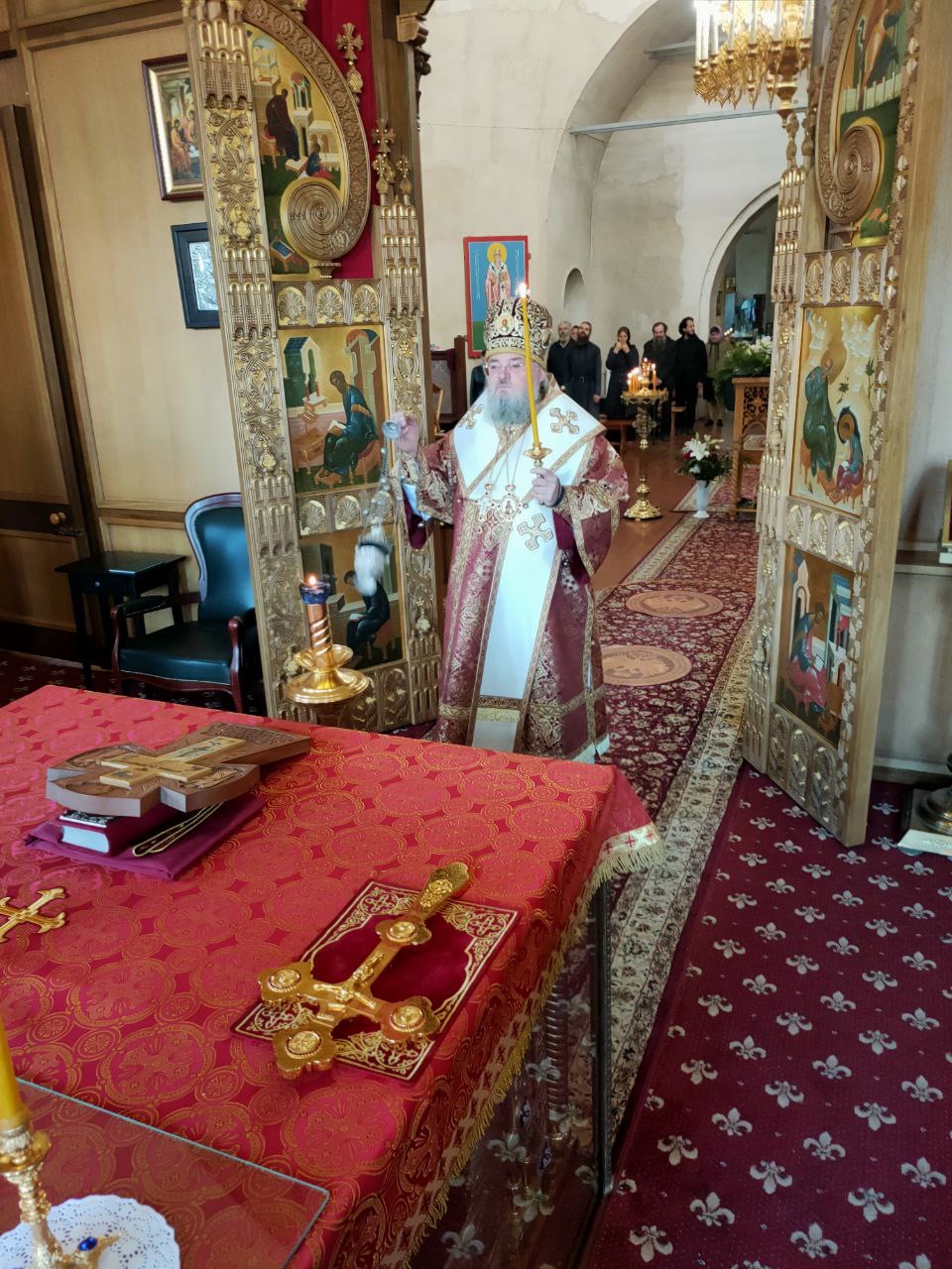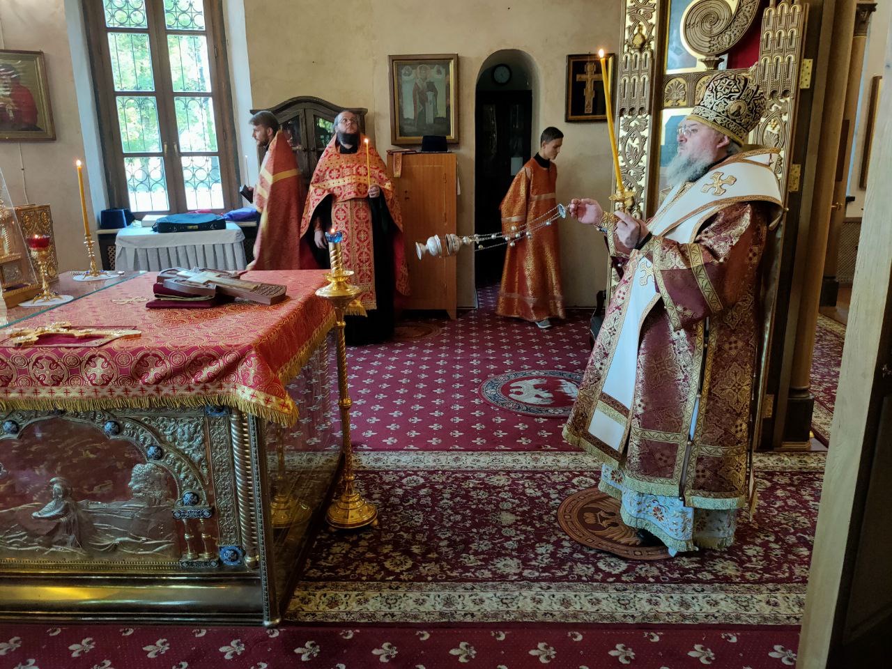 Архипастырю сослужили: протоиерей Антоний Хатунцев, иеромонах Паисий (Курмаз), иерей Елисей Тимофеев, иерей Евгений Чуркин, диакон Евгений Ковригин и иеродиакон Виталий (Павленко).