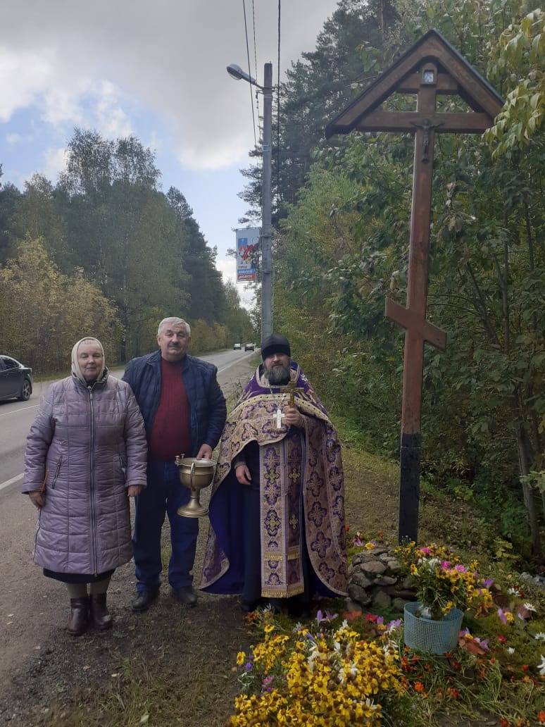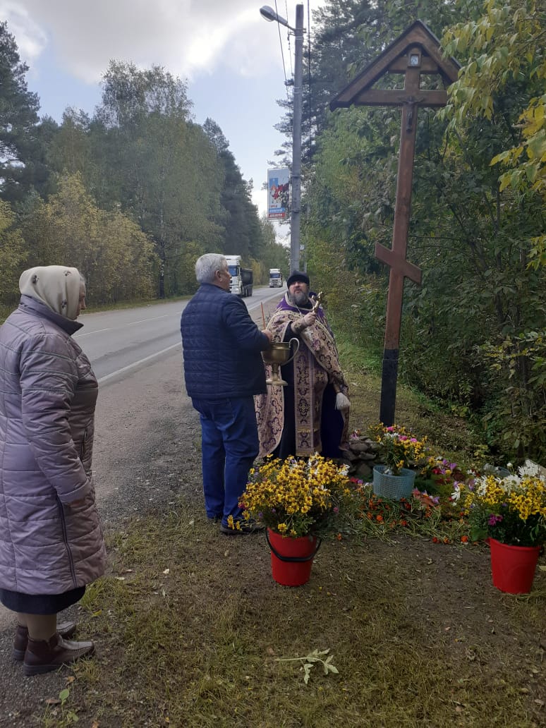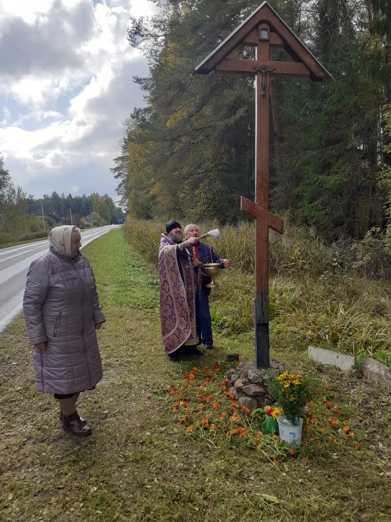 По благочестивой ежегодной традиции, после богослужения, священник с певчими посетил поклонные кресты: у стен храма, на въездах в город со стороны Кирова и Дятьково, на станции Людиново – 2.