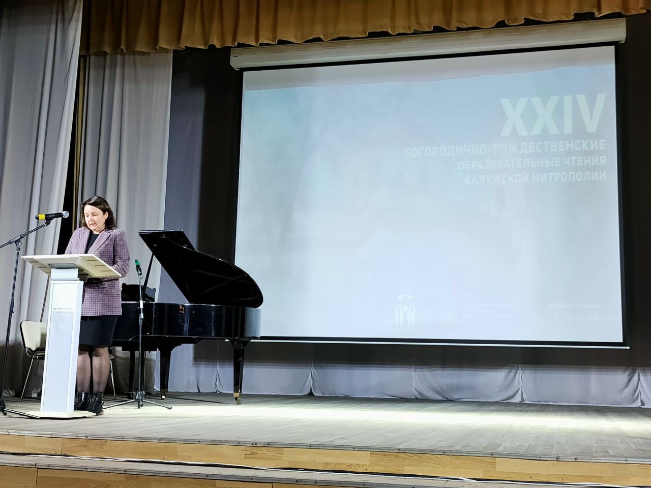 Приветственное слово министра культуры Калужской области Павла Александровича Суслова огласила заместитель министра культуры Калужской области Анастасия Викторовна Абрамова.