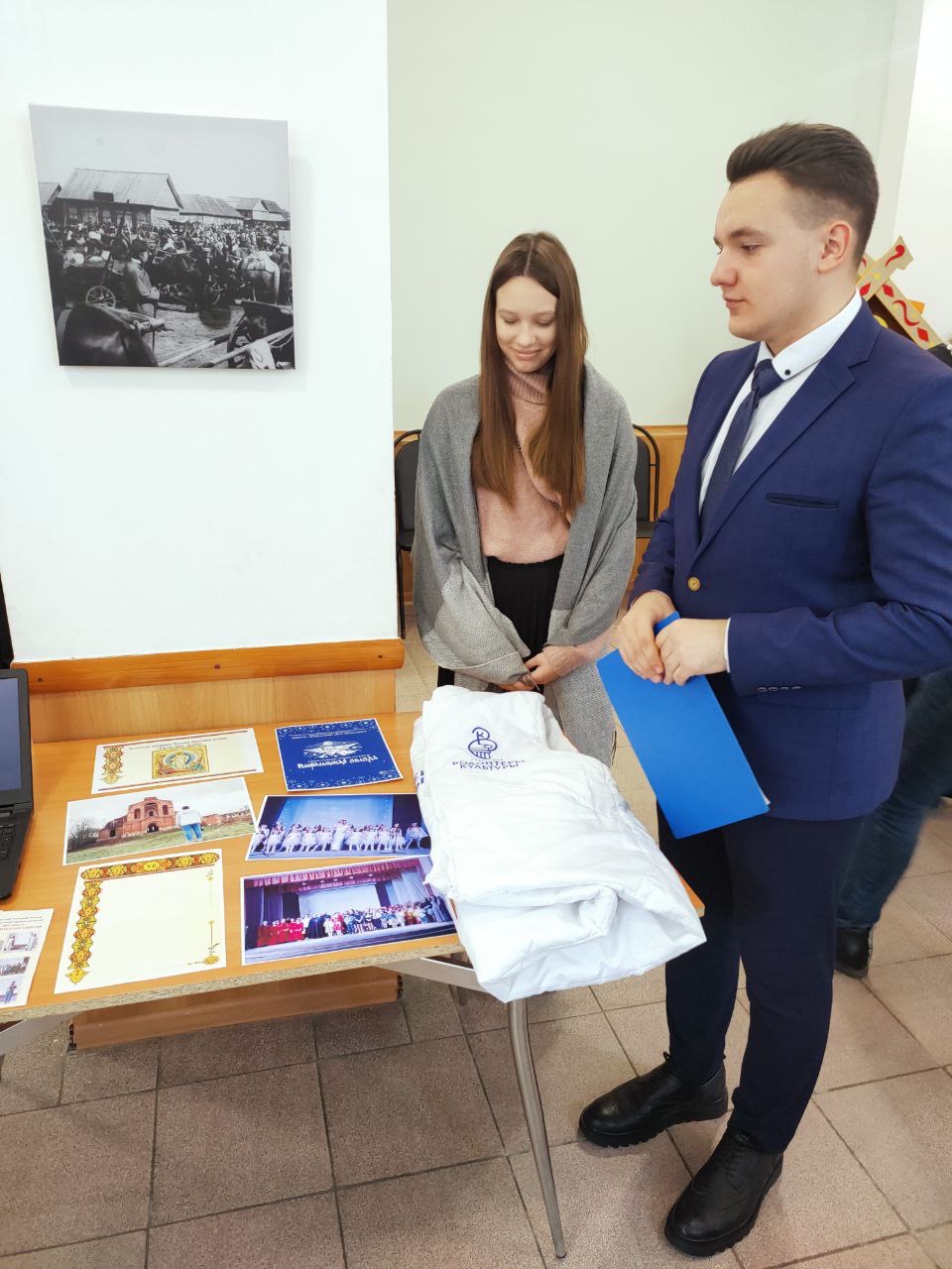 Перед началом конференции её участники ознакомились с выставкой рисунков «И памяти твоей великий Петр» в фойе МКУК «Районный Дом культуры», а также с циклом стендовых докладов, представляющих многолетний опыт приобщения подрастающего поколения к православной культуре в системе образования муниципальных районов на территории Козельской епархии: