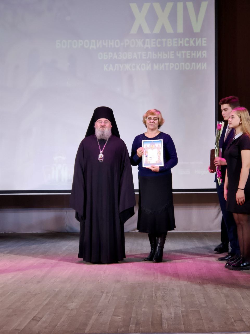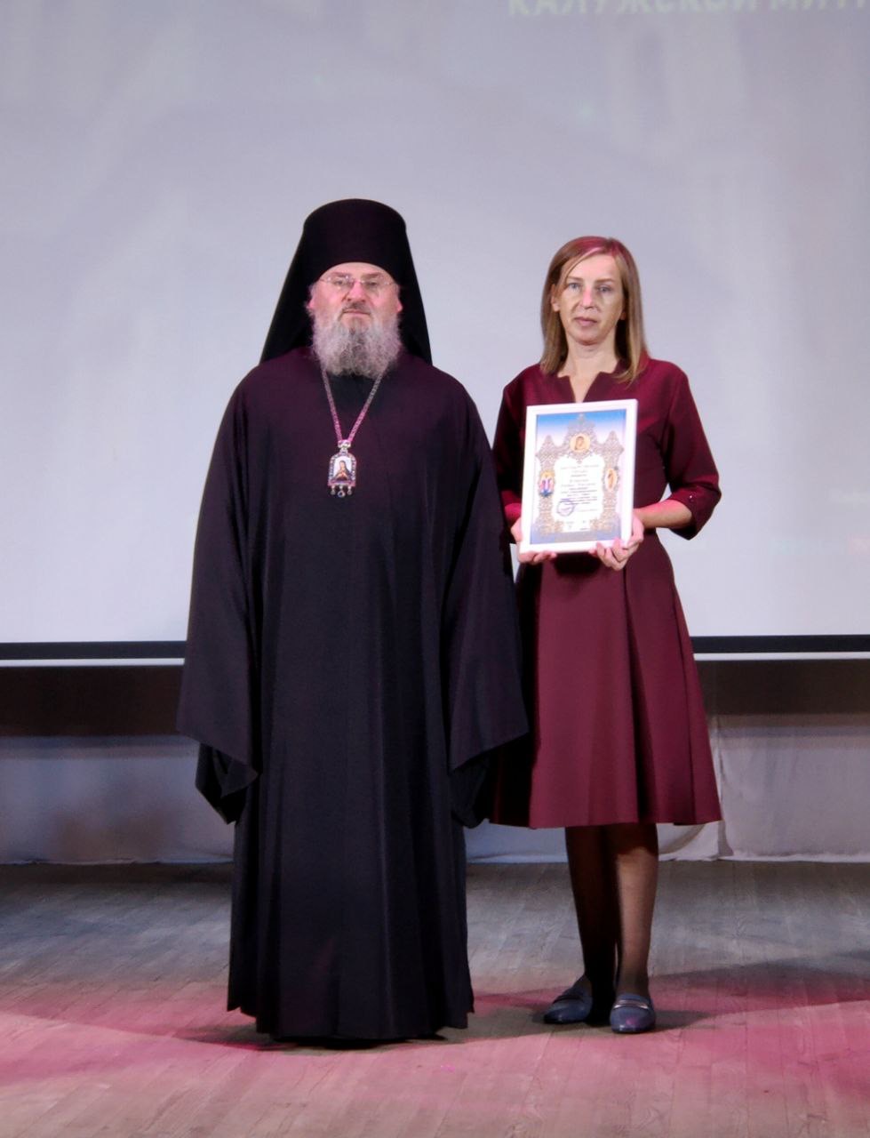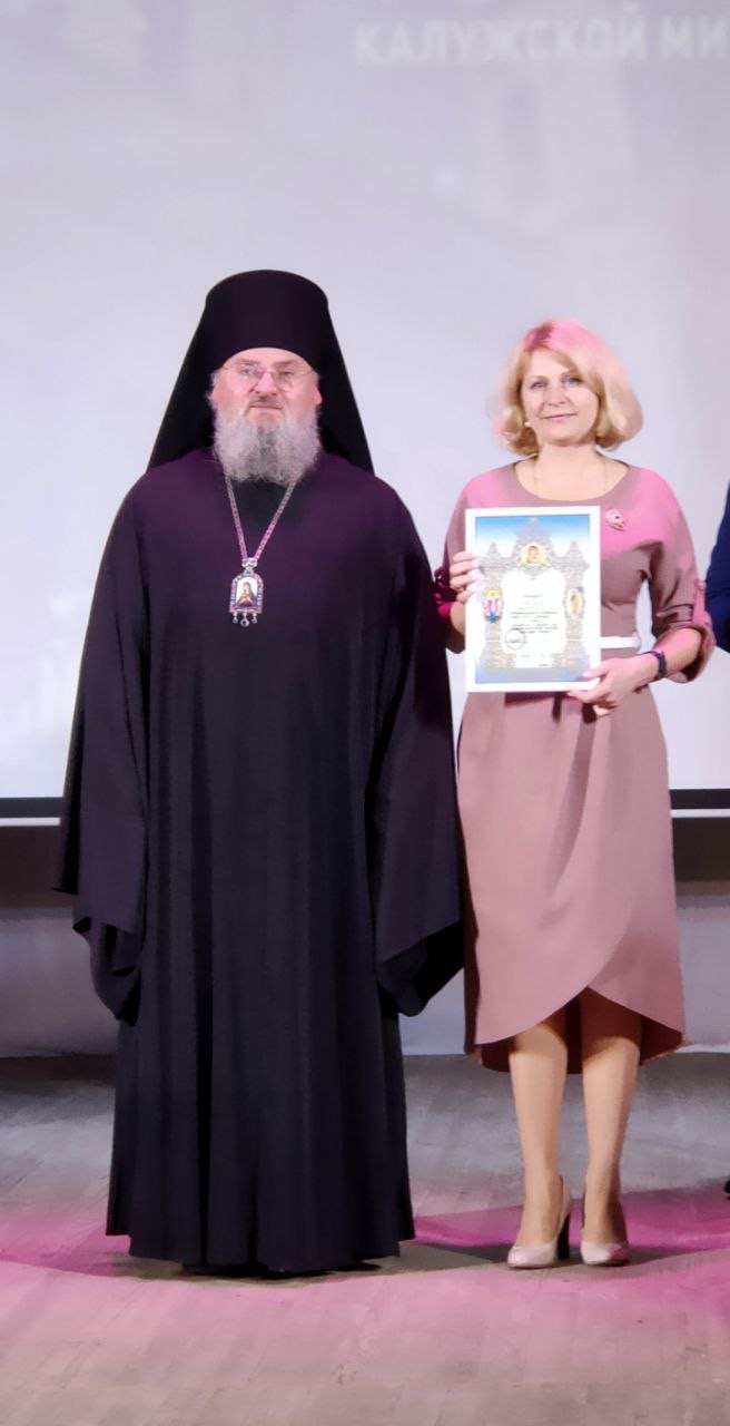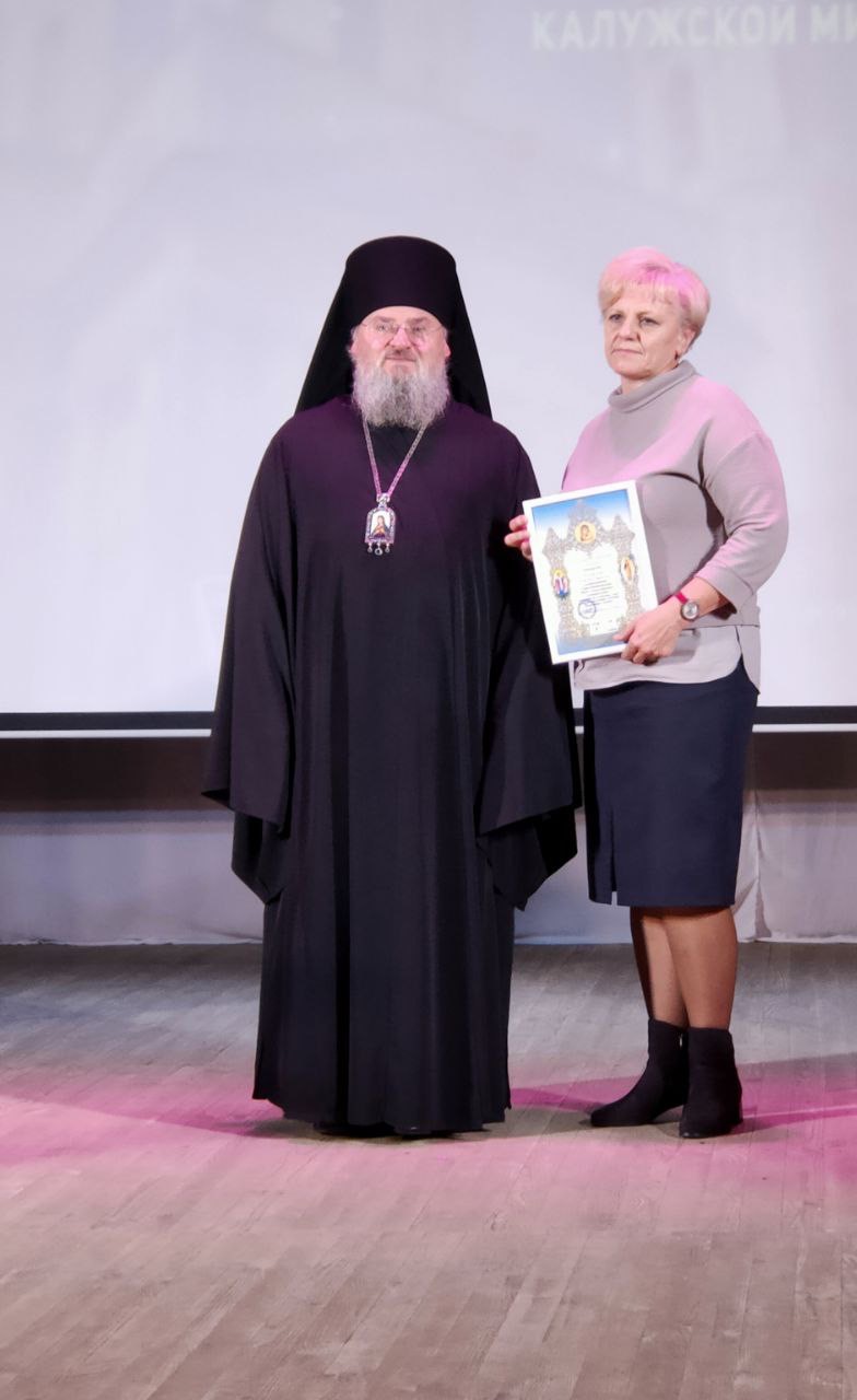 В завершение конференции прошла торжественная церемония вручения благодарственных писем педагогам за духовно-нравственное воспитание подрастающего поколения, награды вручил Преосвященнейший Никита, епископ Козельский и Людиновский.