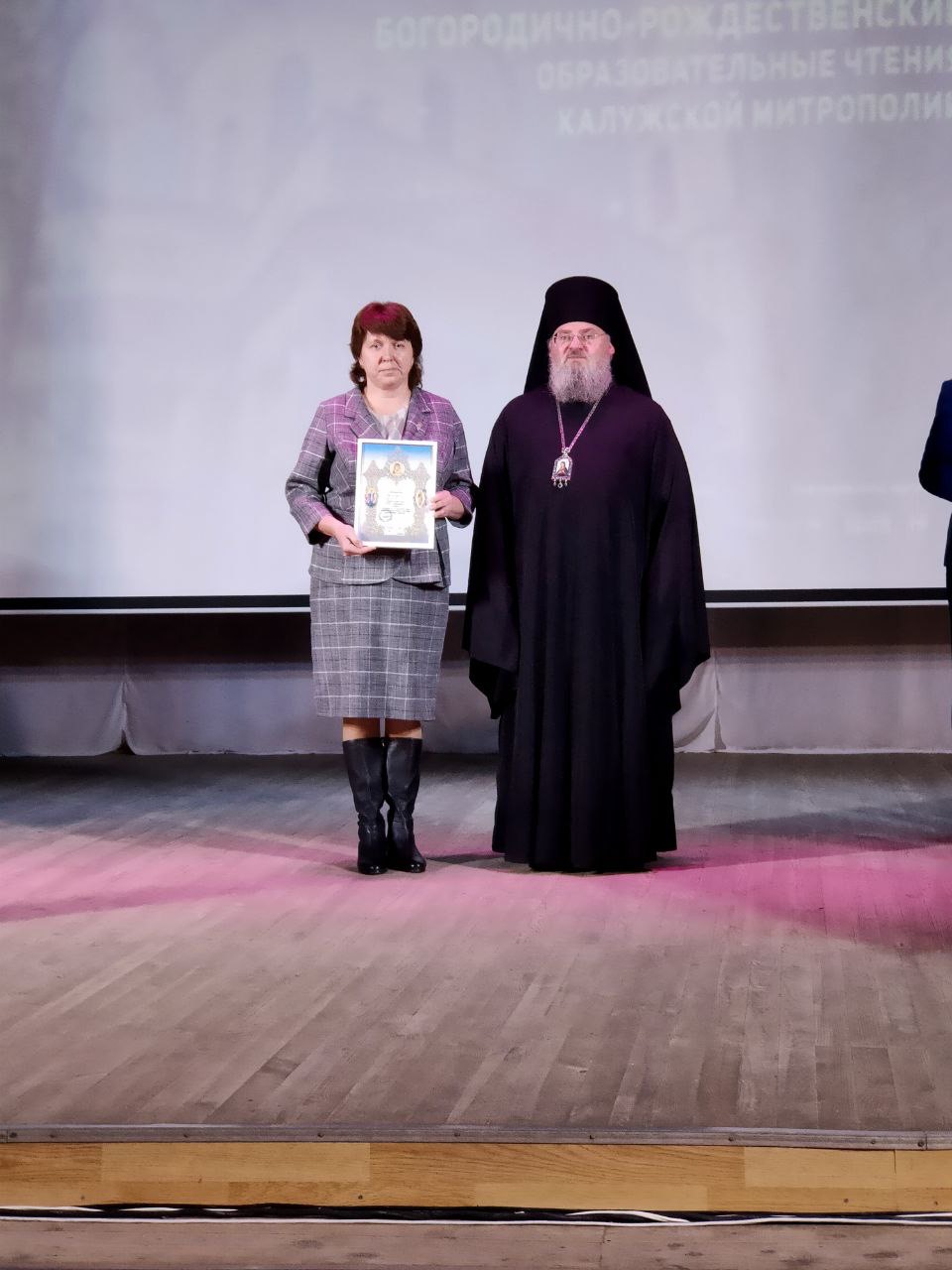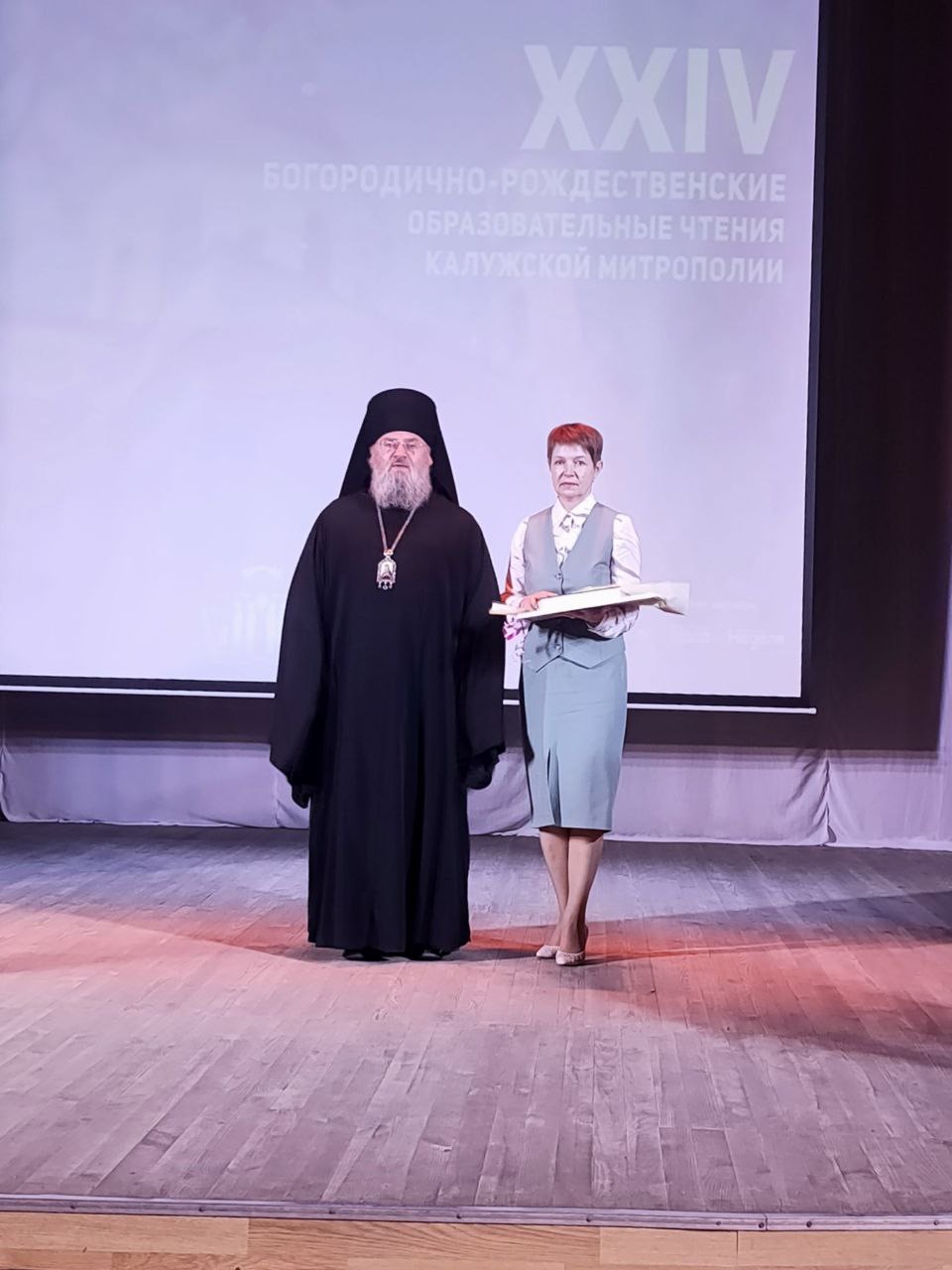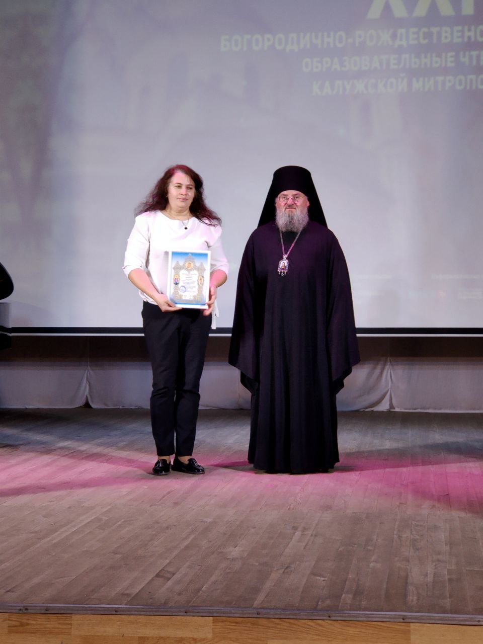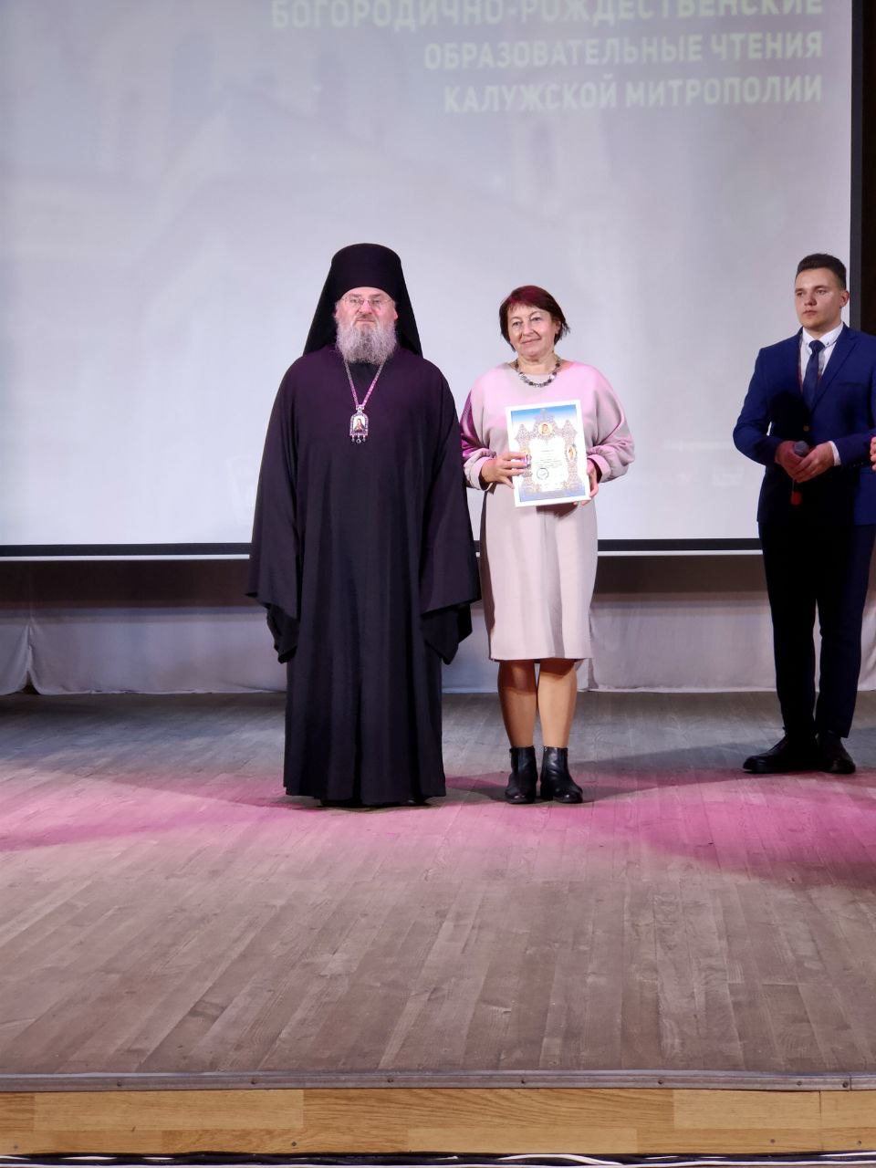 В завершение конференции прошла торжественная церемония вручения благодарственных писем педагогам за духовно-нравственное воспитание подрастающего поколения, награды вручил Преосвященнейший Никита, епископ Козельский и Людиновский.