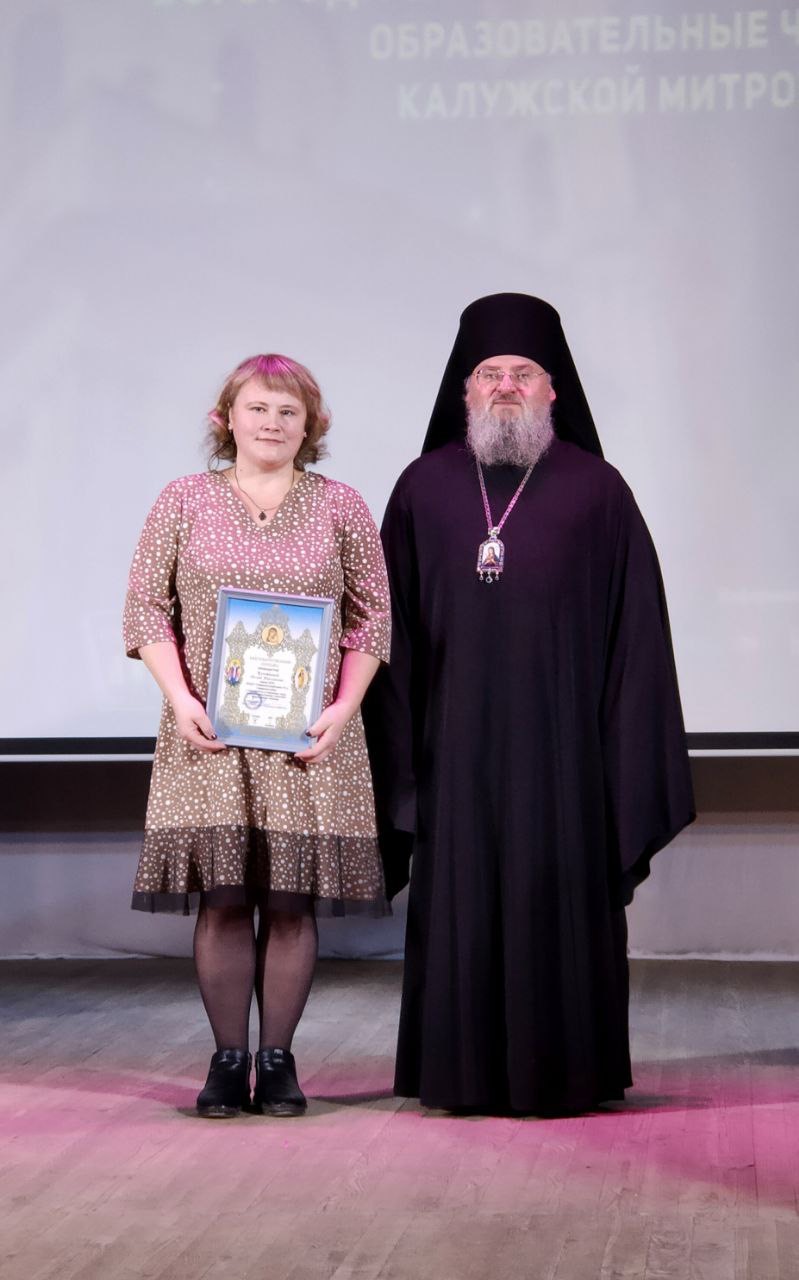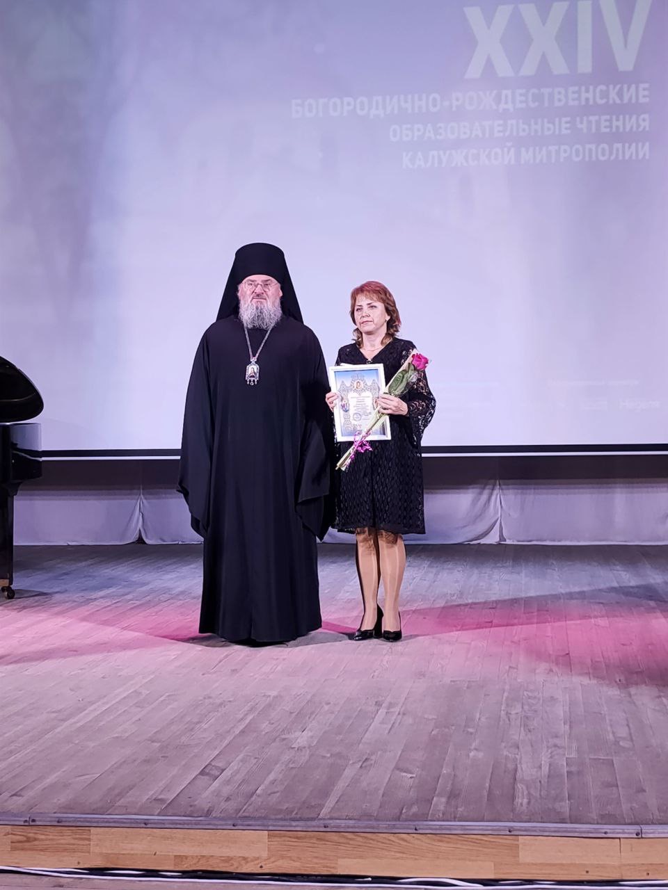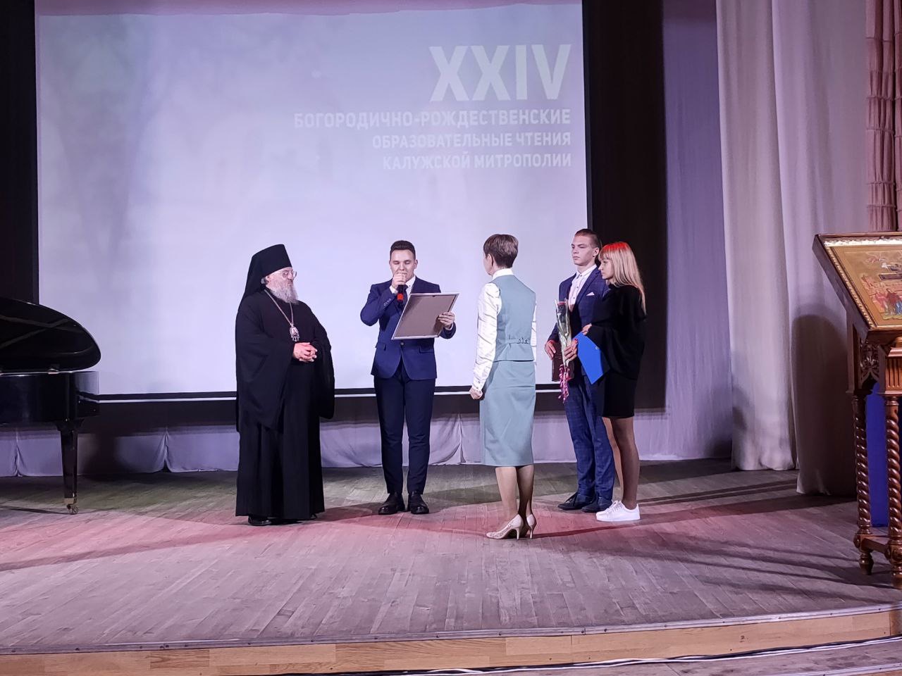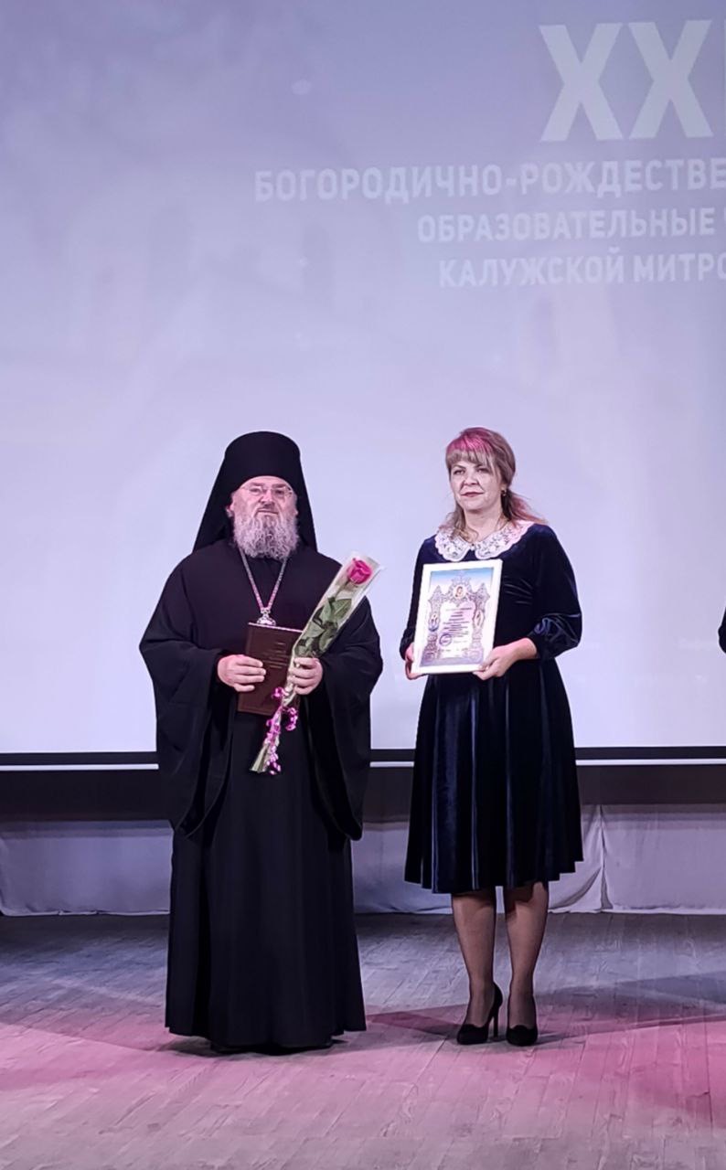 В завершение конференции прошла торжественная церемония вручения благодарственных писем педагогам за духовно-нравственное воспитание подрастающего поколения, награды вручил Преосвященнейший Никита, епископ Козельский и Людиновский.