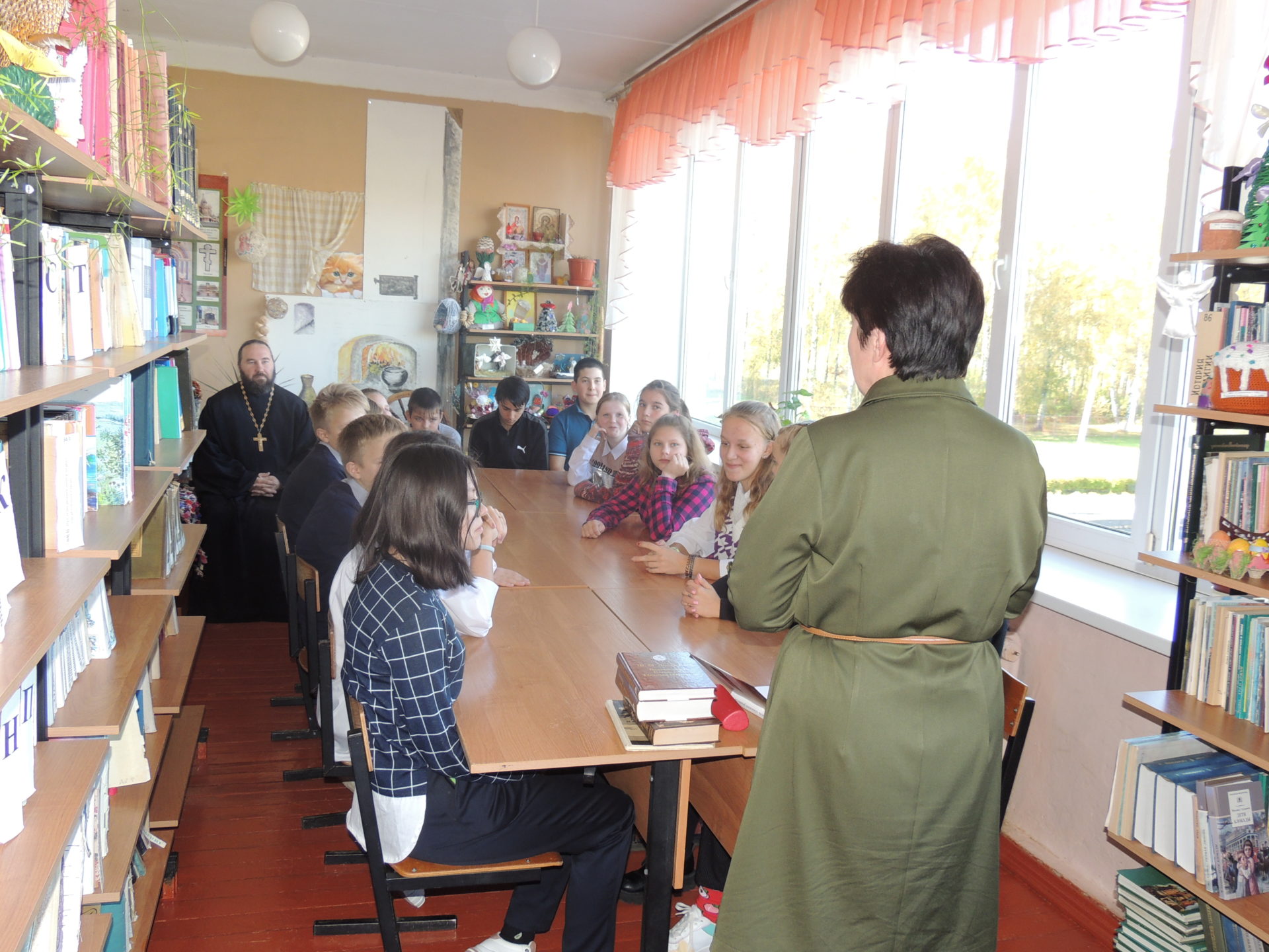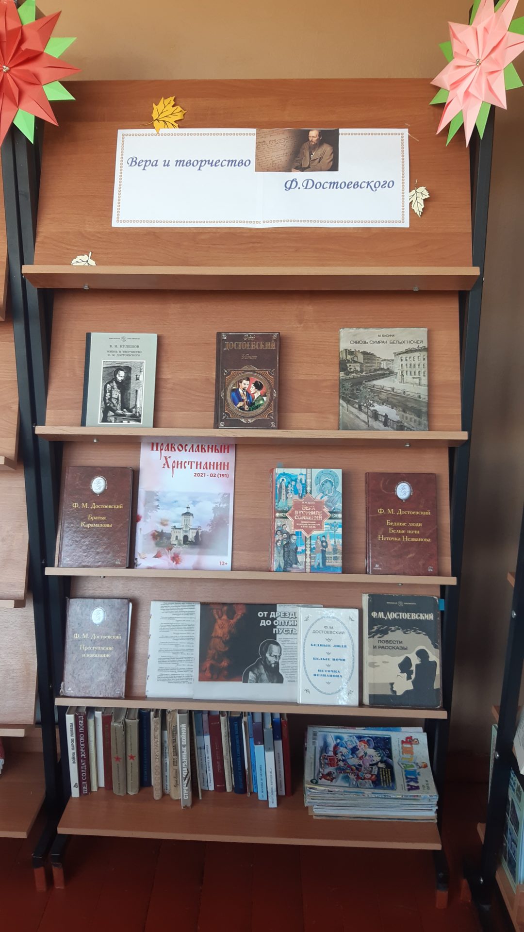 В Ульяновской средней школе, в рамках XXIV Богородично-Рождественских образовательных чтений Калужской митрополии по теме: «Вера и творчество. 200 лет со дня рождения Ф. М. Достоевского», проведены книжная выставка и классный час. Людмила Анатольевна Мурашова учитель литературы рассказала ученикам 5 и 7 классов о творчестве Федора Михайловича. Ребятам очень понравились, они живо реагировали и участвовали в обсуждении, отвечая на вопросы учителя. По программе обучения творчество Ф. М. Достоевского проходят только в 10 классе. Людмила Анатольевна рассказала о нелегком жизненном пути Фёдора Михайловича о его вере в Бога и творчестве. На уроке присутствовали протоиерей Максим Садовников, иерей Алексей Сорокин и учитель ОПК и библиотекарь Ульяновской школы Валентина Ивановна Башилова. Классный час проходил в помещении школьной библиотеки.