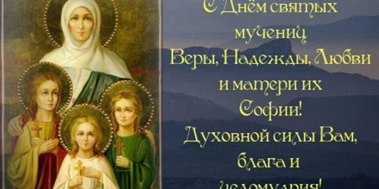 «Вера, Надежда, Любовь и матерь их София – раннехристианские мученицы, жившие во 2 веке нашей эры в Римской империи. Известно, что София была родом из Милана. Она рано овдовела, после чего перебралась в Рим. Своих дочерей София воспитывала в христианской вере и даже дала им имена в честь главных христианских добродетелей – Вера, Надежда и Любовь.