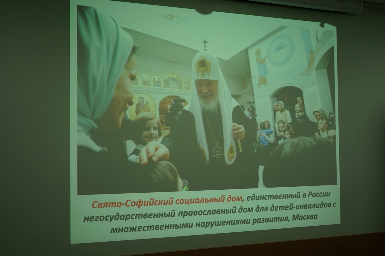 — «Примеры взаимодействия государственных, церковных и общественных организаций в создании доступной среды для маломобильных групп населения в епархиях» — Леонтьева Вероника Викторовна, руководитель направления помощи людям с инвалидностью Синодального отдела по социальному служению РПЦ.