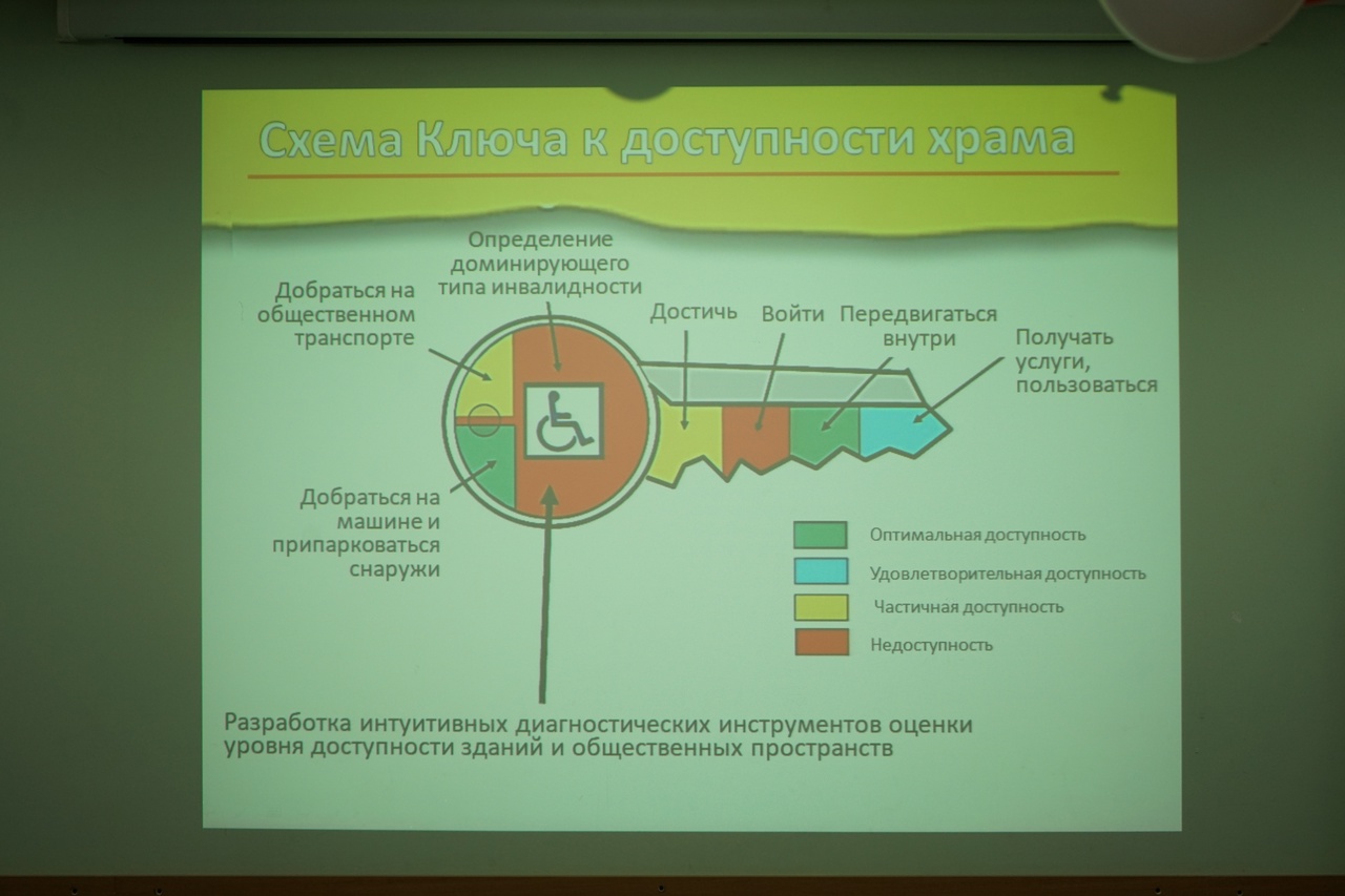 — «Обзор и примеры оборудования и материалов для создания безбарьерной среды в храмах и на прихрамовой территории» — Чистый Сергей Владимирович, председатель фонда «Город для всех», Член межведомственной рабочей группы по подготовке предложений по совершенствованию законодательства, новых подходов и практических решений по созданию безбарьерной городской среды Минстроя РФ, Член рабочей группы «Barrier- freecityforall» международного объединения «Еврогорода» Евросоюза;