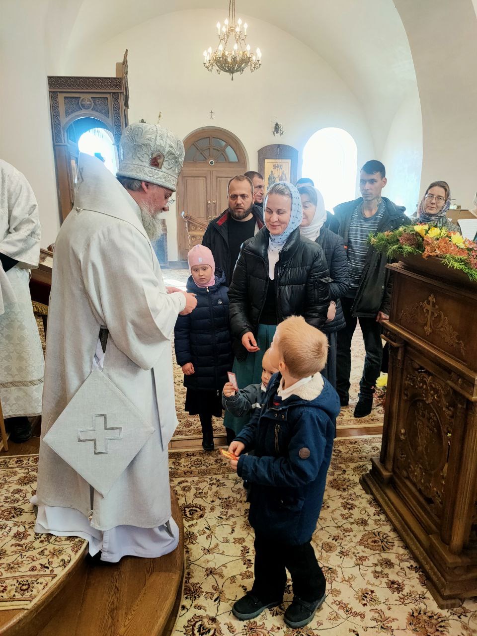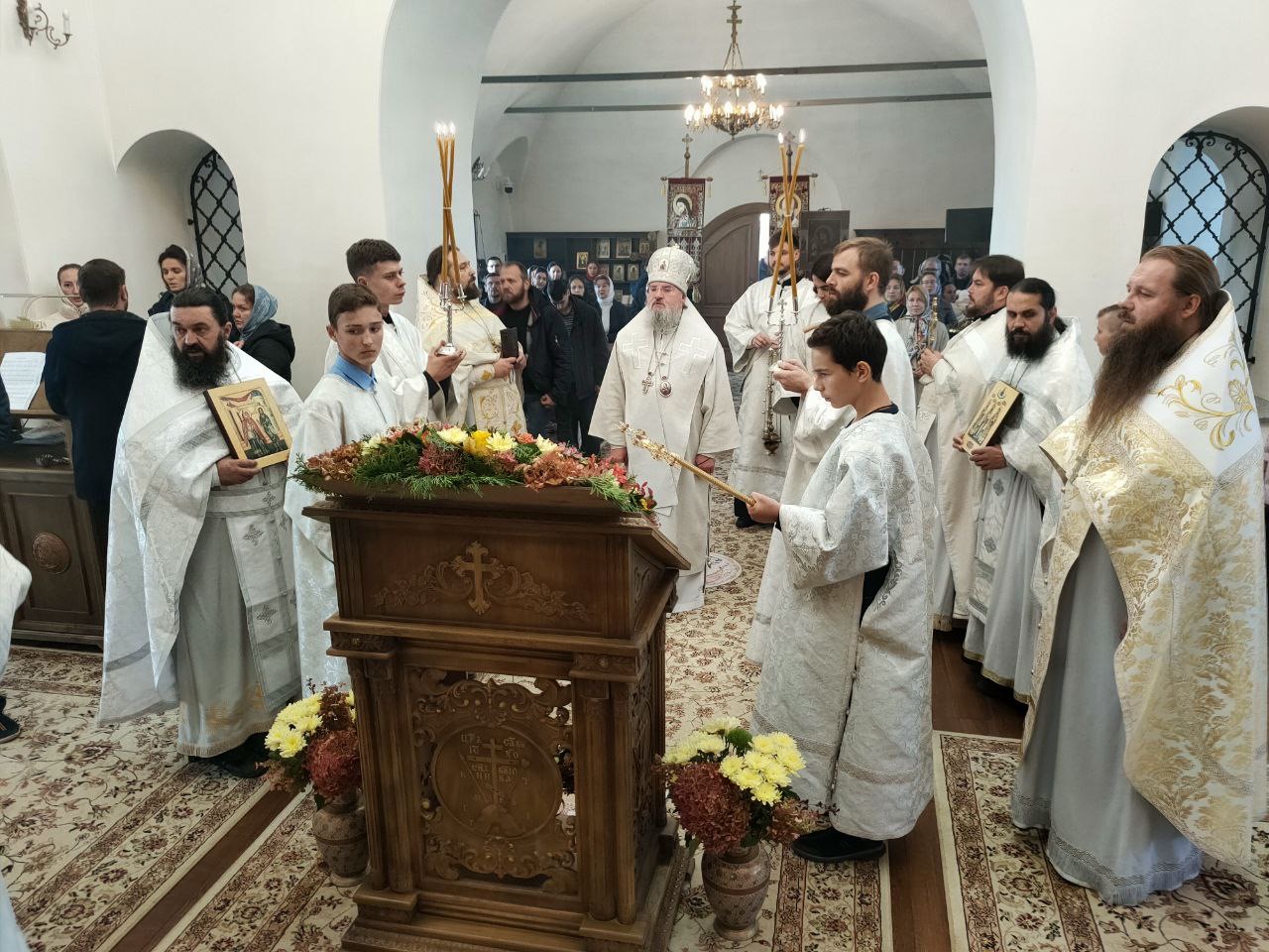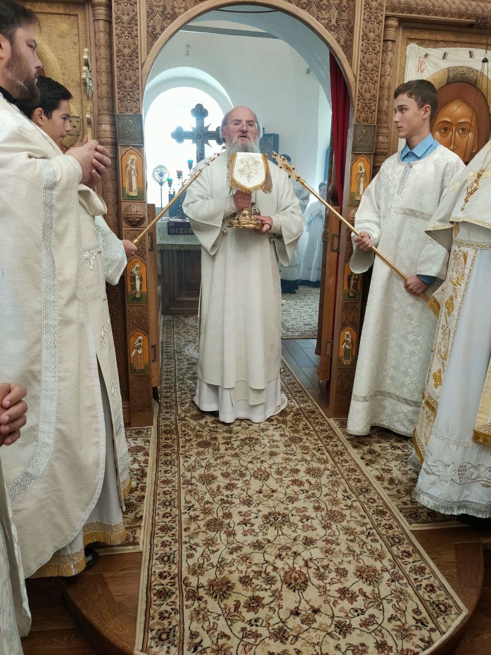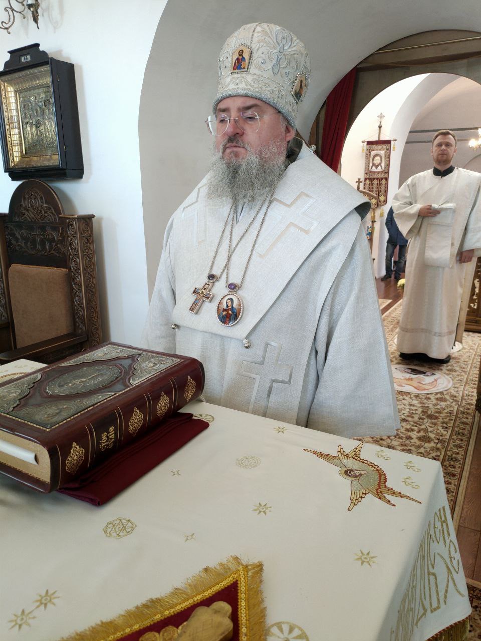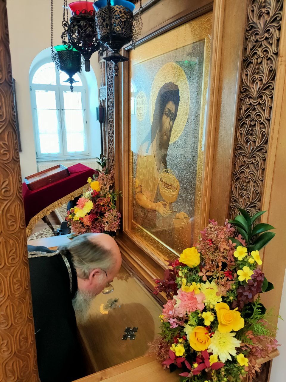 По отпусте литургии был совершен молебен и праздничный крестный ход вокруг храма, в завершение которого, вознеся молитву Честному Славному Пророку Предтече и Крестителю Господню Иоанну, владыка обратился к богомольцам с проповедью.