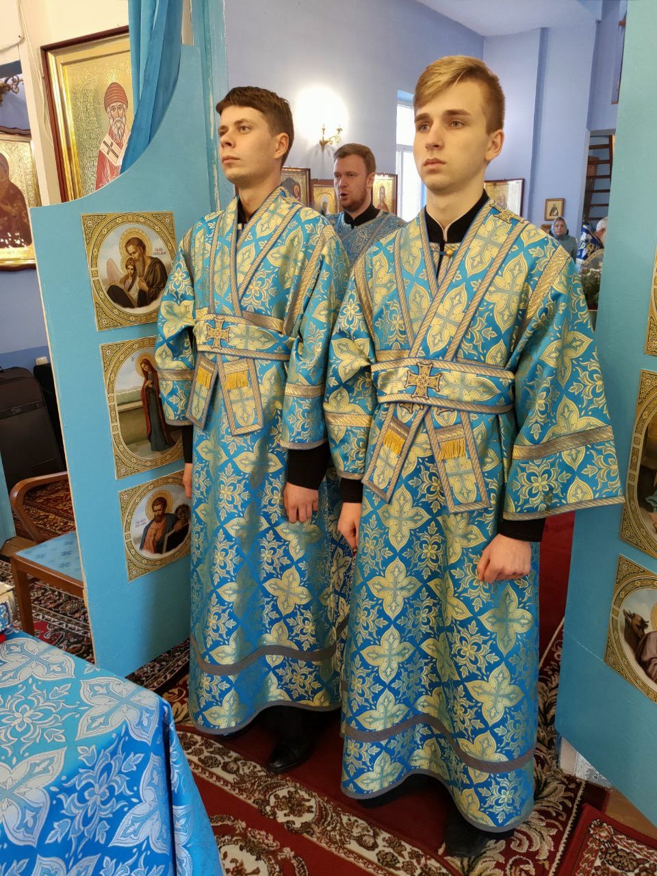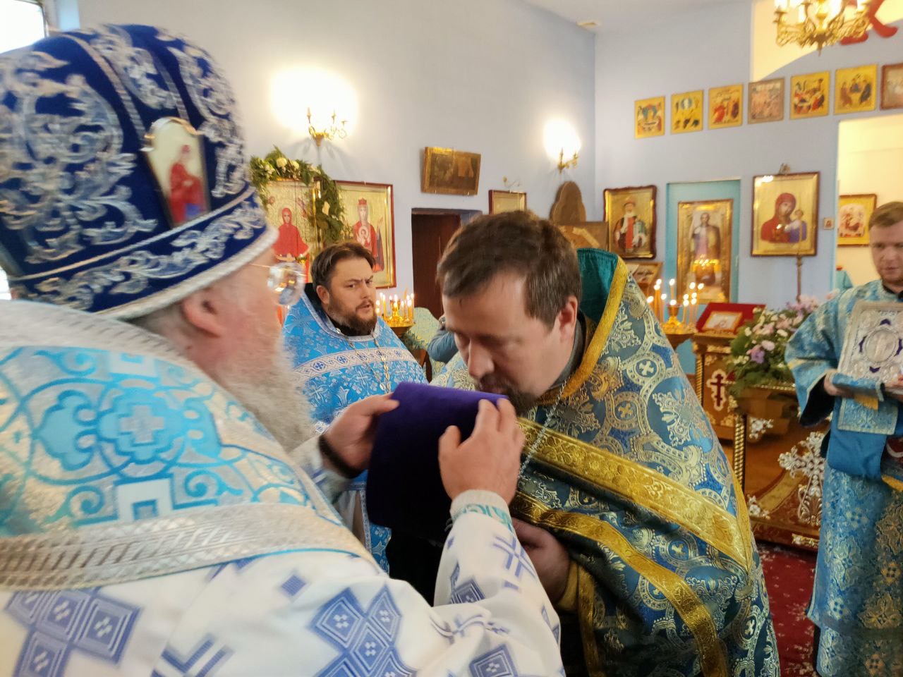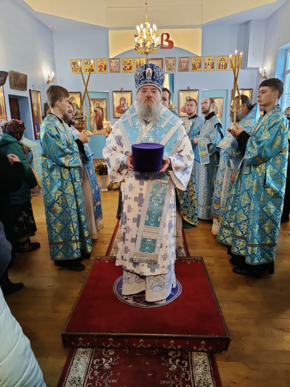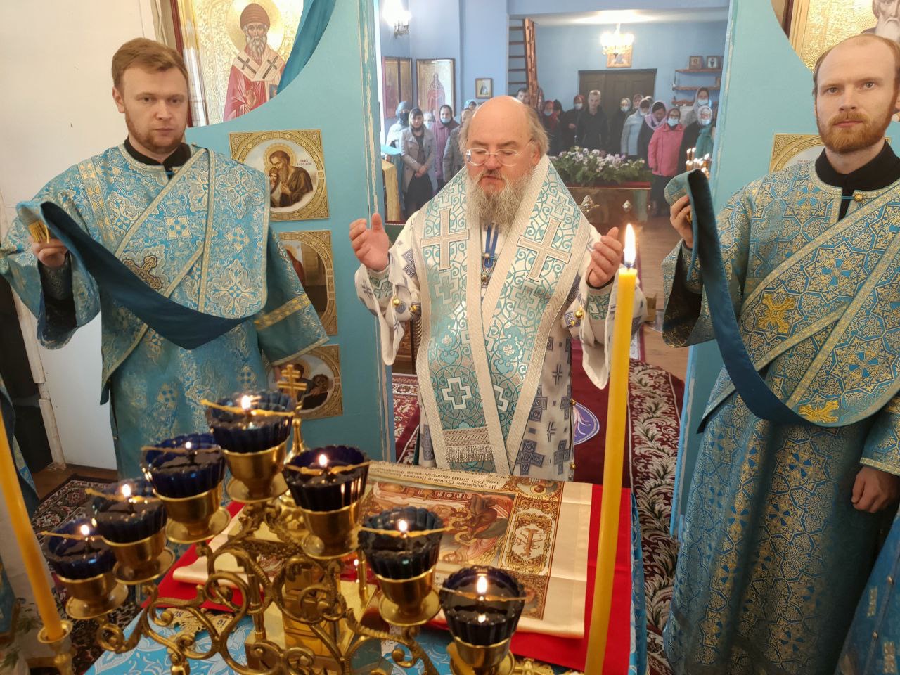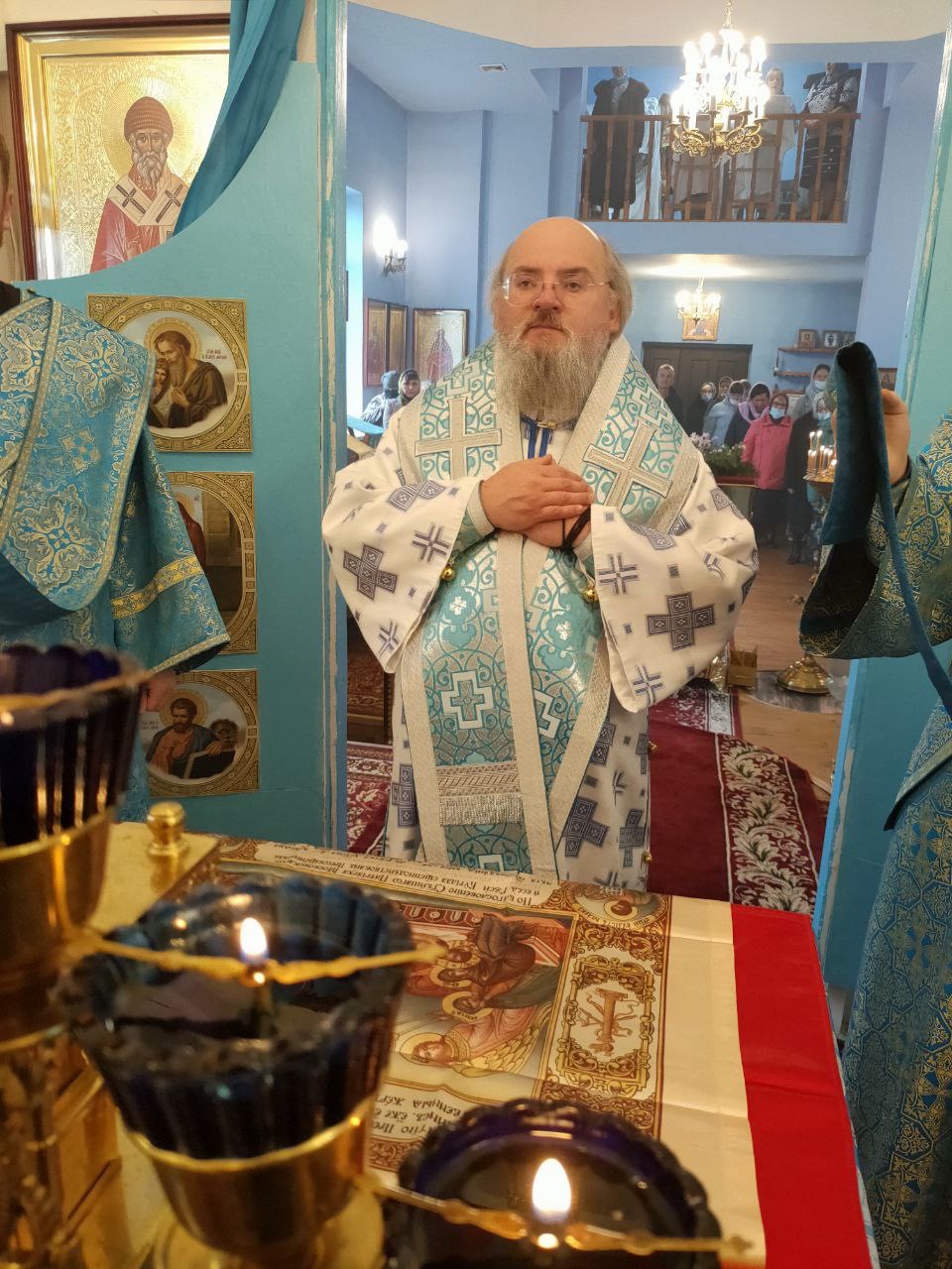 Преосвященному владыке сослужили: настоятель храма иерей Геннадий Сафиев, протоиерей Григорий Коновалов, протоиерей Антоний Хатунцев, иерей Павел Мещеряков, диакон Евгений Ковригин и иеродиакон Лука (Старостин).