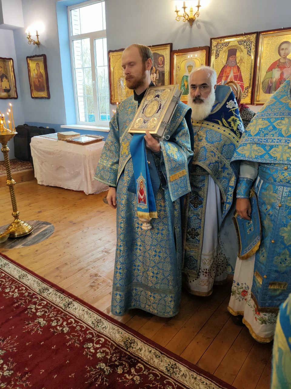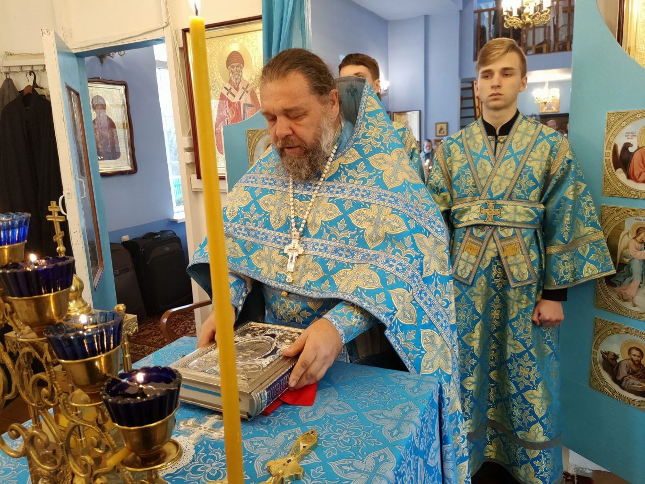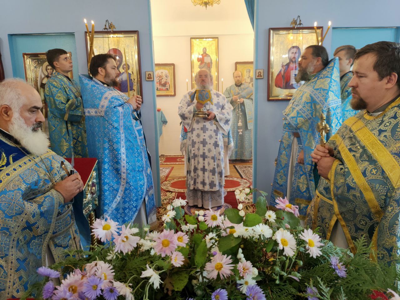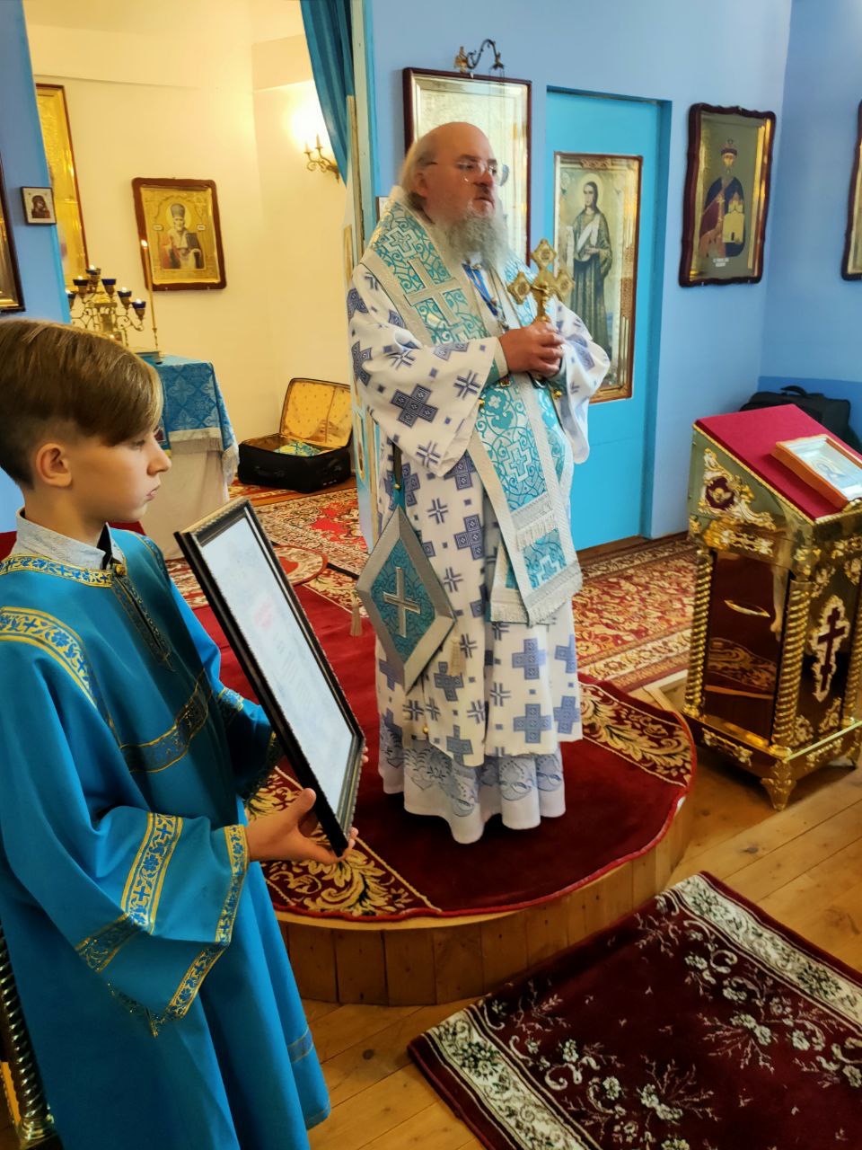 Преосвященному владыке сослужили: настоятель храма иерей Геннадий Сафиев, протоиерей Григорий Коновалов, протоиерей Антоний Хатунцев, иерей Павел Мещеряков, диакон Евгений Ковригин и иеродиакон Лука (Старостин).