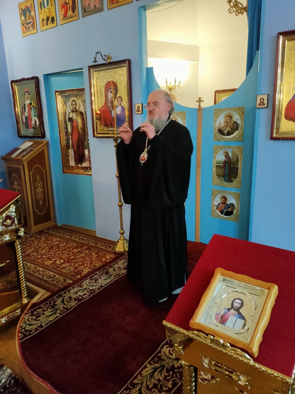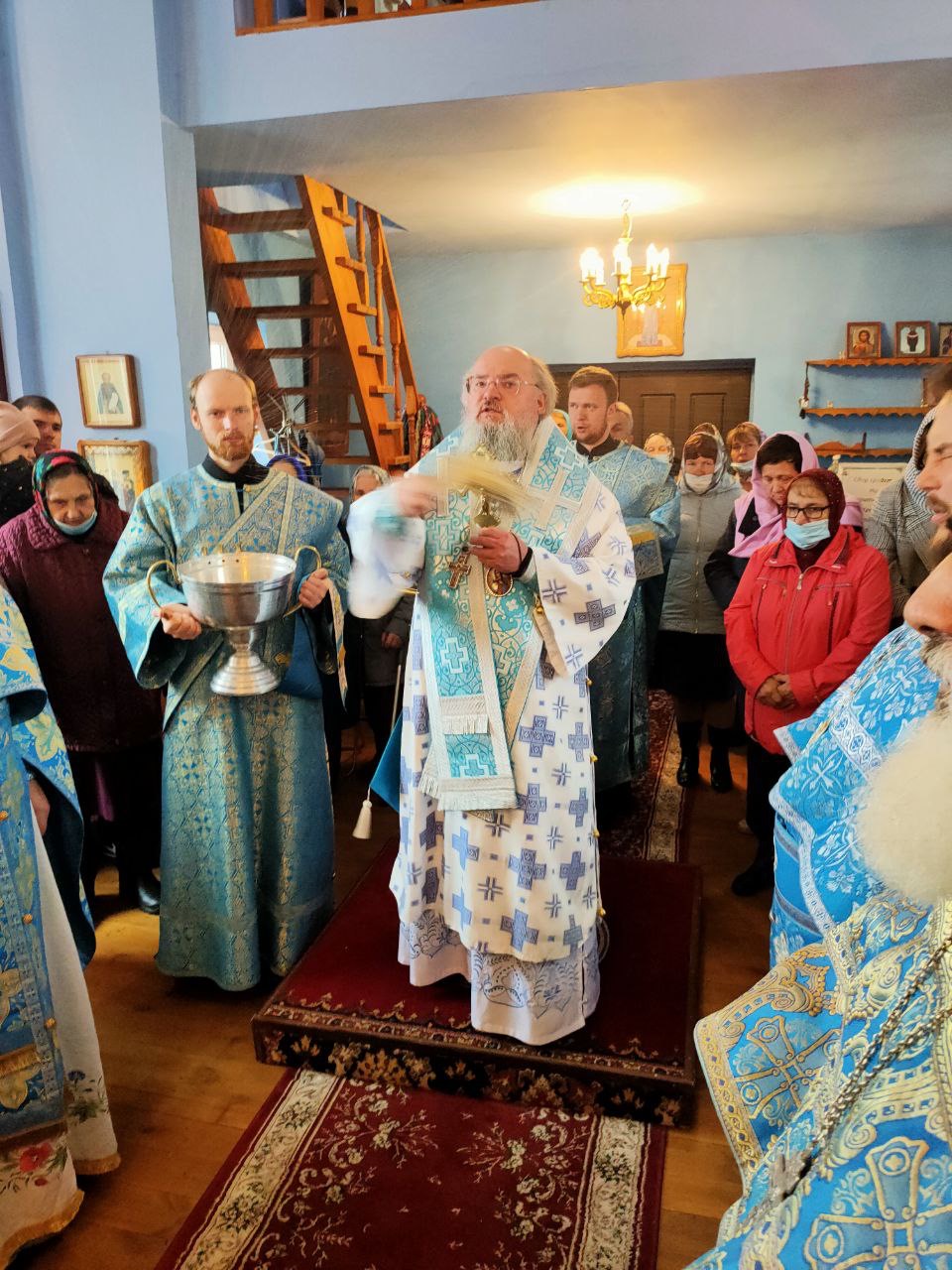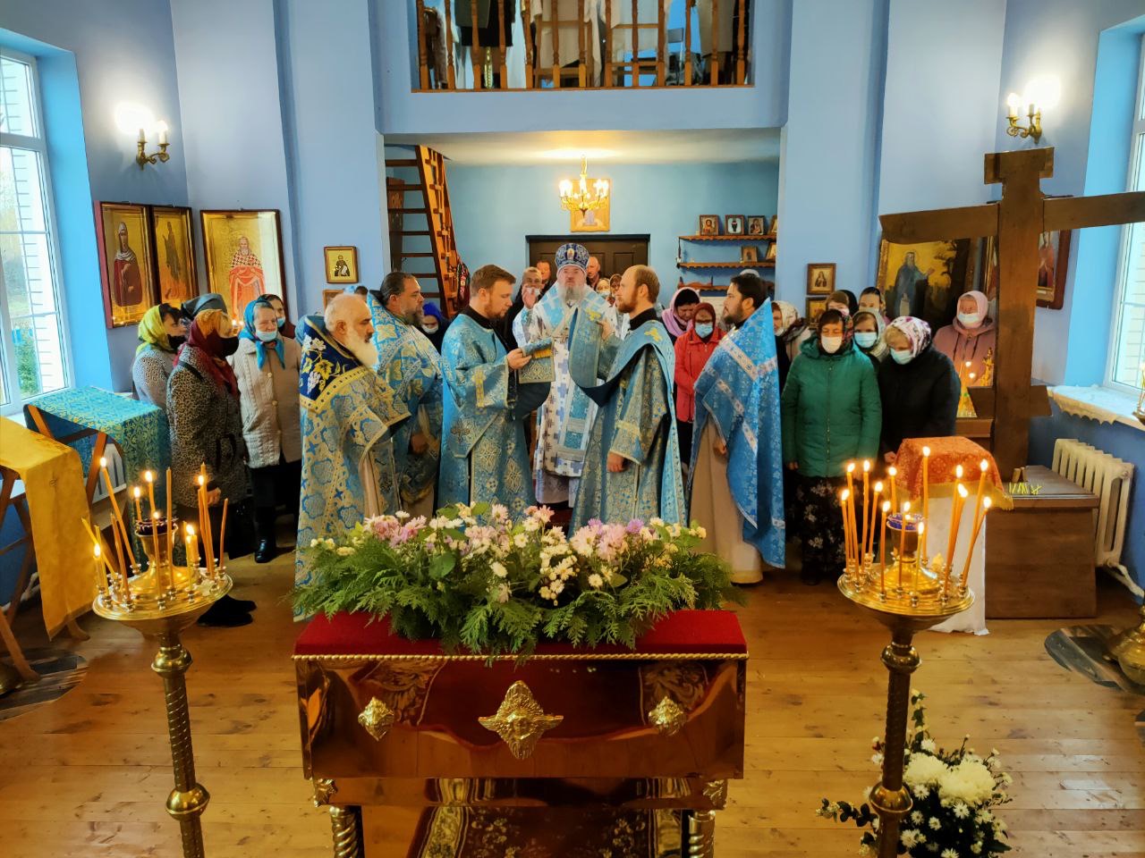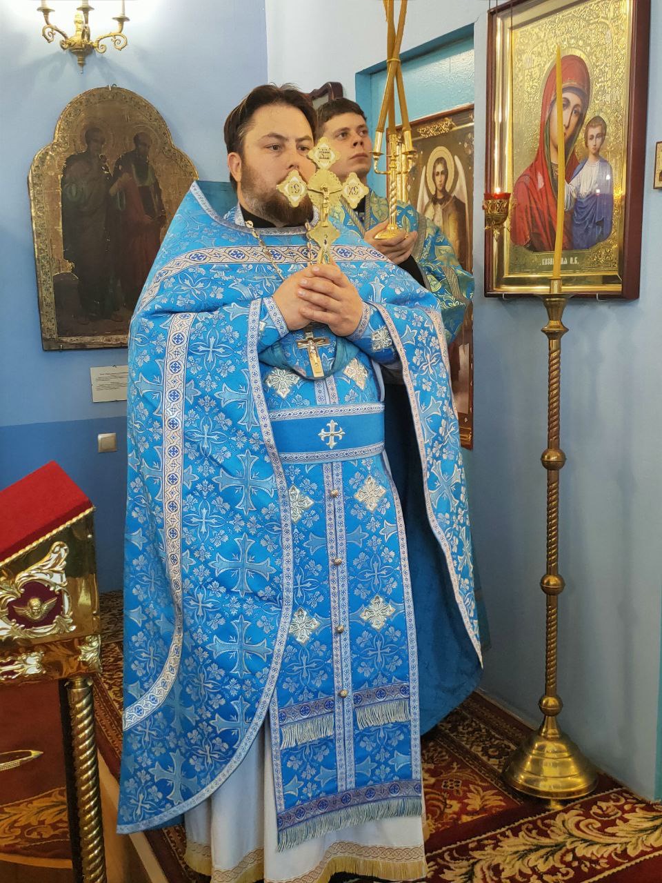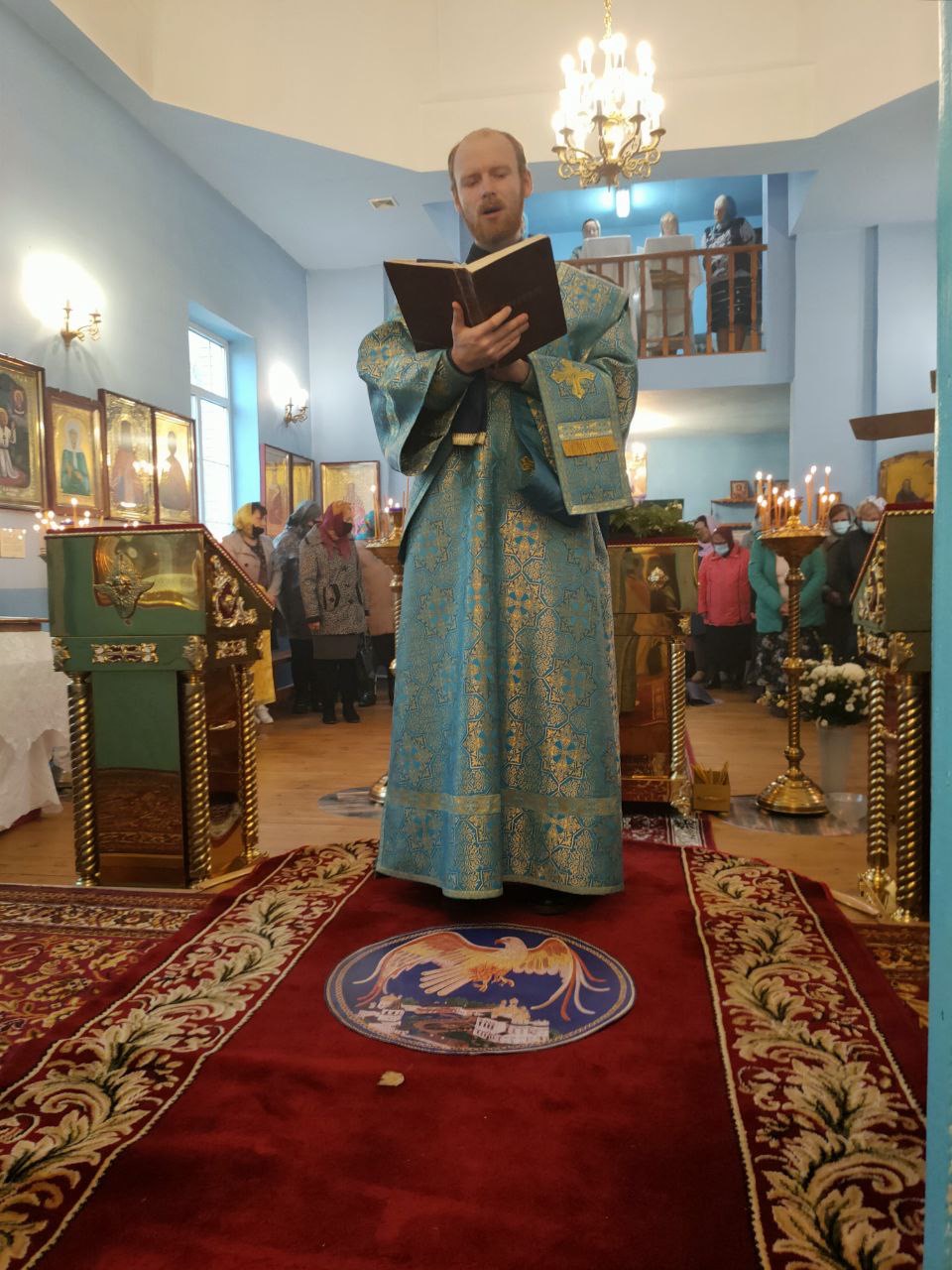 Преосвященному владыке сослужили: настоятель храма иерей Геннадий Сафиев, протоиерей Григорий Коновалов, протоиерей Антоний Хатунцев, иерей Павел Мещеряков, диакон Евгений Ковригин и иеродиакон Лука (Старостин).
