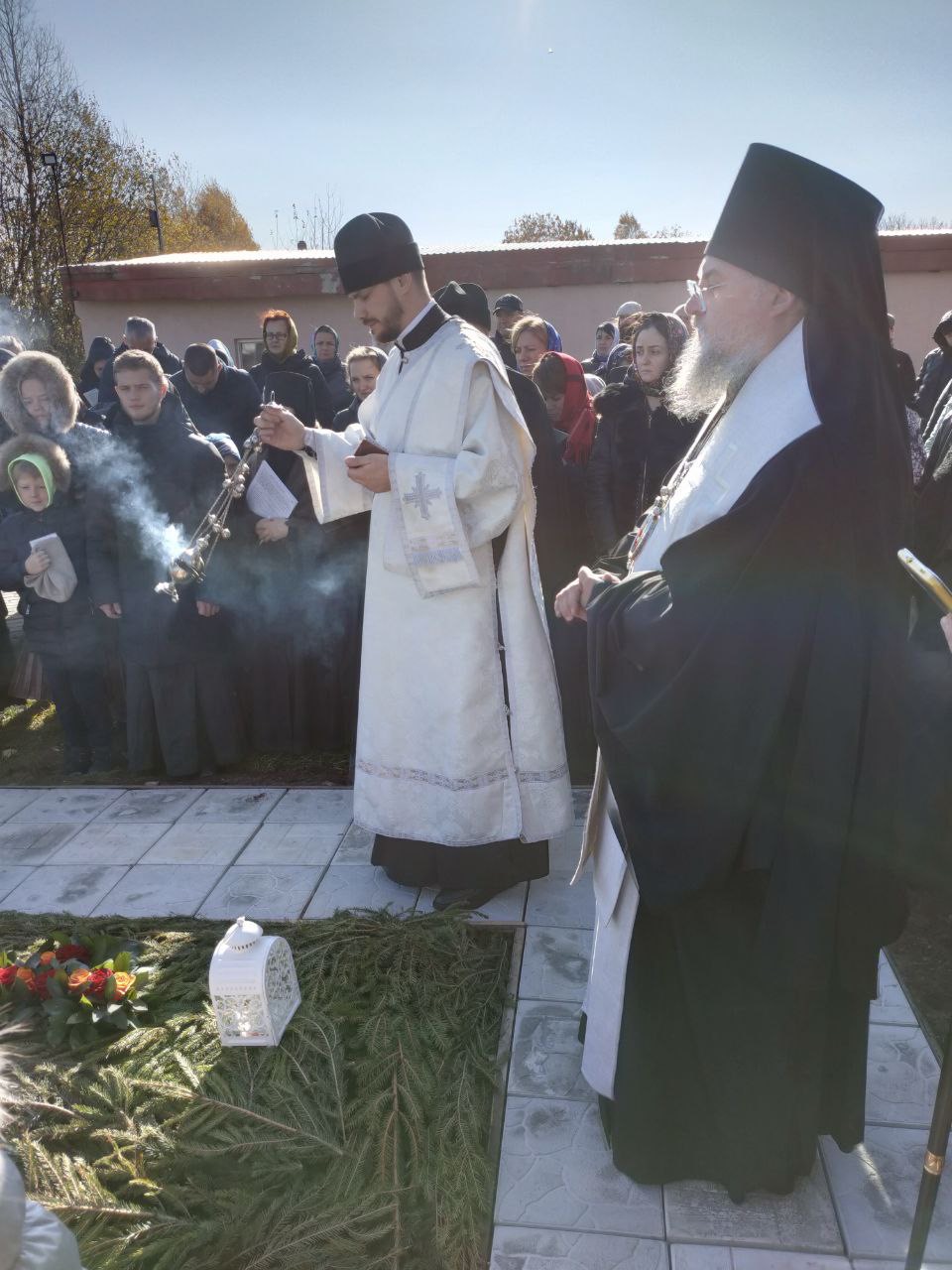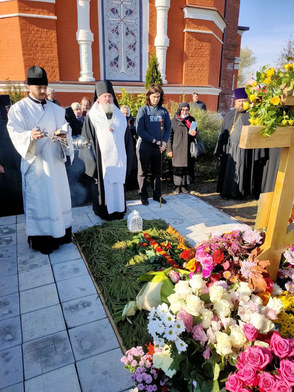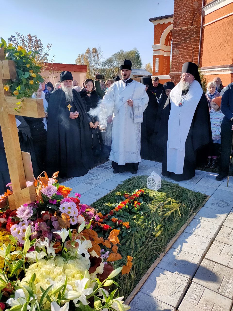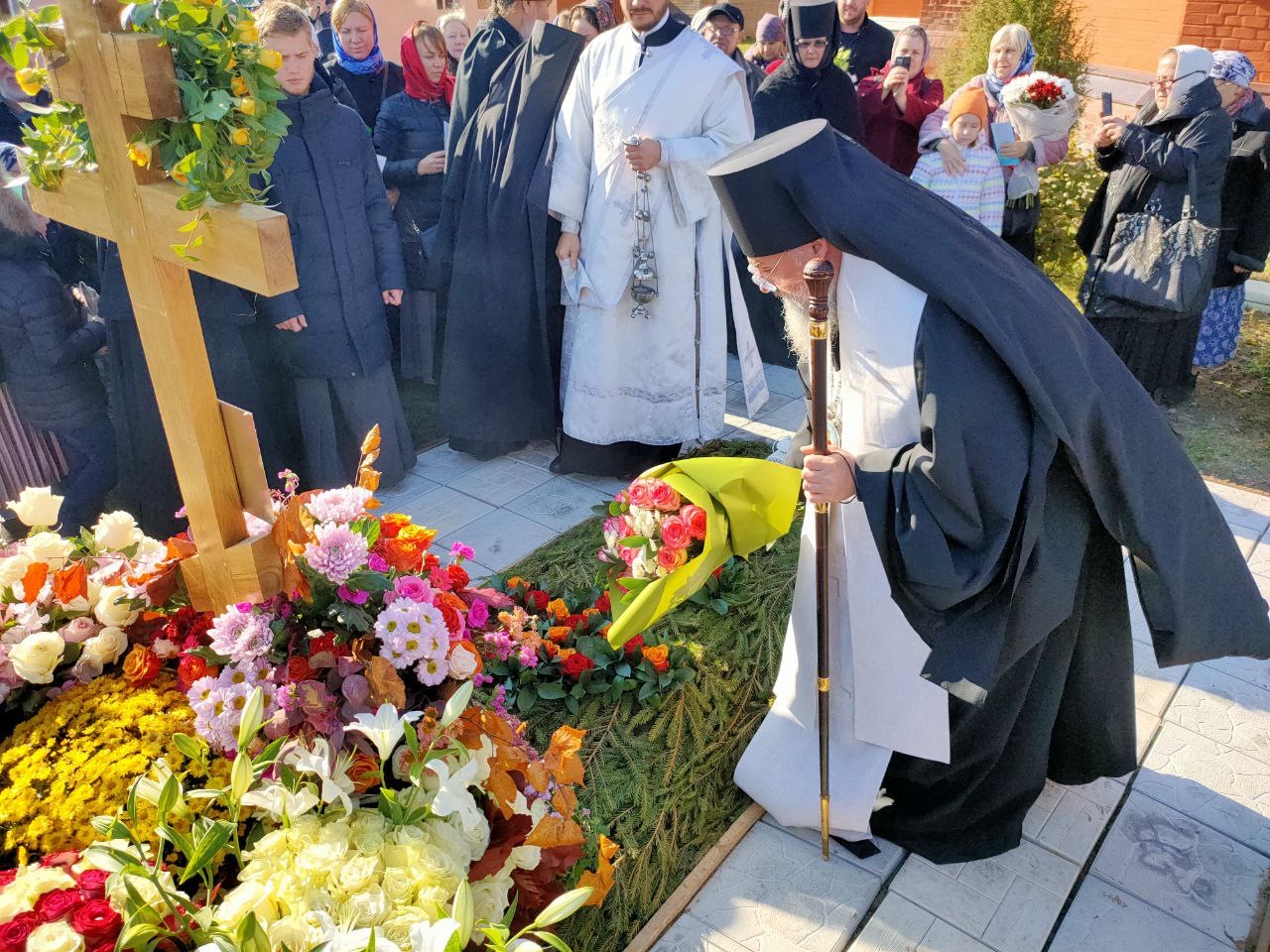 По отпусте литургии священнослужители совершили панихиду по почившей, а затем на могиле усопшей, похороненной за алтарем Успенского храма, владыка Никита совершил заупокойную литию.