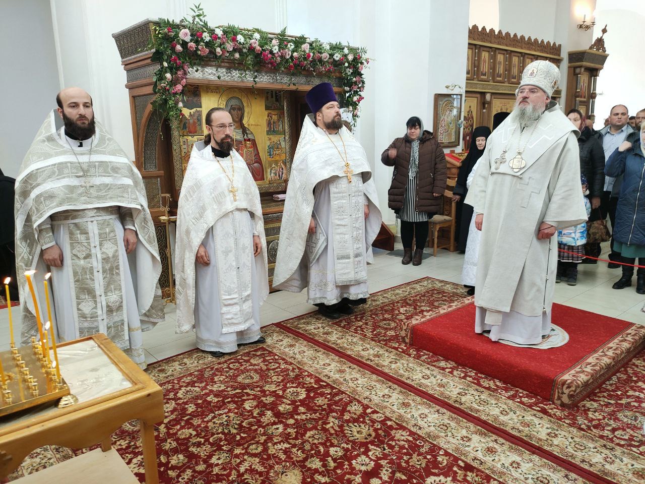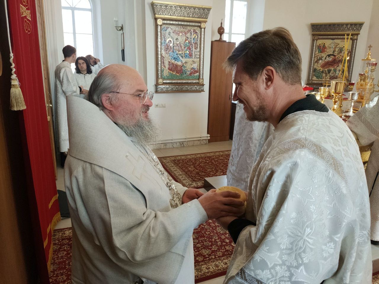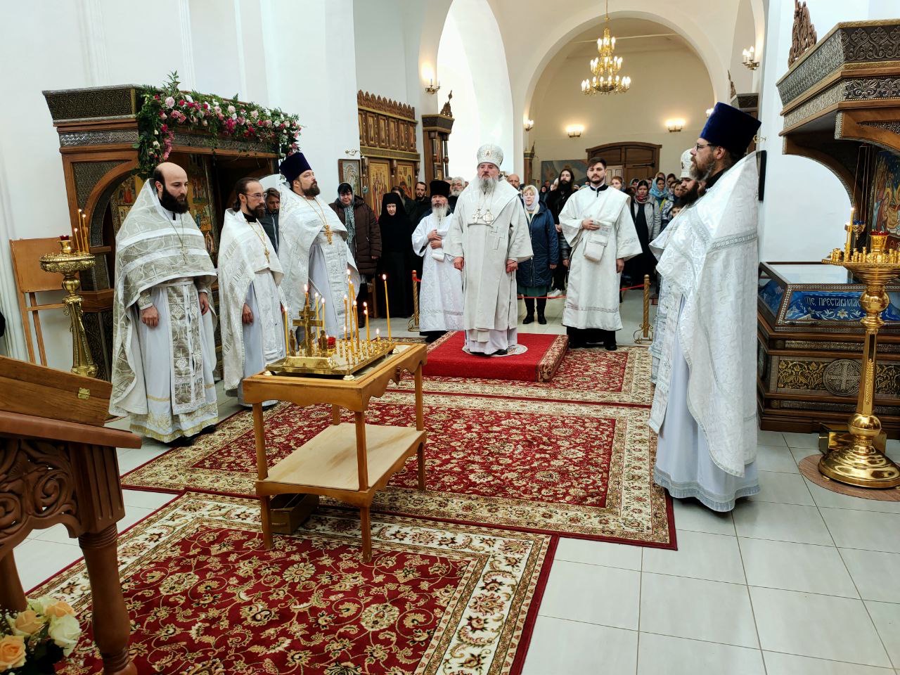 Архипастырю сослужили: духовник обители архимандрит Антоний (Гаврилов), секретарь Козельской епархии протоиерей Владимир Бахаев, духовенство Козельской и Московской епархий.